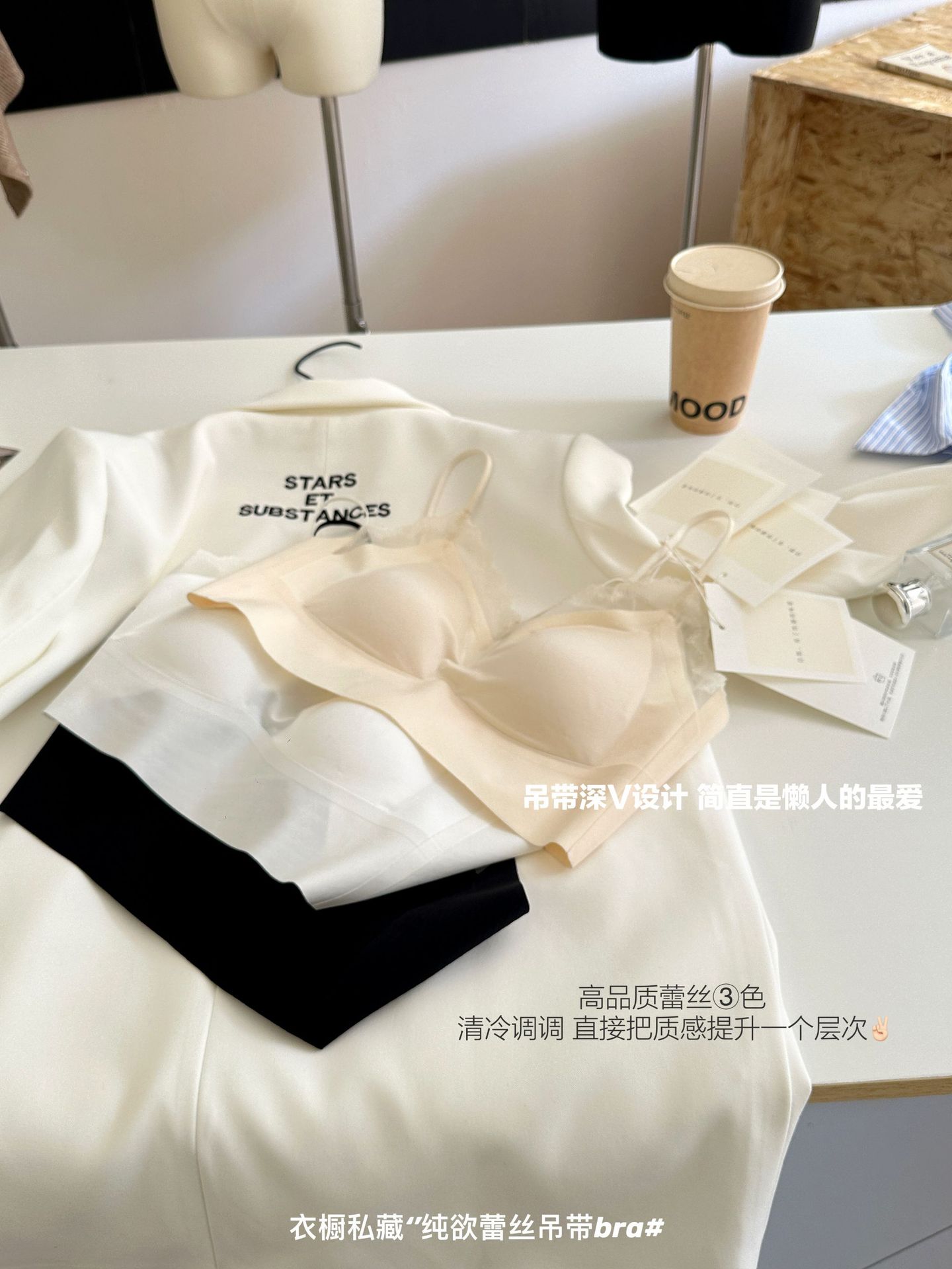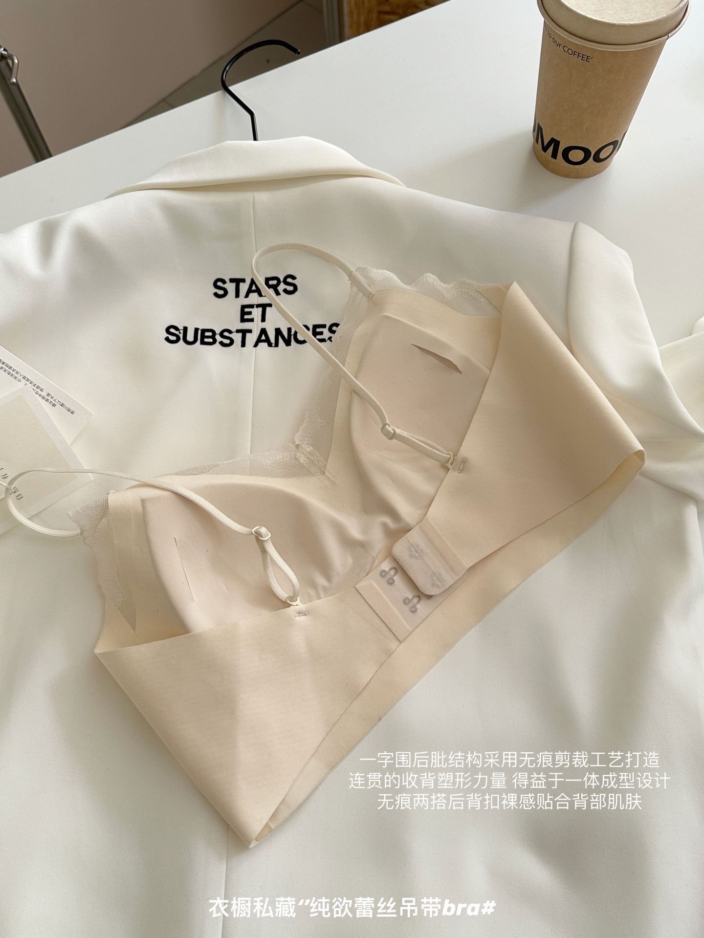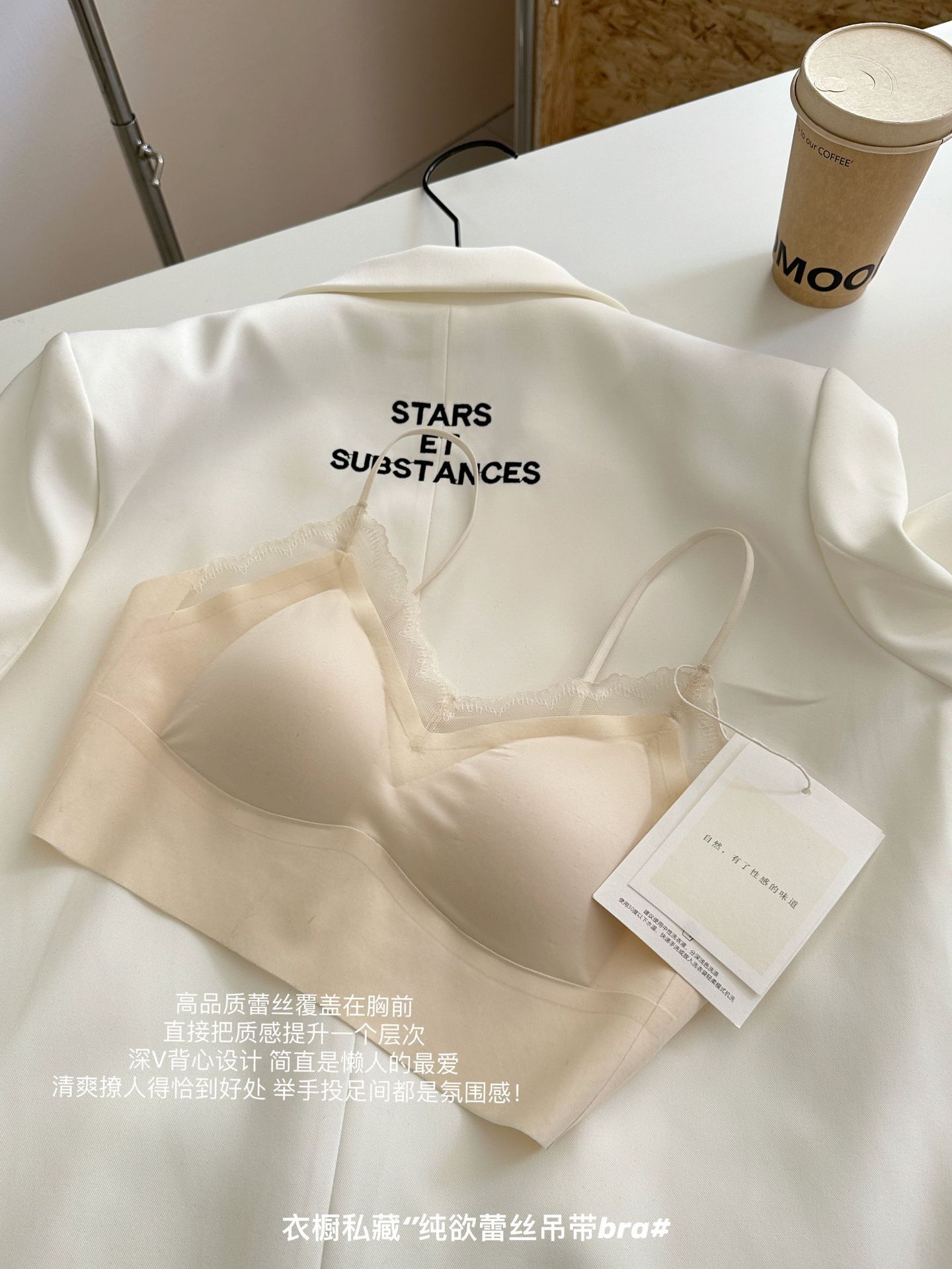 Encaje de primavera y verano tirantes cuello en V copa fija sin costuras pecho ajustable tirante hombro cómodo transpirable una palabra hermosa espalda ropa interior