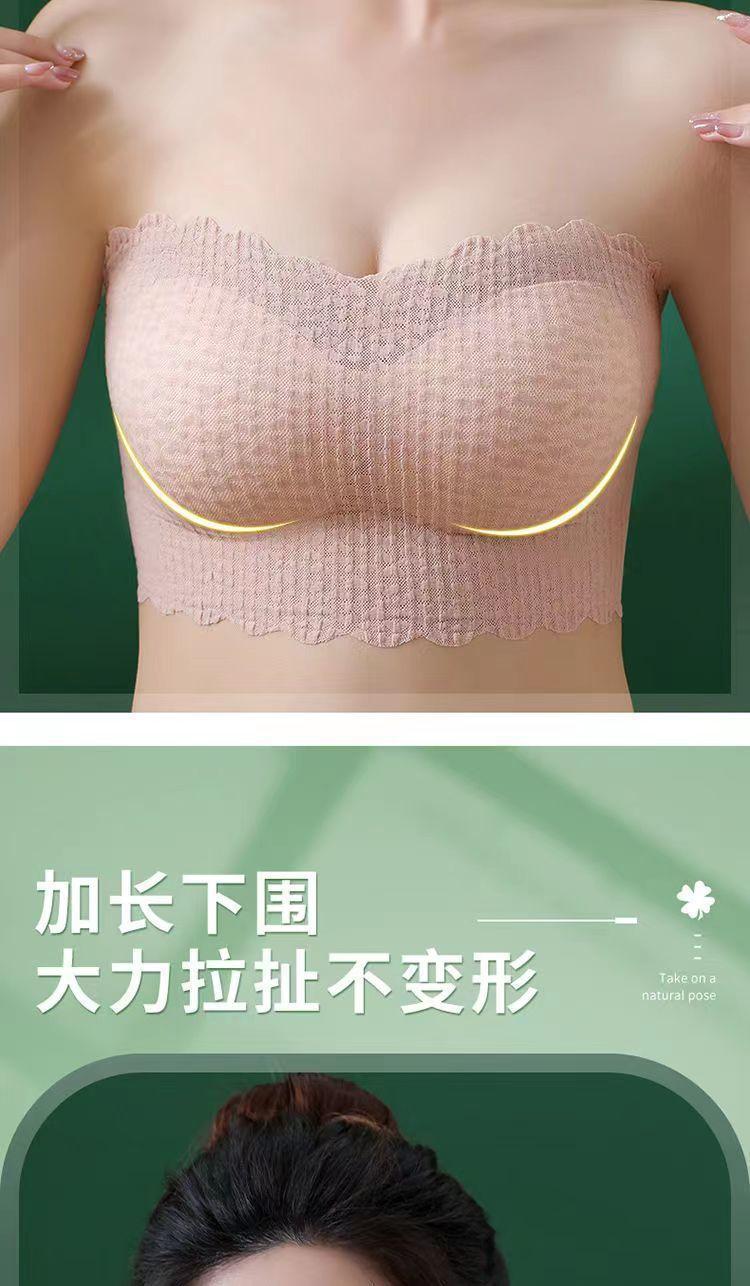 Íntimos sin tirantes Encaje para mujer Antideslizante Sin varillas Push-Up Látex Sujetador Verano Fino Sexy Espalda Hermosa Top de tubo