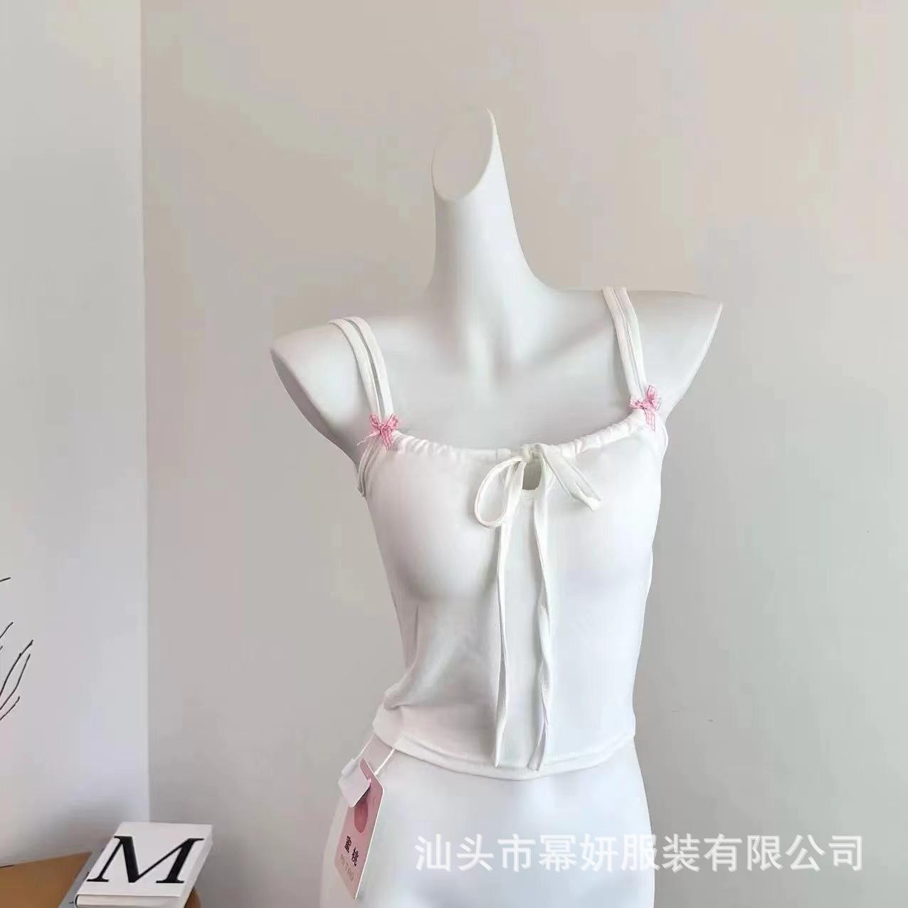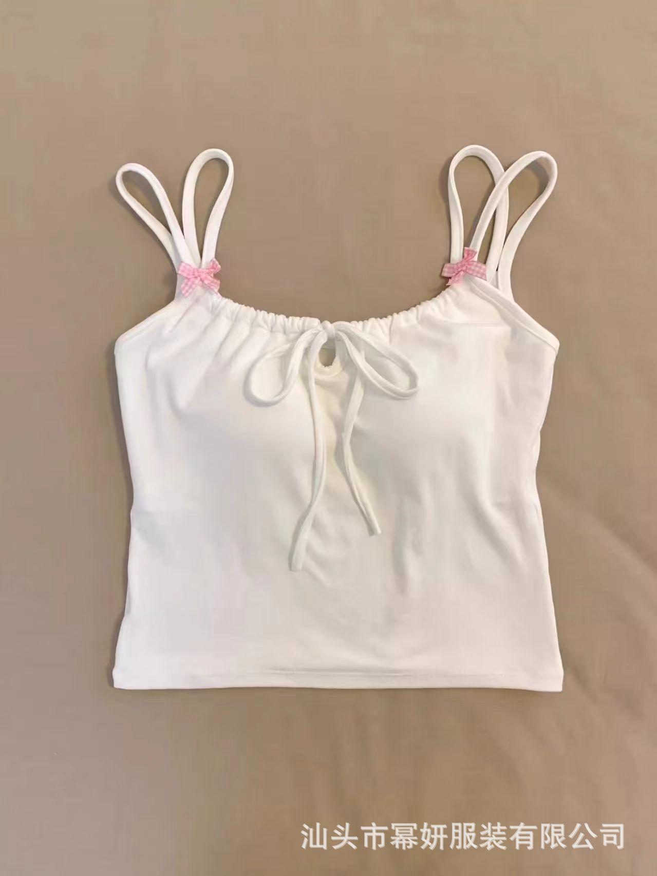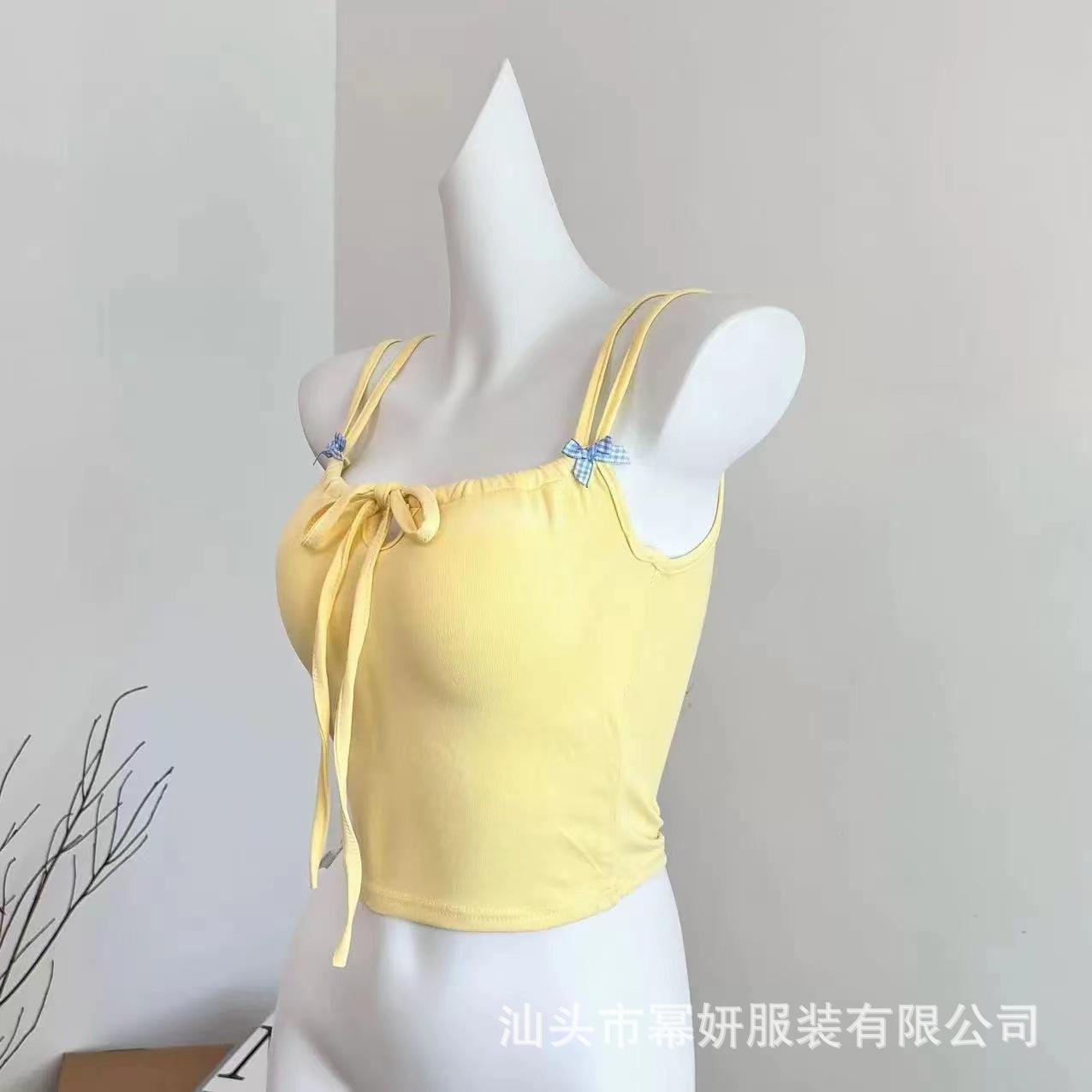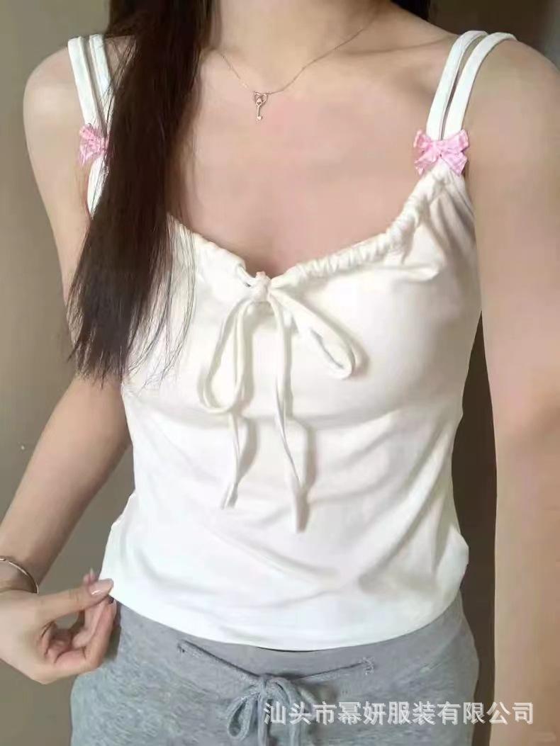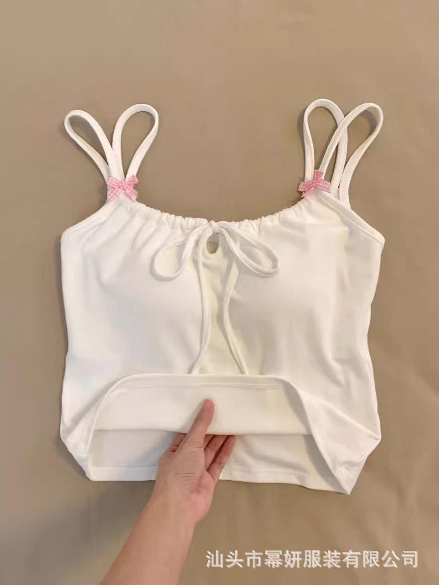 Dulce Spice Girl Top Interior Tipo Chaleco Pequeño para Mujer con Almohadilla en el Pecho, Tirantes Dobles con Adorno de Lazo, Hermoso Top sin Tirantes con Espalda Descubierta
