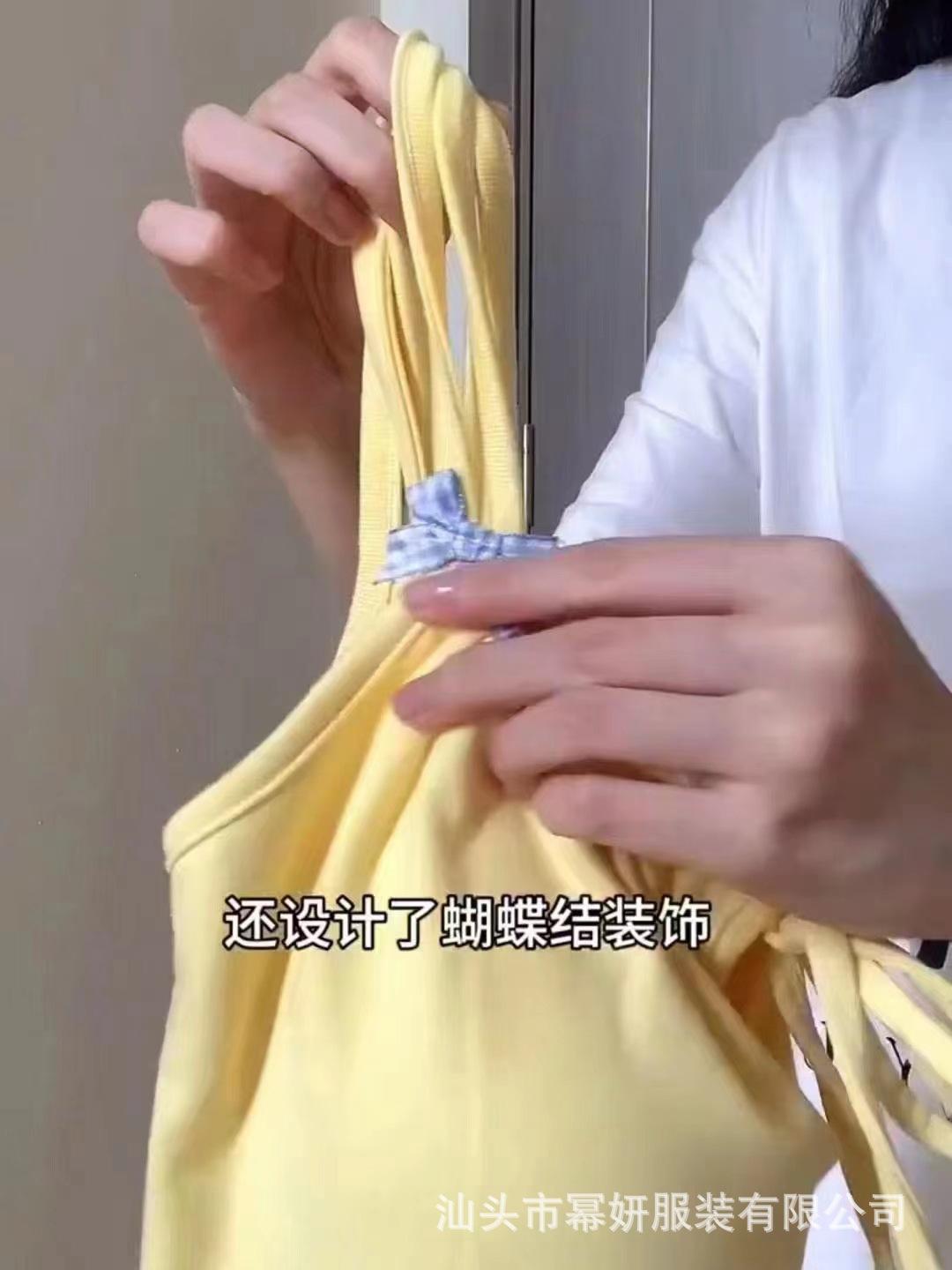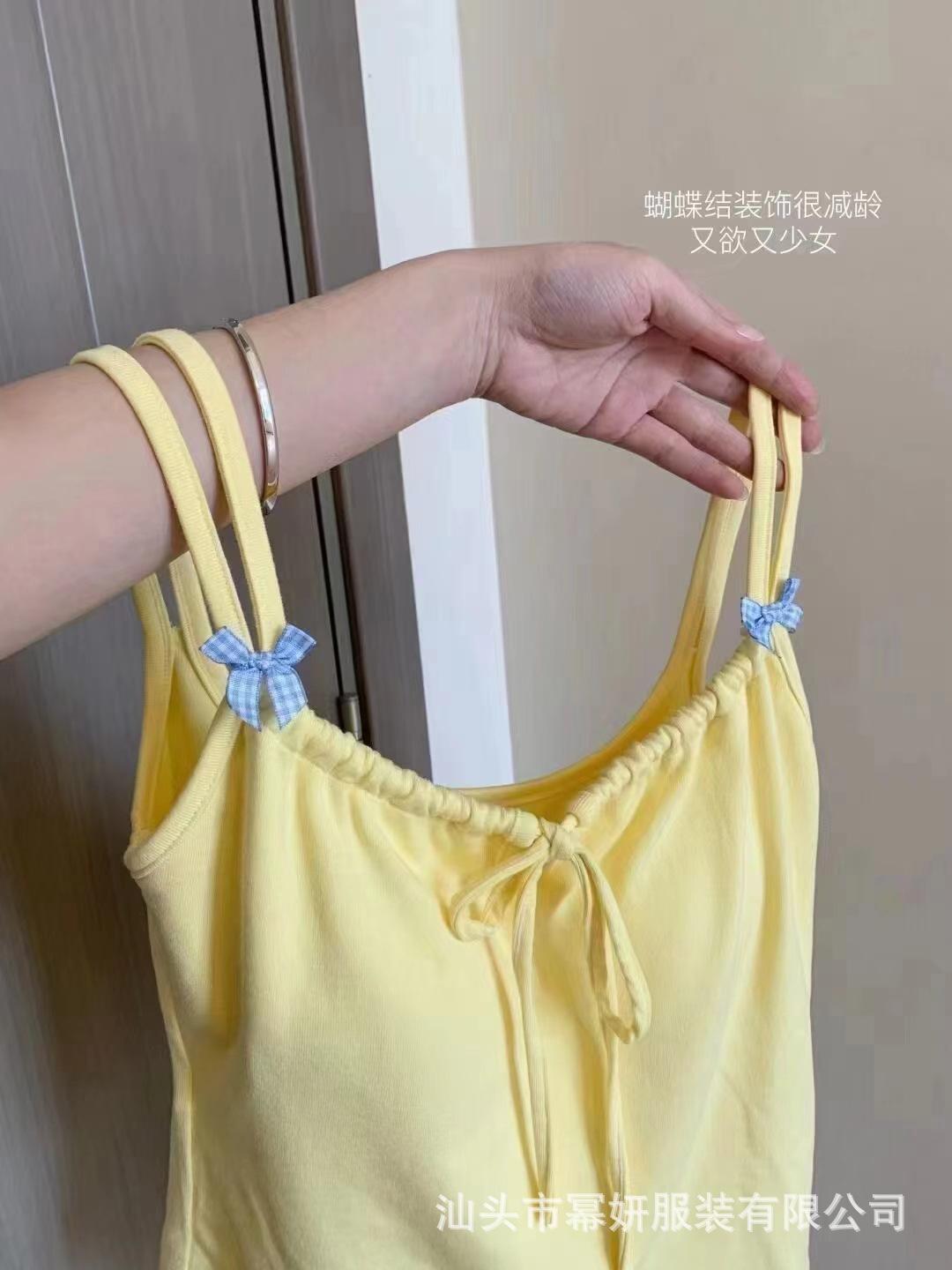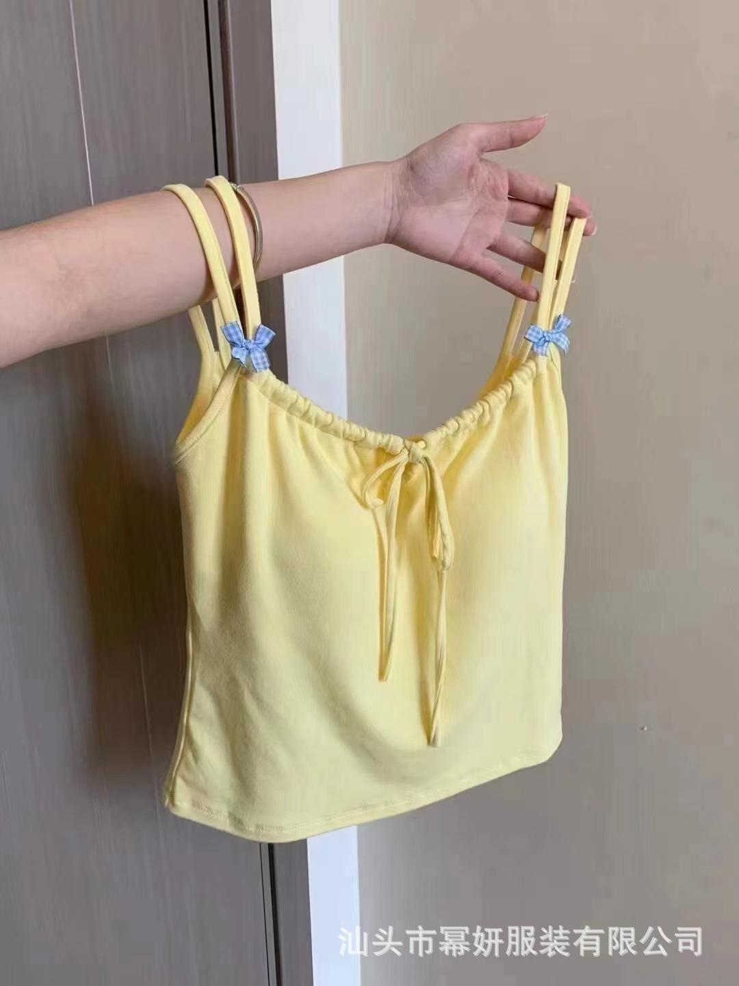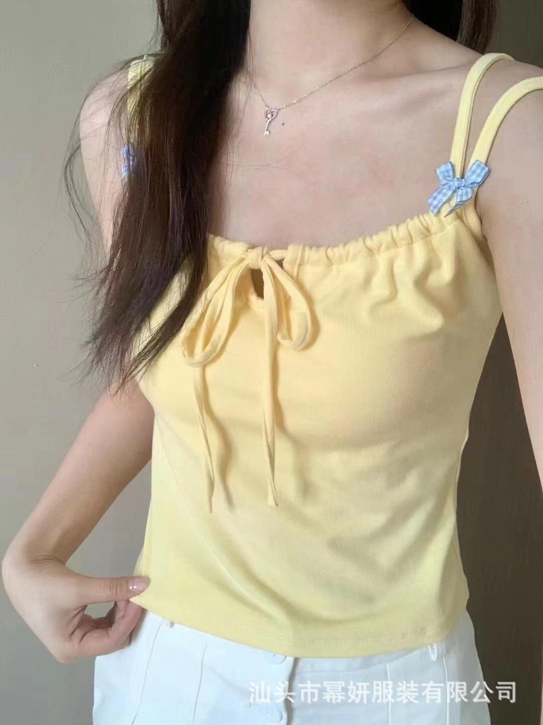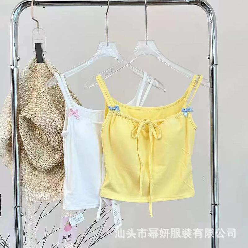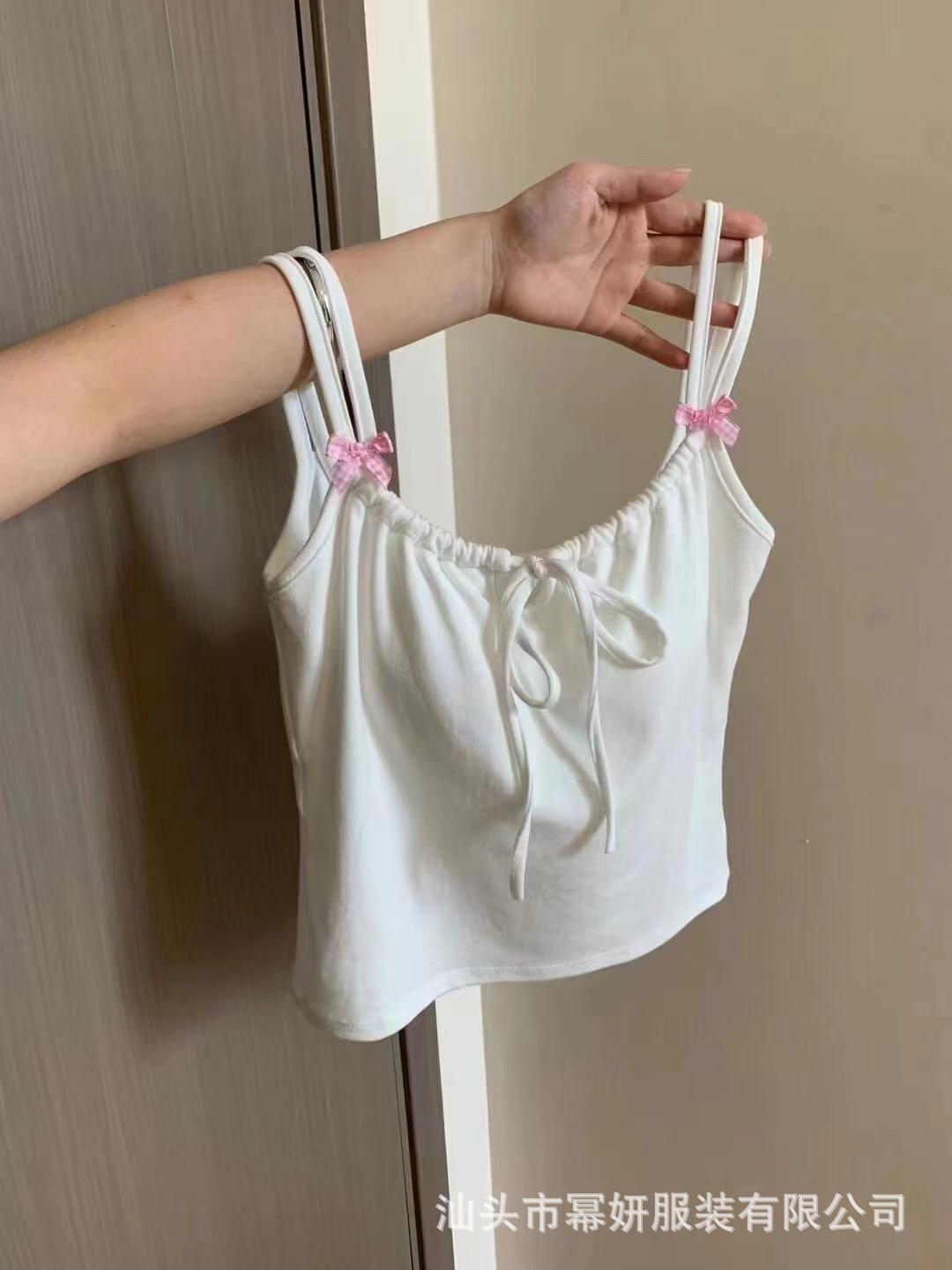 Dulce Spice Girl Top Interior Tipo Chaleco Pequeño para Mujer con Almohadilla en el Pecho, Tirantes Dobles con Adorno de Lazo, Hermoso Top sin Tirantes con Espalda Descubierta