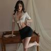 Encanto de Secretaria con Tirantes Falda Sexy Ajustada a las Caderas No Necesidad de Quitarse el Uniforme Íntimos Divertidos para Parejas Pijama Sexy para Mujer Deseo Puro 381