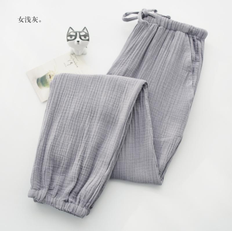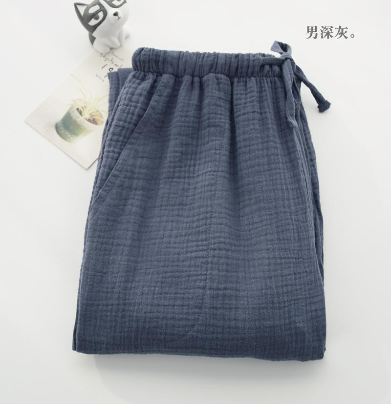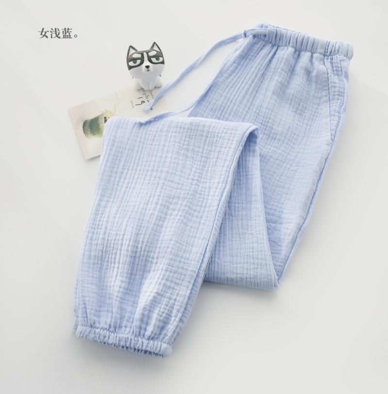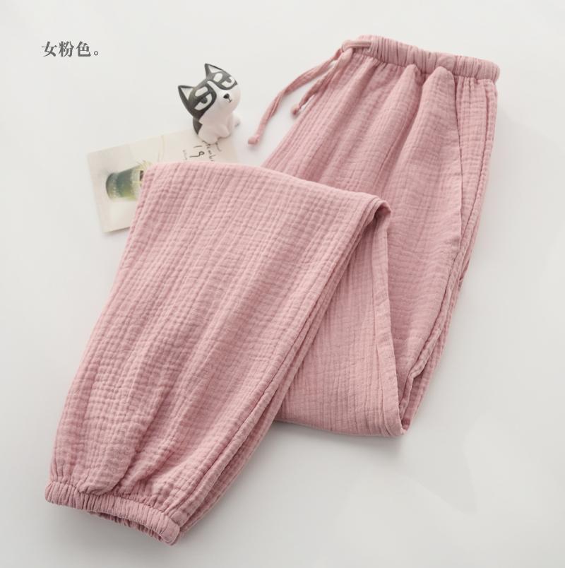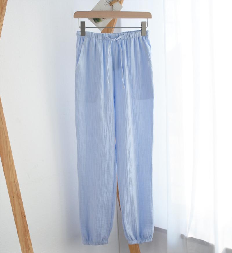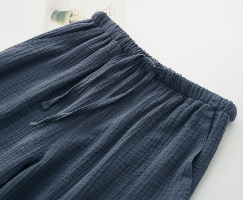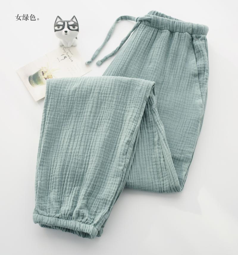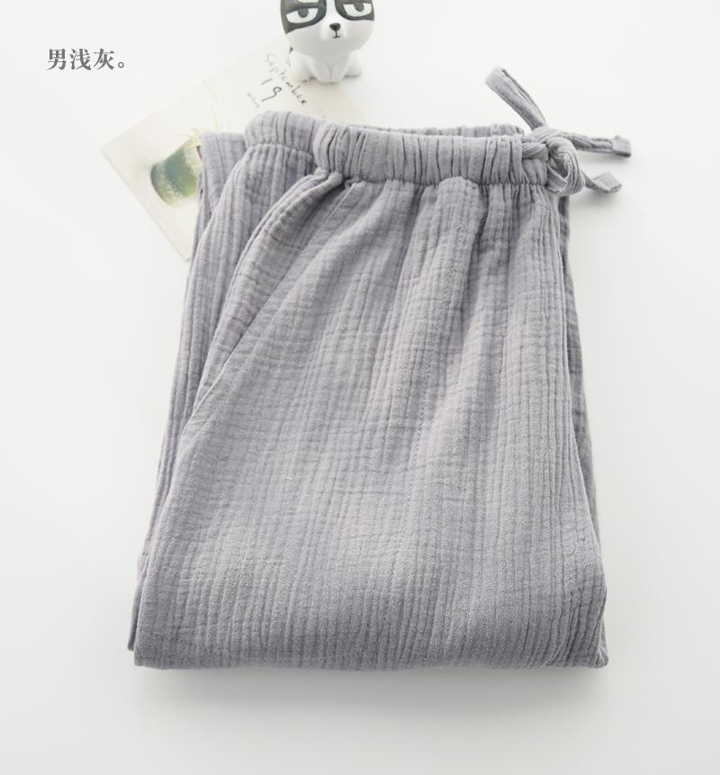 Pijamas de Gasa de Algodón Puro Lavado para Hombre y Mujer en Primavera y Otoño Crepé de Doble Capa Simples con Puños Pantalones Antimosquitos para Casa