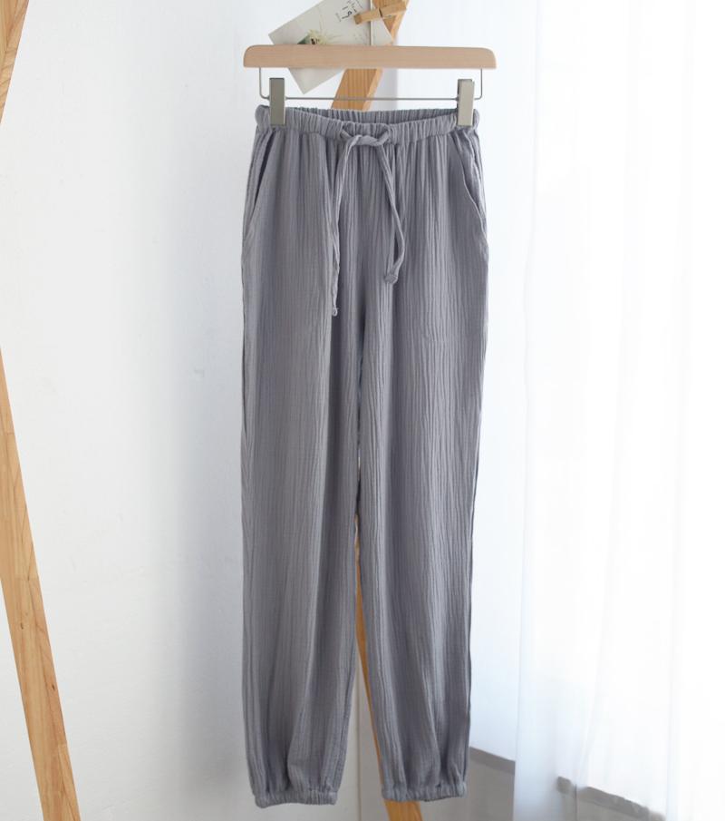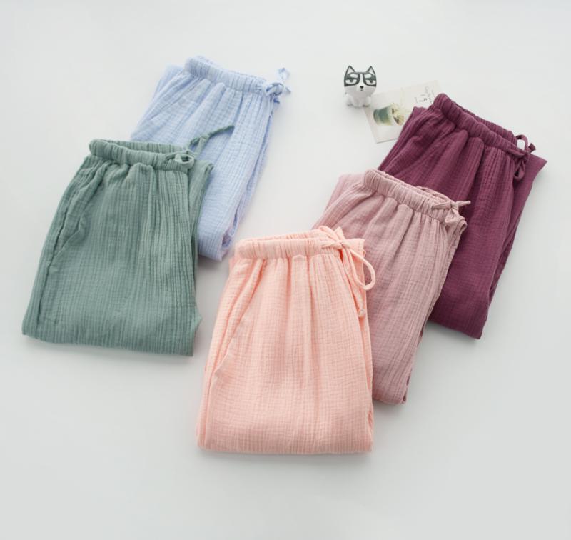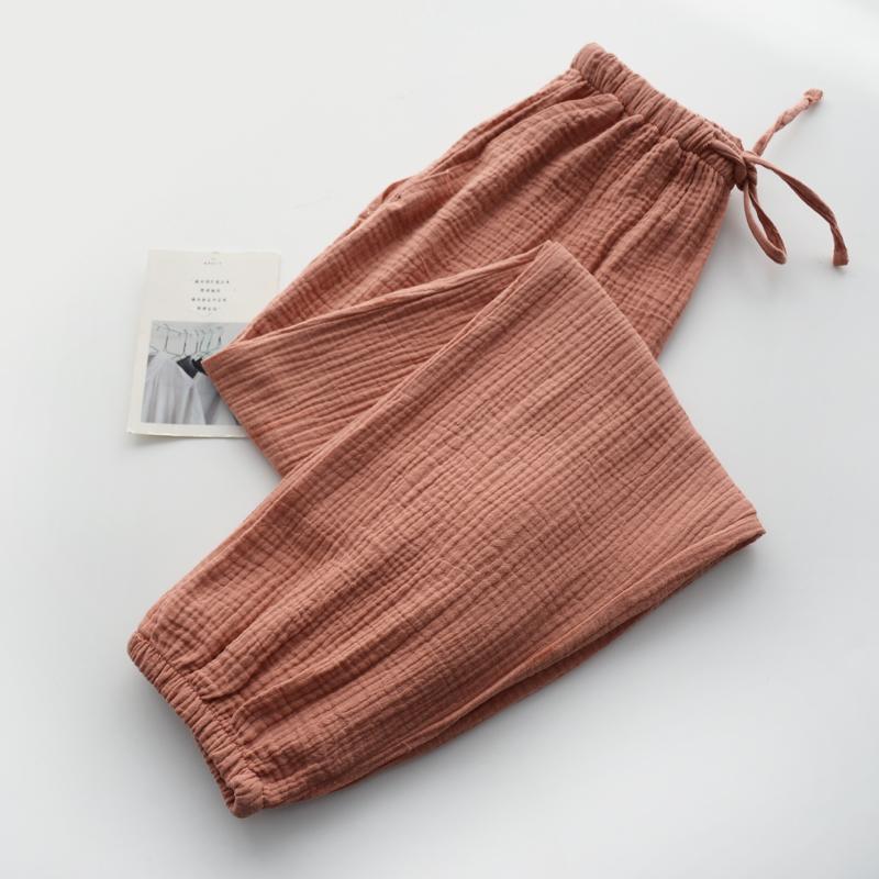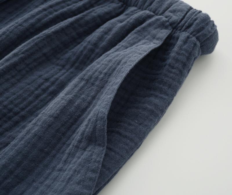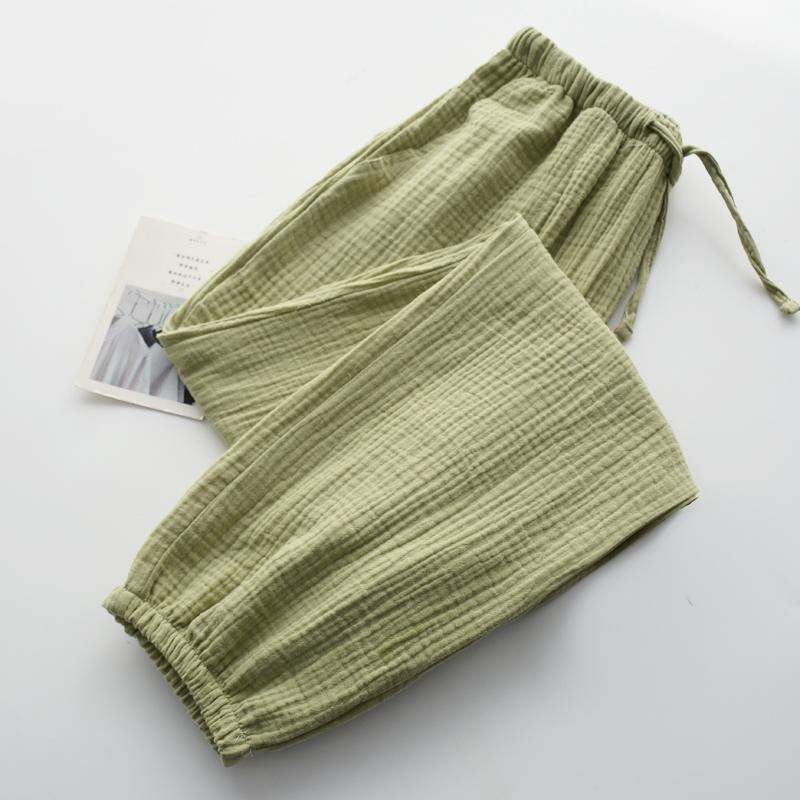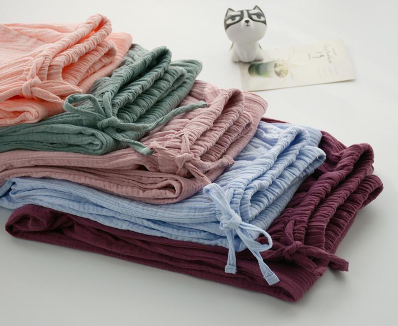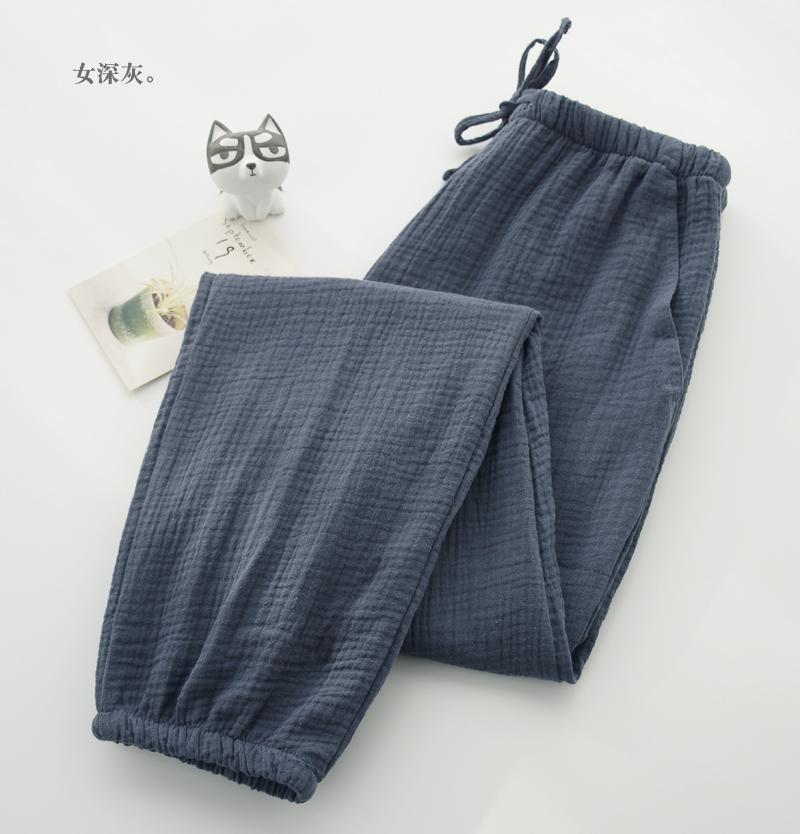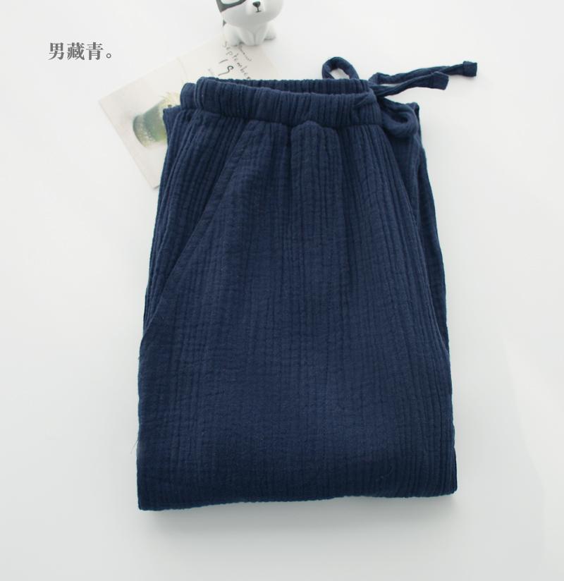 Pijamas de Gasa de Algodón Puro Lavado para Hombre y Mujer en Primavera y Otoño Crepé de Doble Capa Simples con Puños Pantalones Antimosquitos para Casa