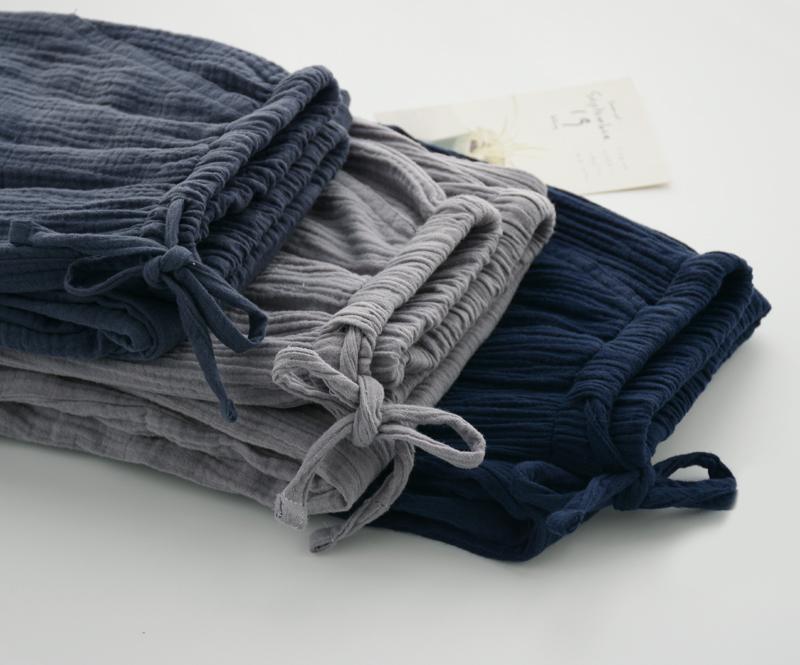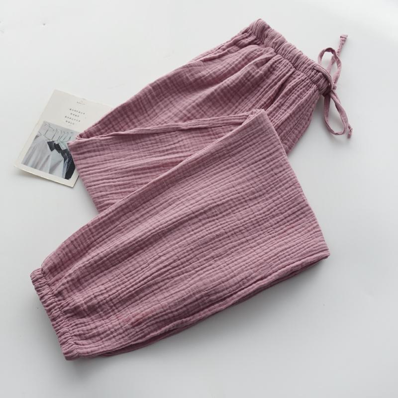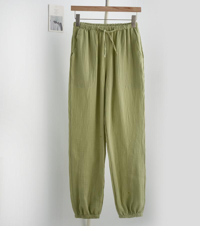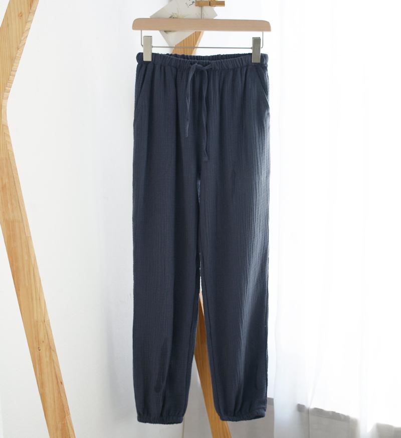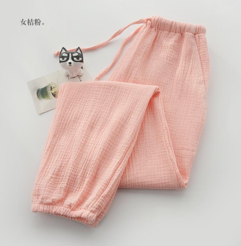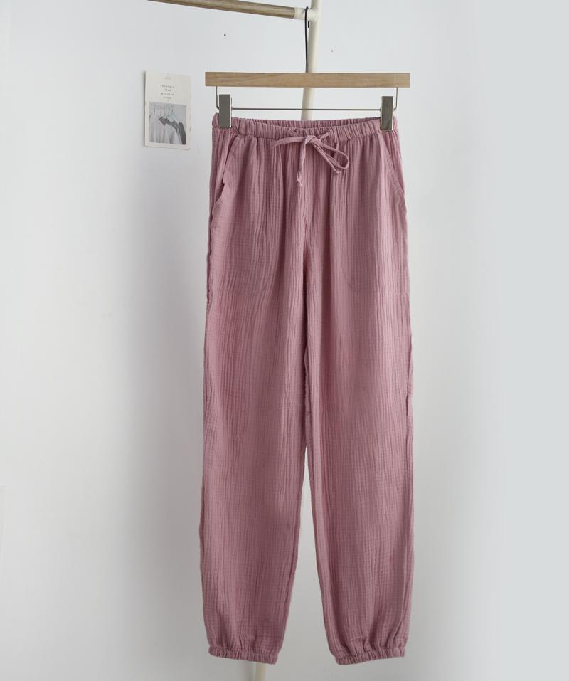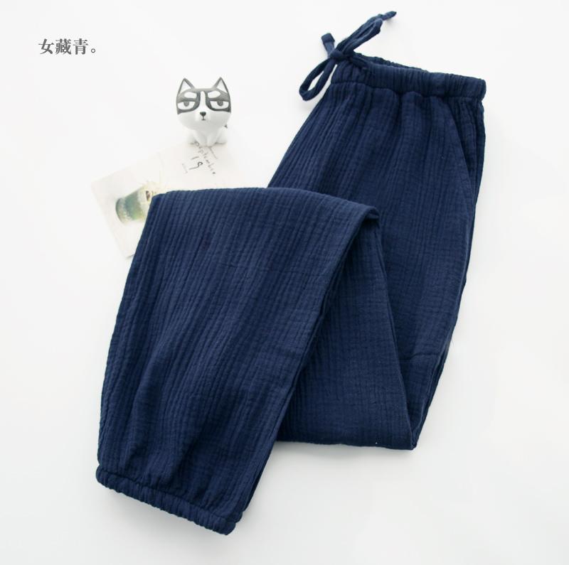 Pijamas de Gasa de Algodón Puro Lavado para Hombre y Mujer en Primavera y Otoño Crepé de Doble Capa Simples con Puños Pantalones Antimosquitos para Casa