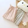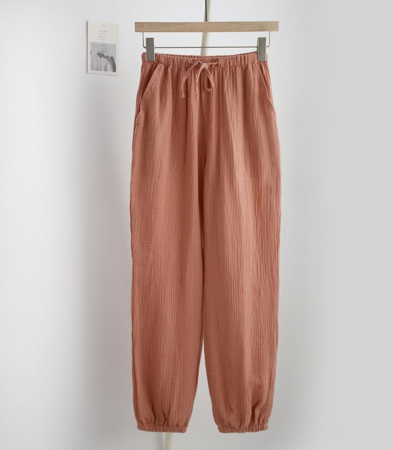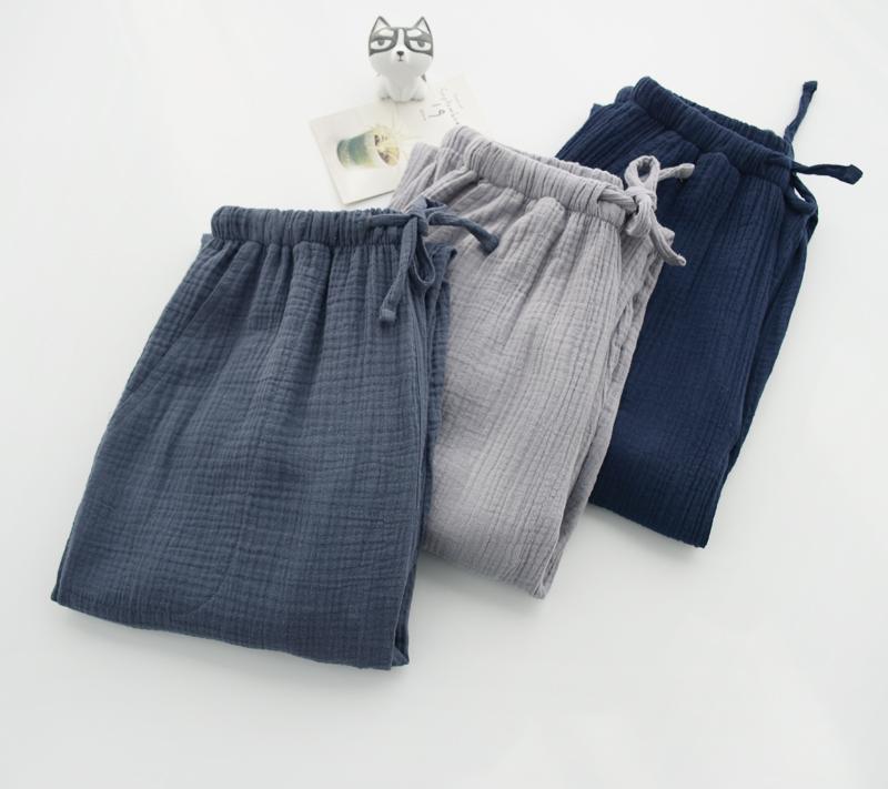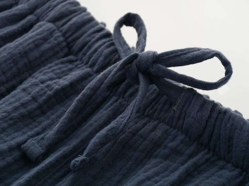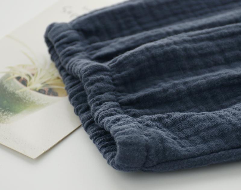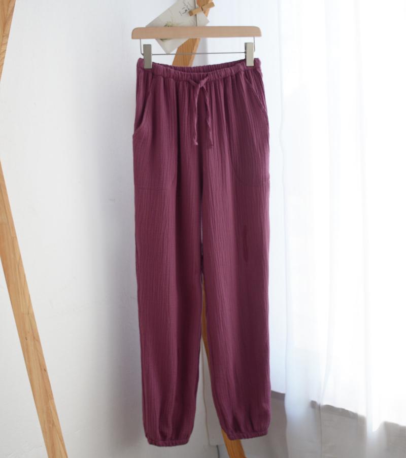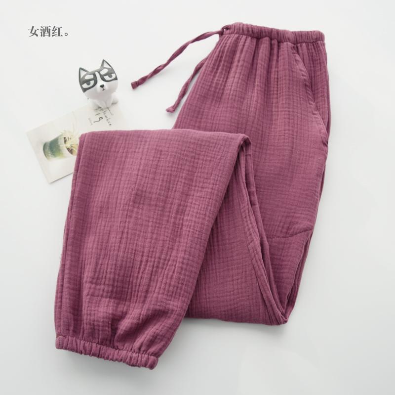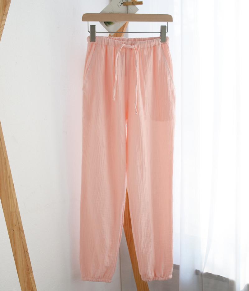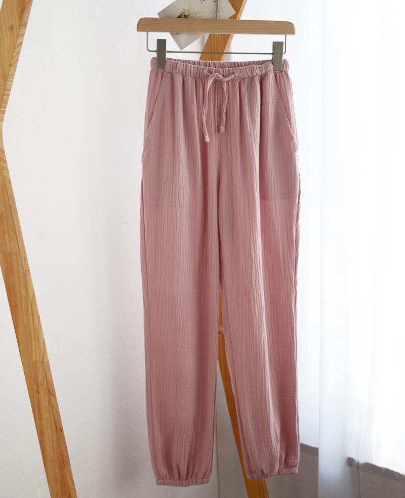 Pijamas de Gasa de Algodón Puro Lavado para Hombre y Mujer en Primavera y Otoño Crepé de Doble Capa Simples con Puños Pantalones Antimosquitos para Casa