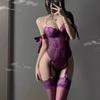 Encanto Púrpura Sexy Lencería Sexy Encaje Mono Deseo Puro Traje de Uniforme No Necesidad de Quitarse Pijama Tentación Femenina