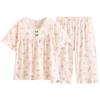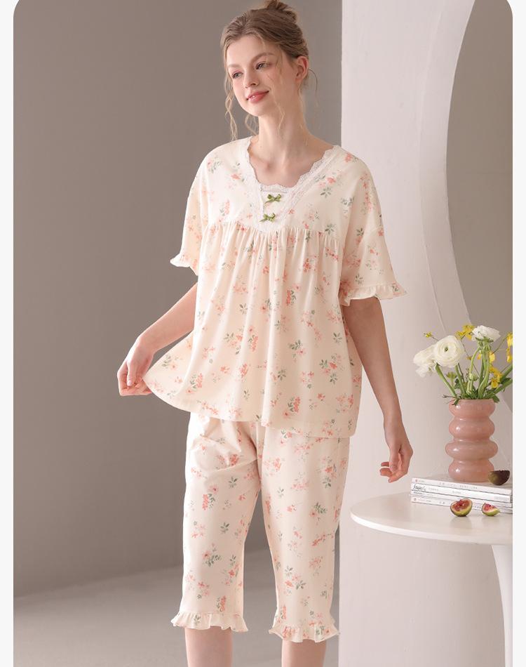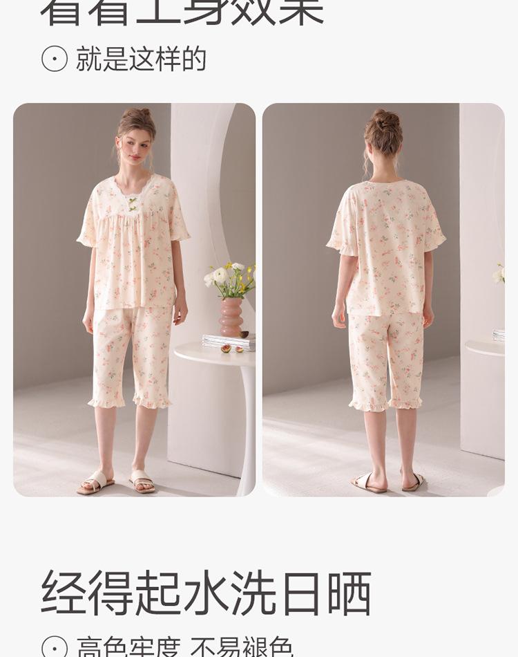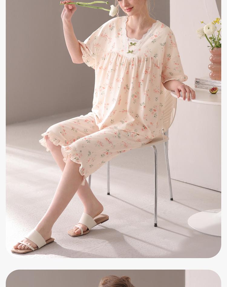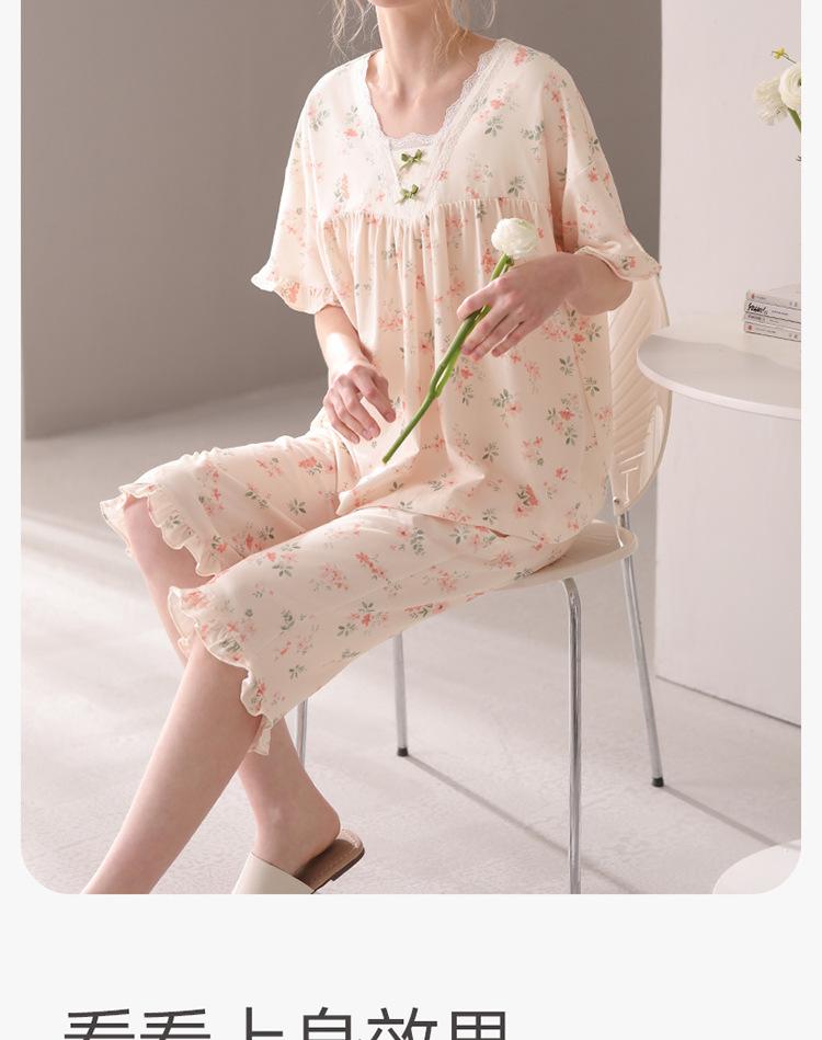 [Algodón Fresco] Pijama de Mujer Verano Algodón Delgado Manga Corta Pantalón Capri Traje Ropa de Casa Dulce Casual para Mujer