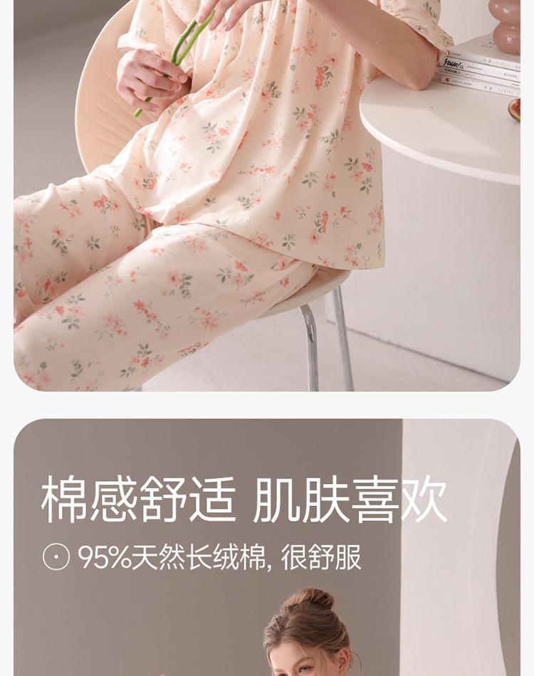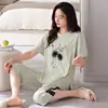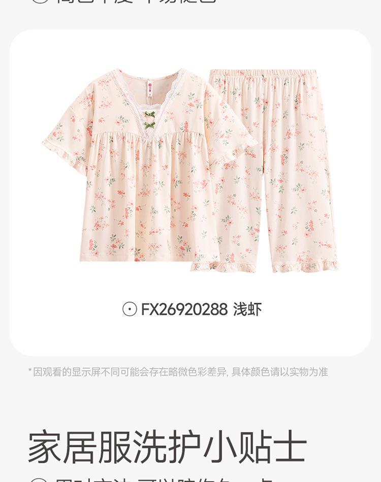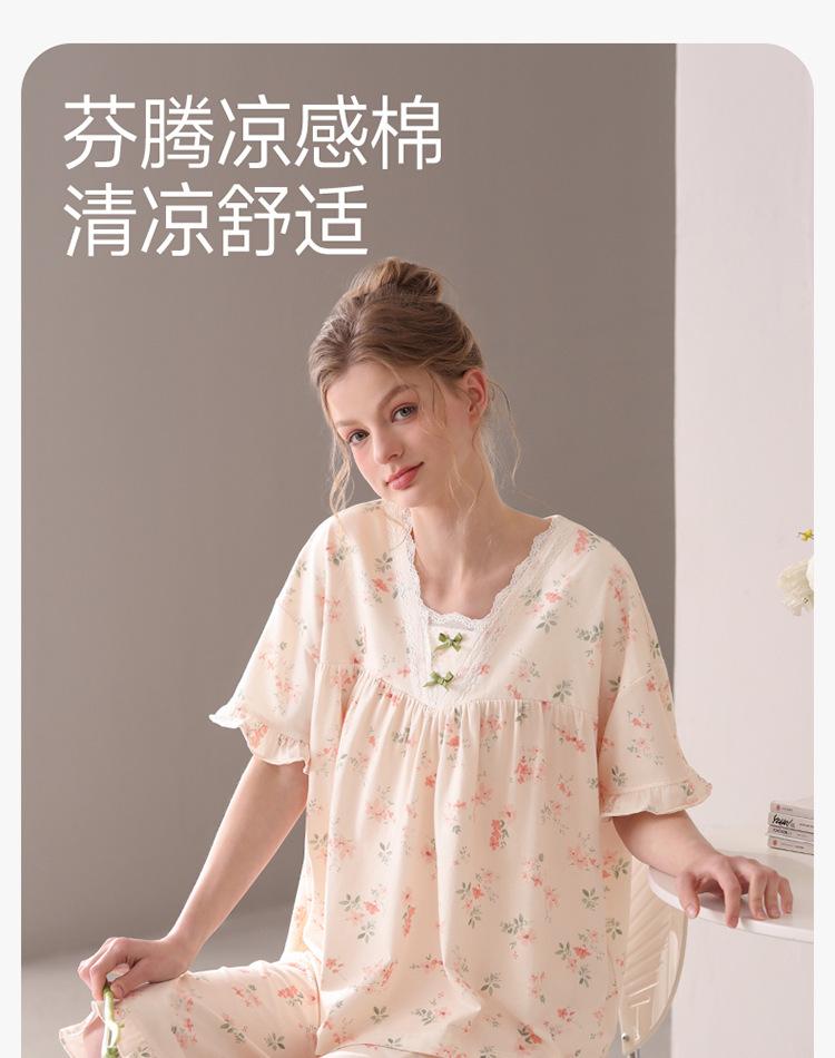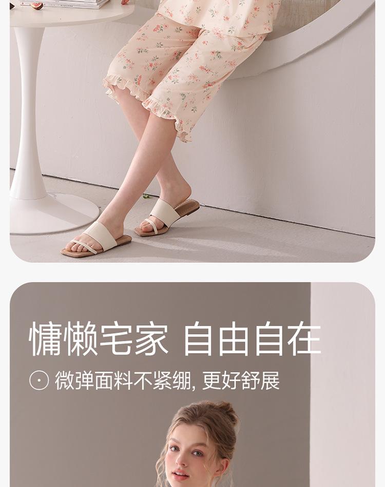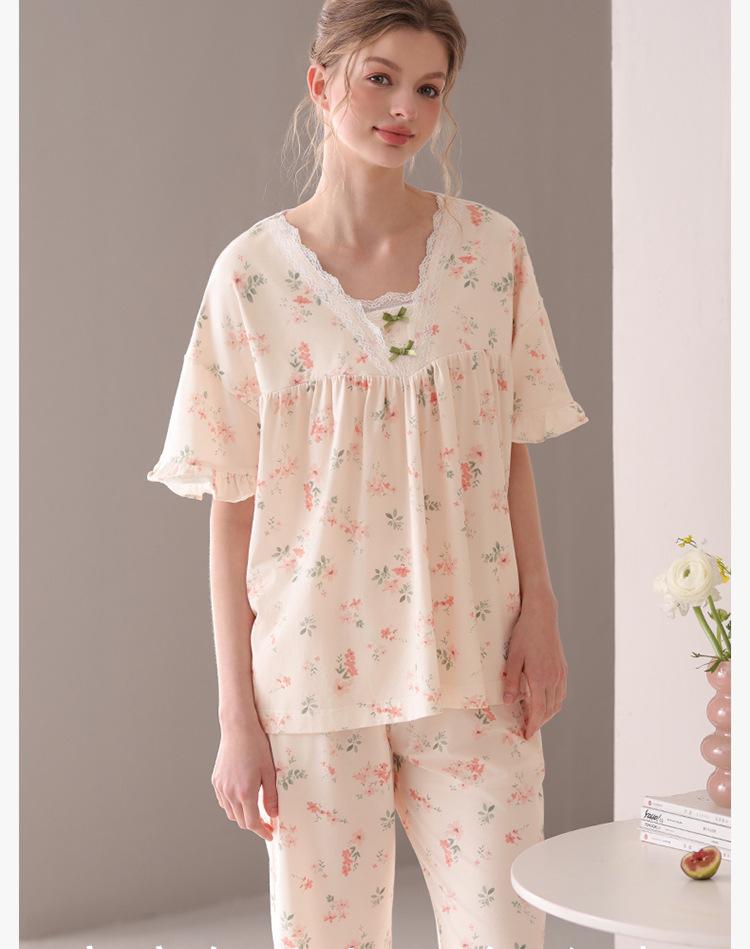 [Algodón Fresco] Pijama de Mujer Verano Algodón Delgado Manga Corta Pantalón Capri Traje Ropa de Casa Dulce Casual para Mujer