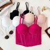 Deseo Puro Top de Tubo Camisola de Espina de Pescado para Chica Caliente Ajustado Versátil Irregular Plisado Sexy Top con Almohadilla para el Busto