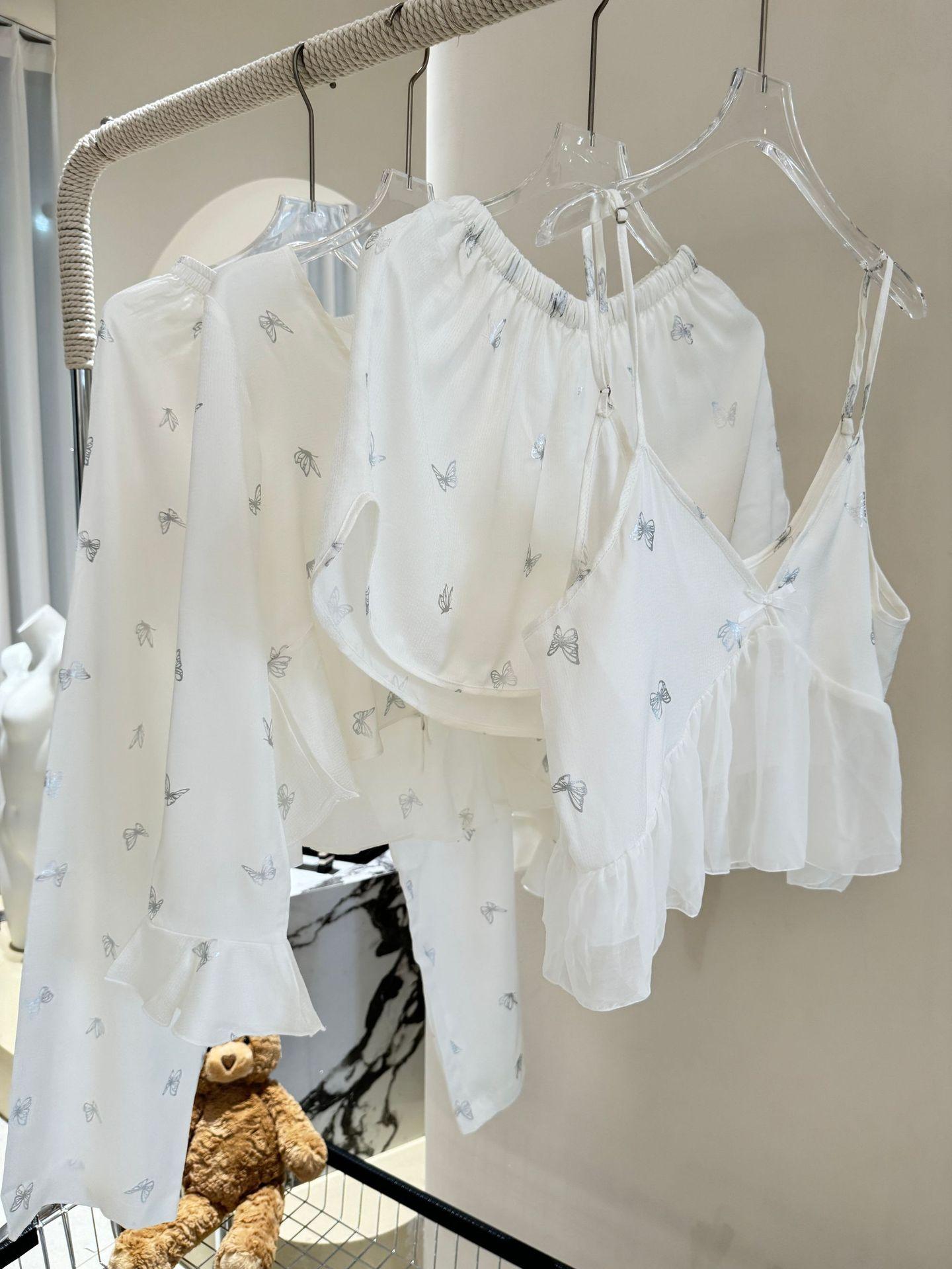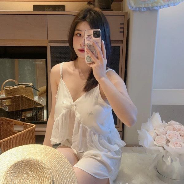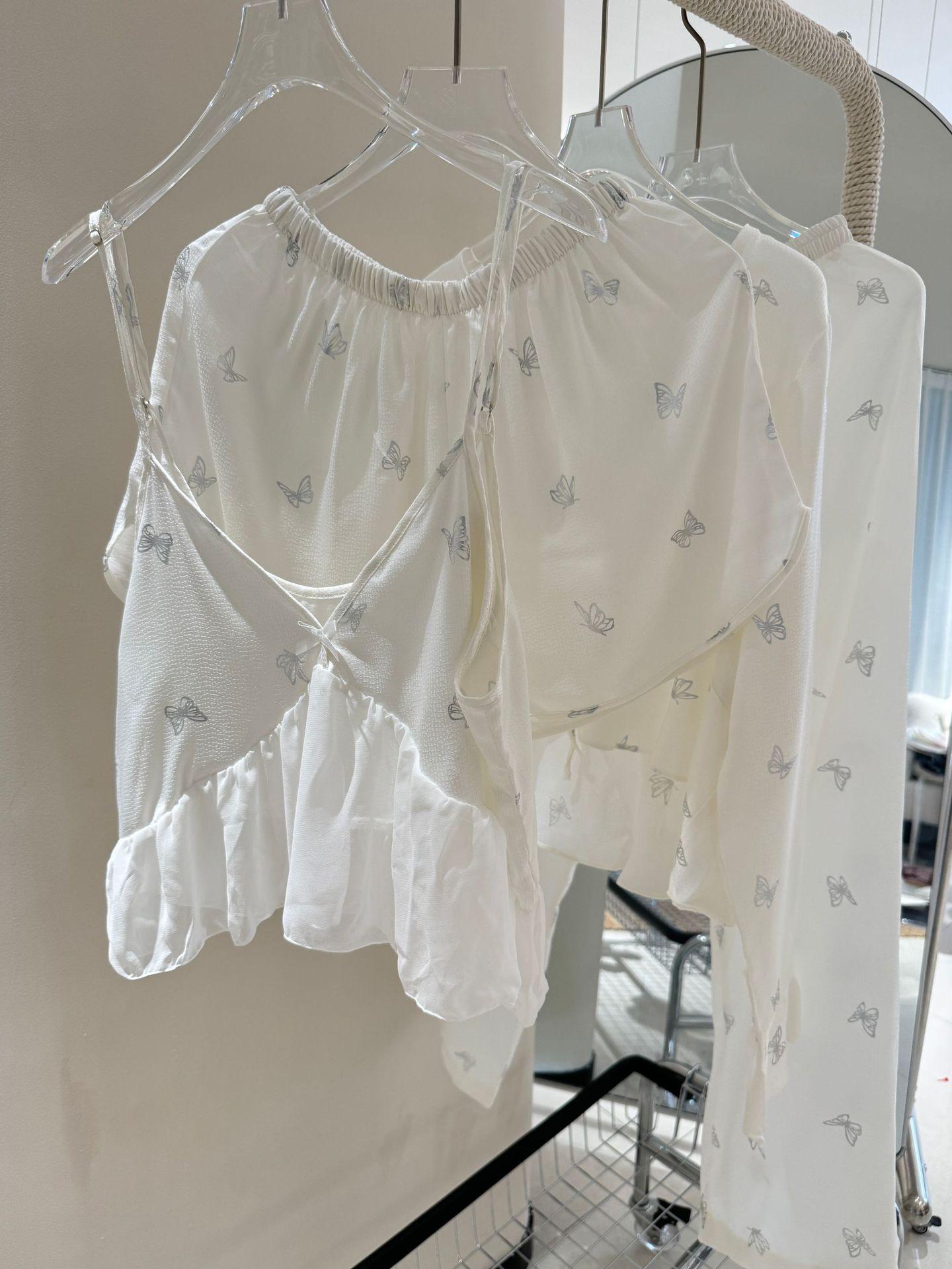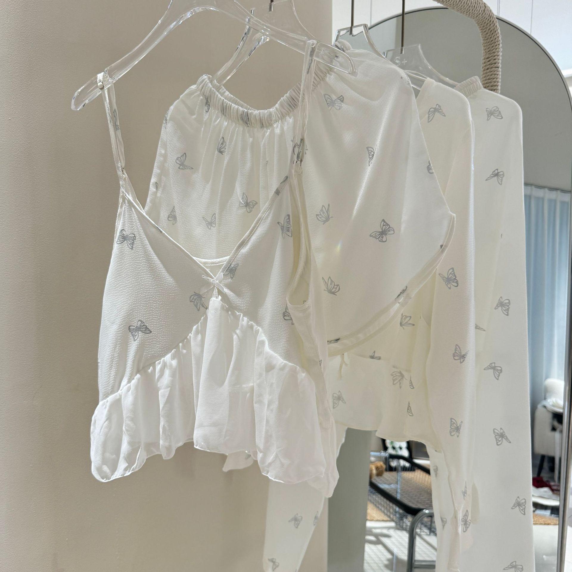 Pijama Delgada para Mujer, Conjunto de Shorts con Tirantes de Seda Hielo y Nieve, Chaleco de Verano de Lunares para Chica Linda, Conjunto de Cuatro Piezas para Estar en Casa