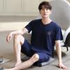 Pijama de Verano para Hombre Modal Manga Corta Pantalón Corto Set de Tres Piezas Delgado de Verano para Hombre Talla Grande Ropa para el Hogar
