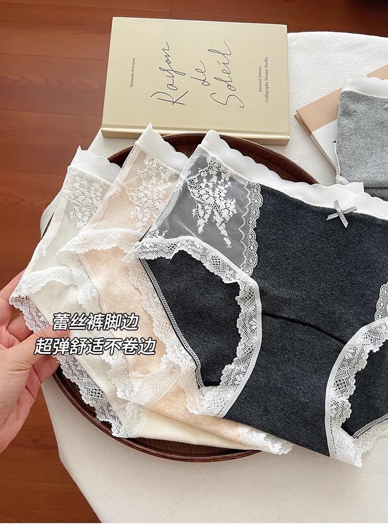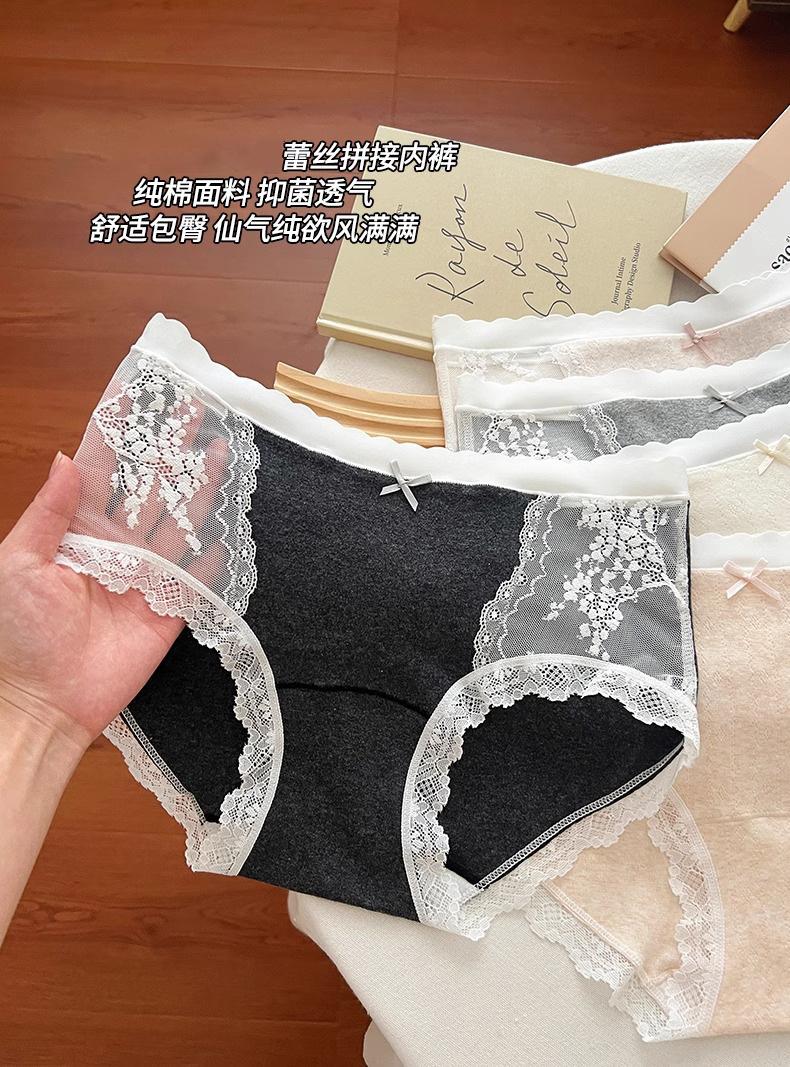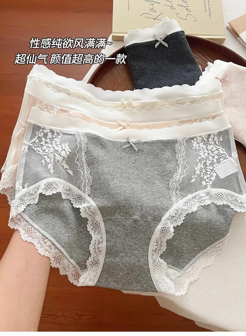 Ropa Interior para Niña Algodón Puro 2025 Nuevo Todo Algodón Largo Entrepierna Antibacteriana Braguitas Sexy de Encaje Deseo Puro para Mujer