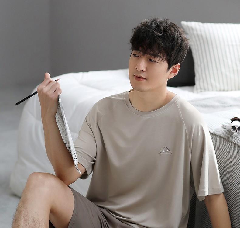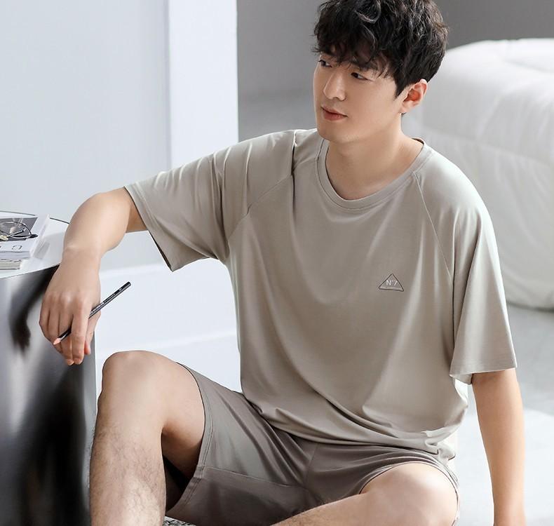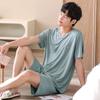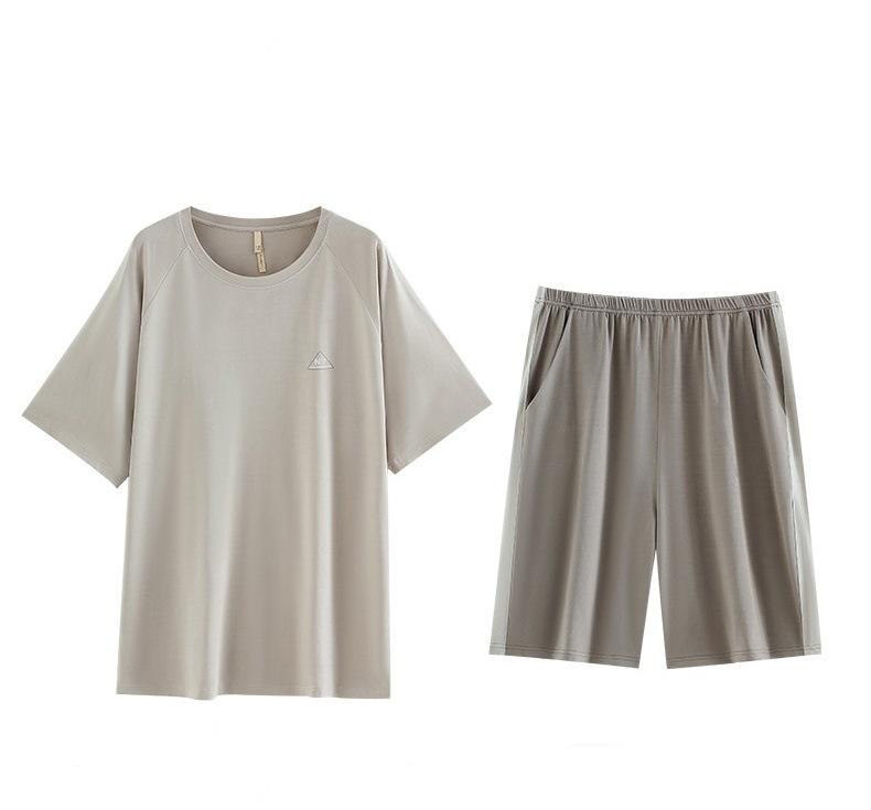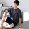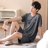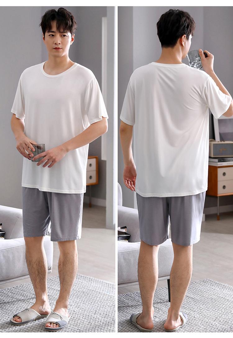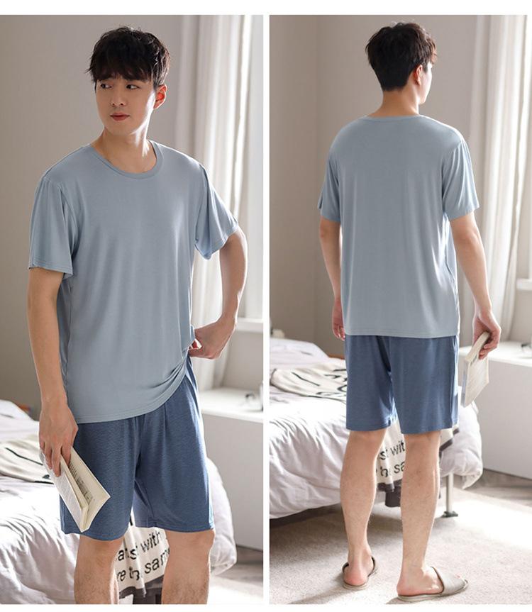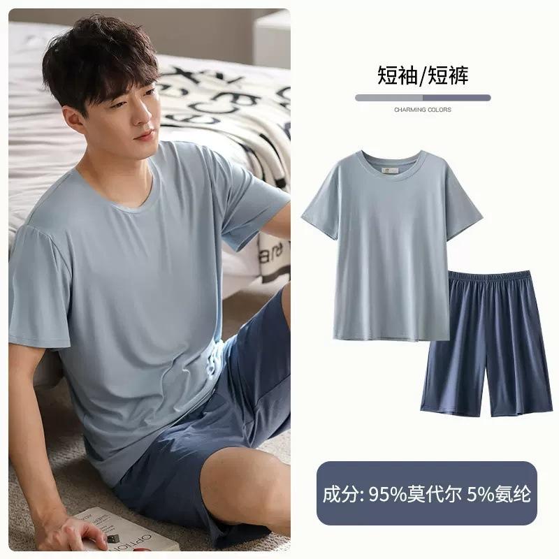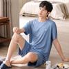 Pijama Modal de Verano para Hombre de Manga Corta y Pantalón Corto Ropa para el Hogar Traje de Algodón Fresco de Seda de Hielo Fino para Hombre