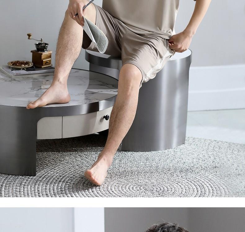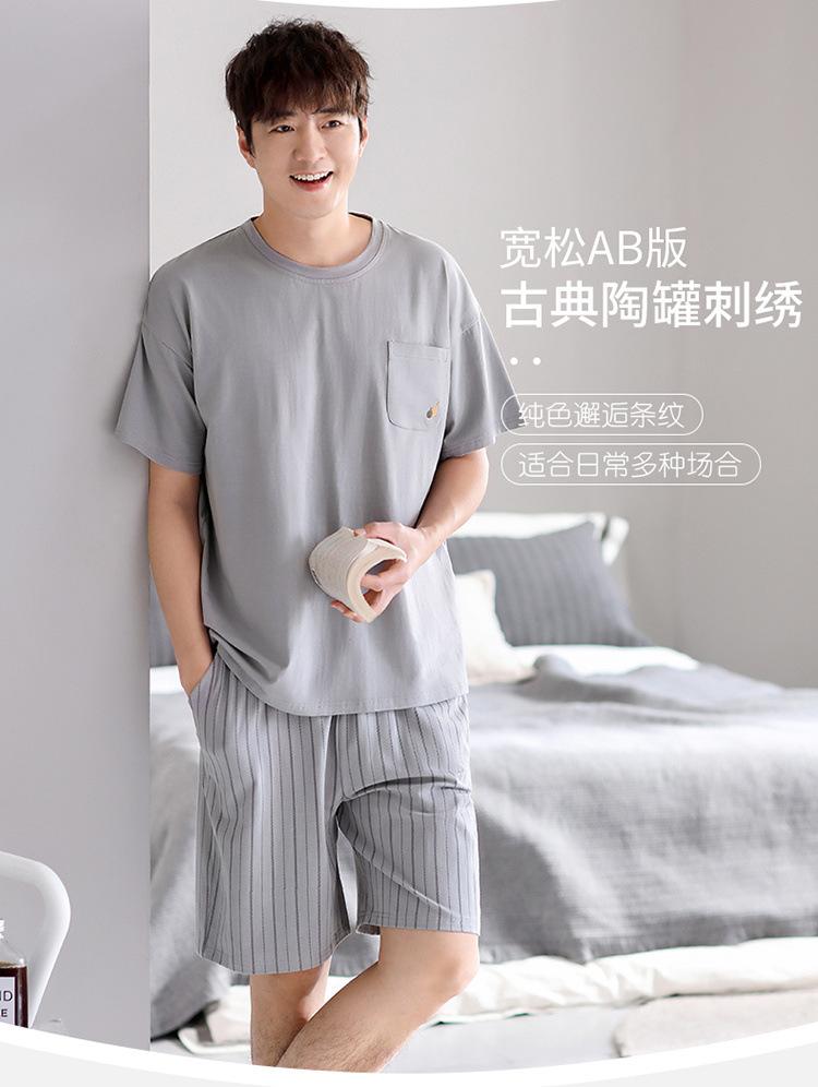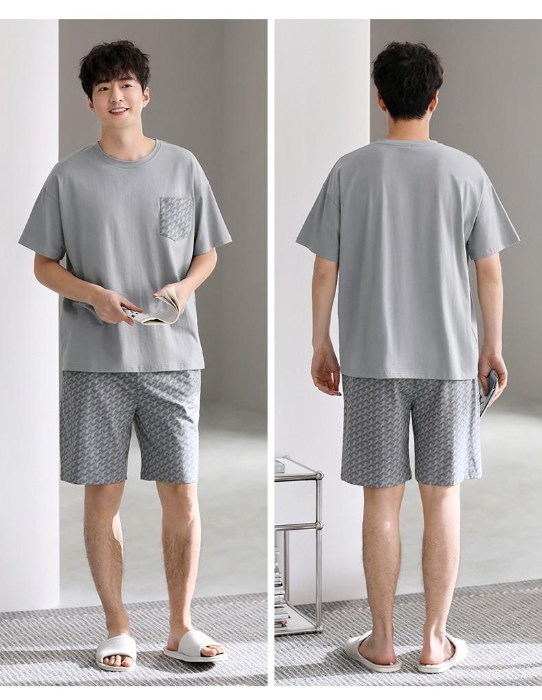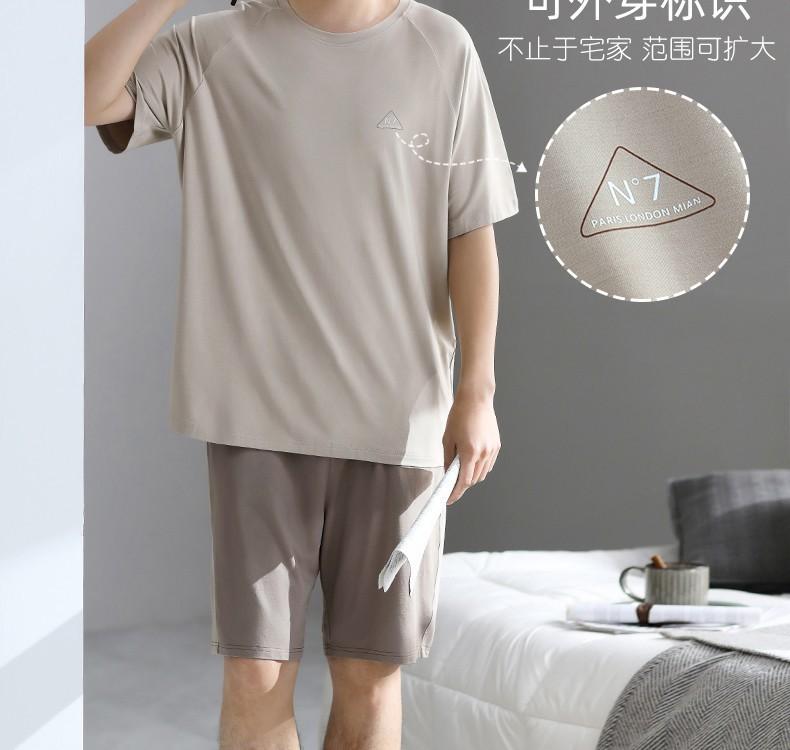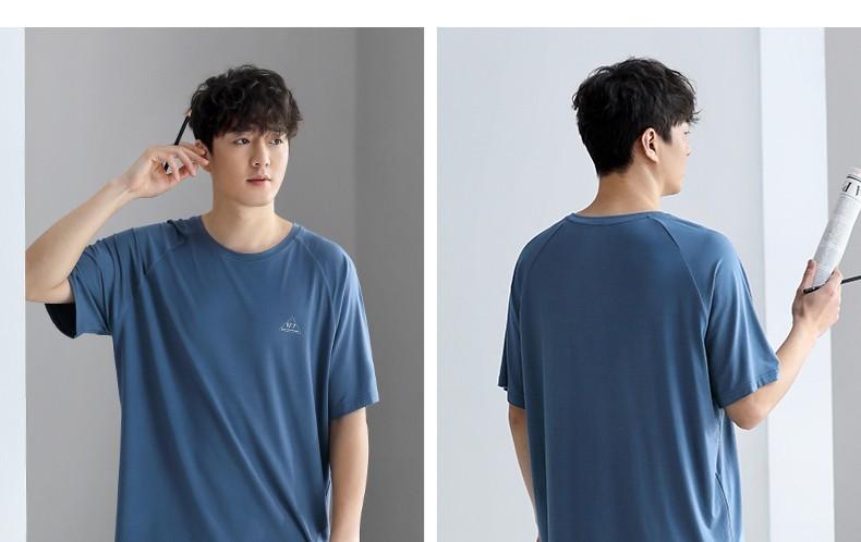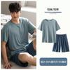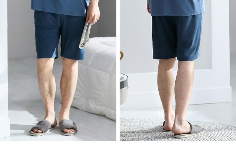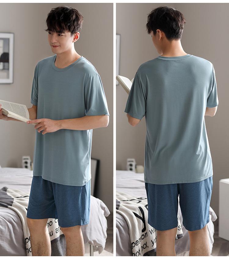 Pijama Modal de Verano para Hombre de Manga Corta y Pantalón Corto Ropa para el Hogar Traje de Algodón Fresco de Seda de Hielo Fino para Hombre