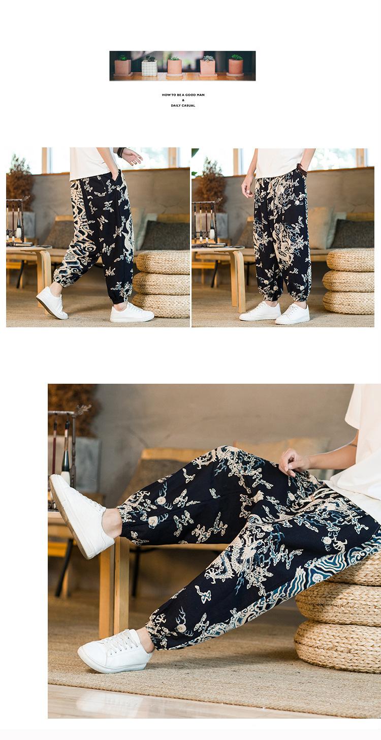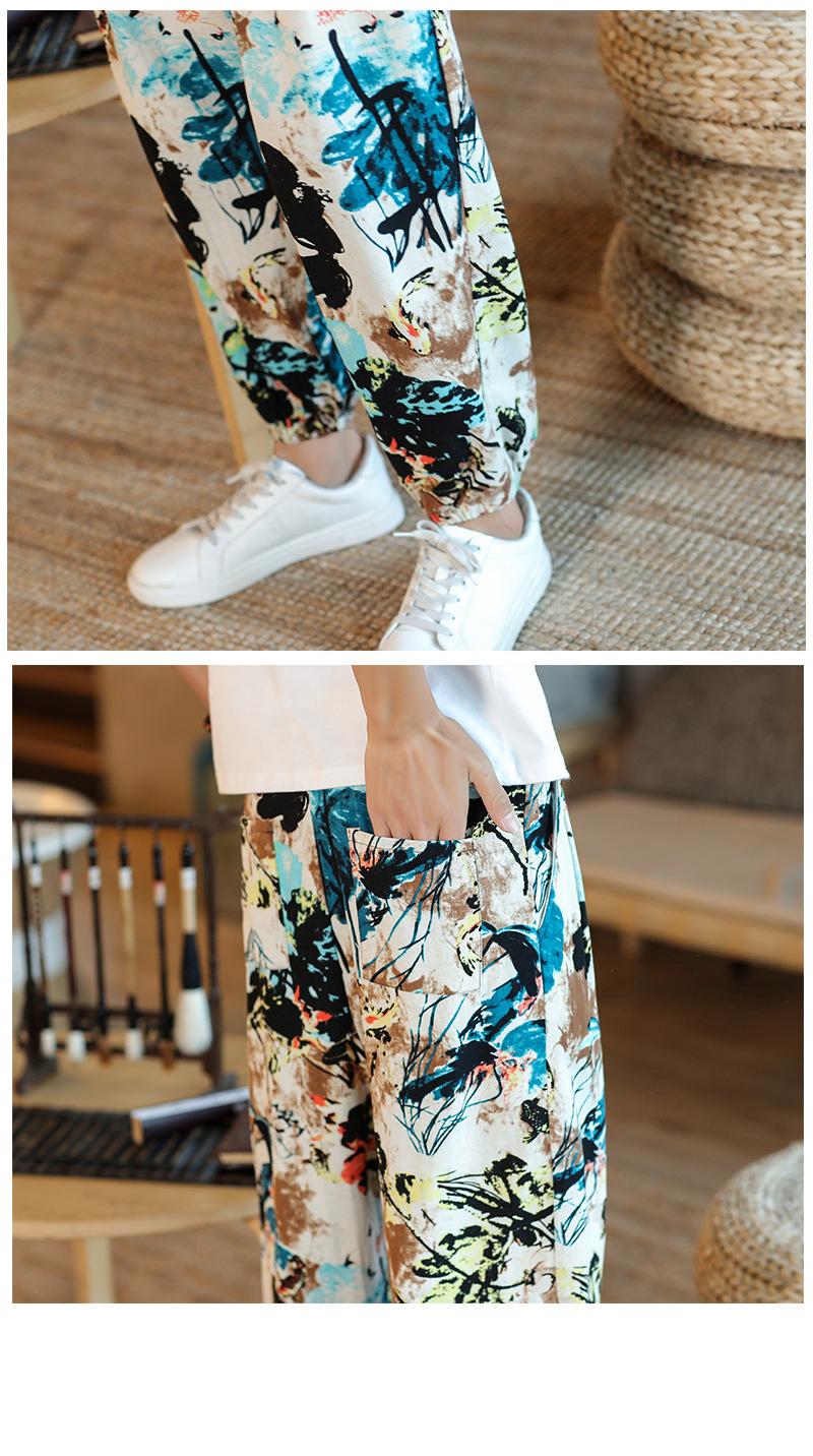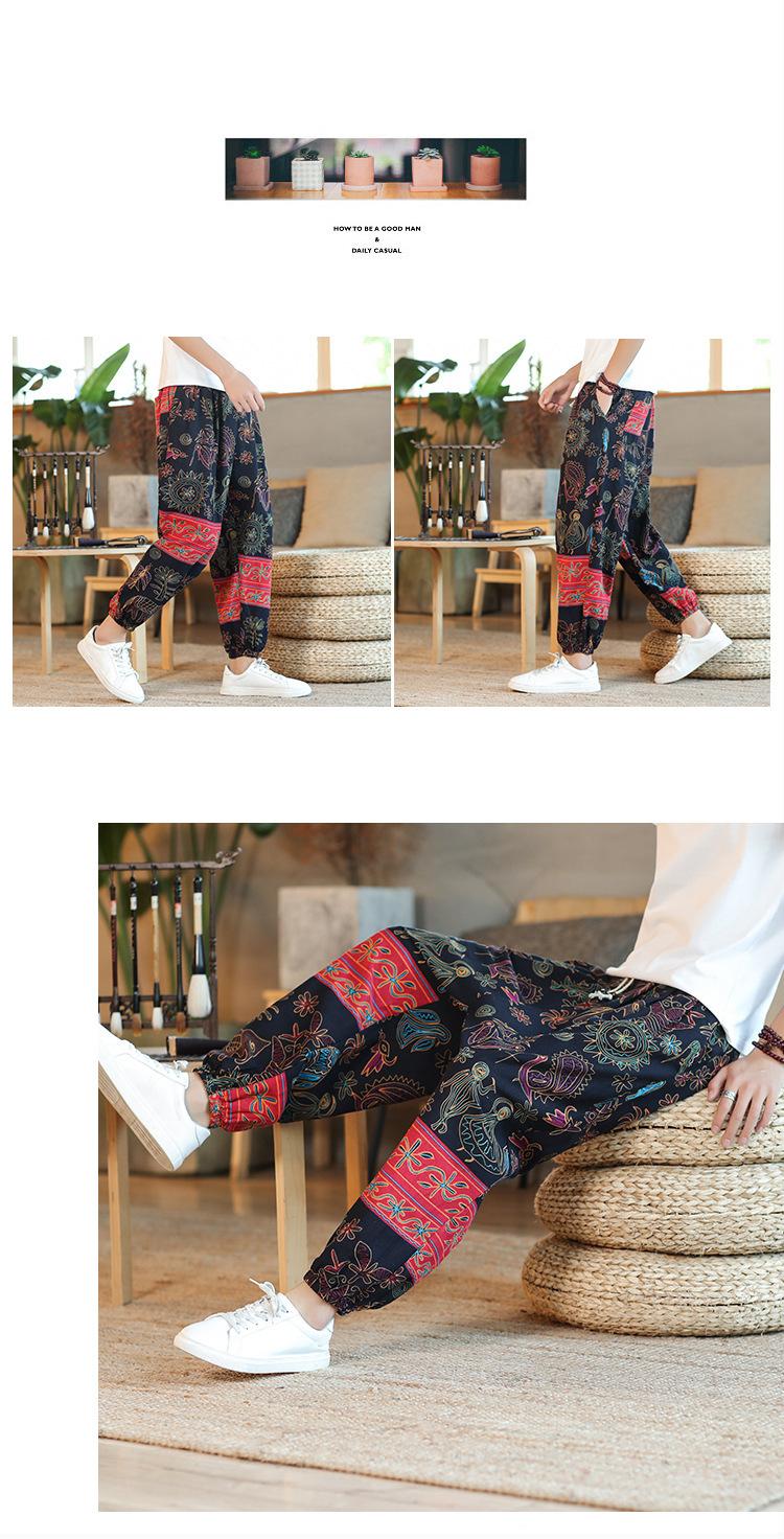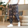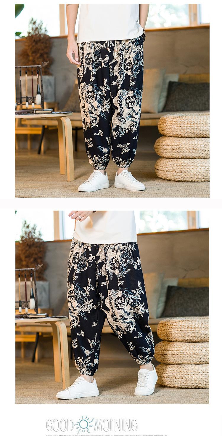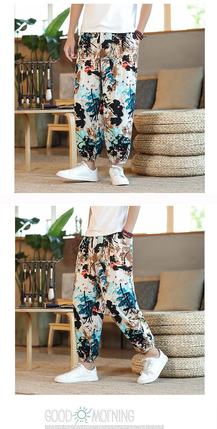 Verano 2025 Nuevo Pantalón Casual Retro de Moda para Hombre Estilo Chino Talla Grande Suelto Algodón y Lino Harem Pantalón Capri