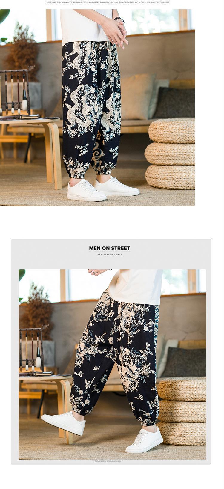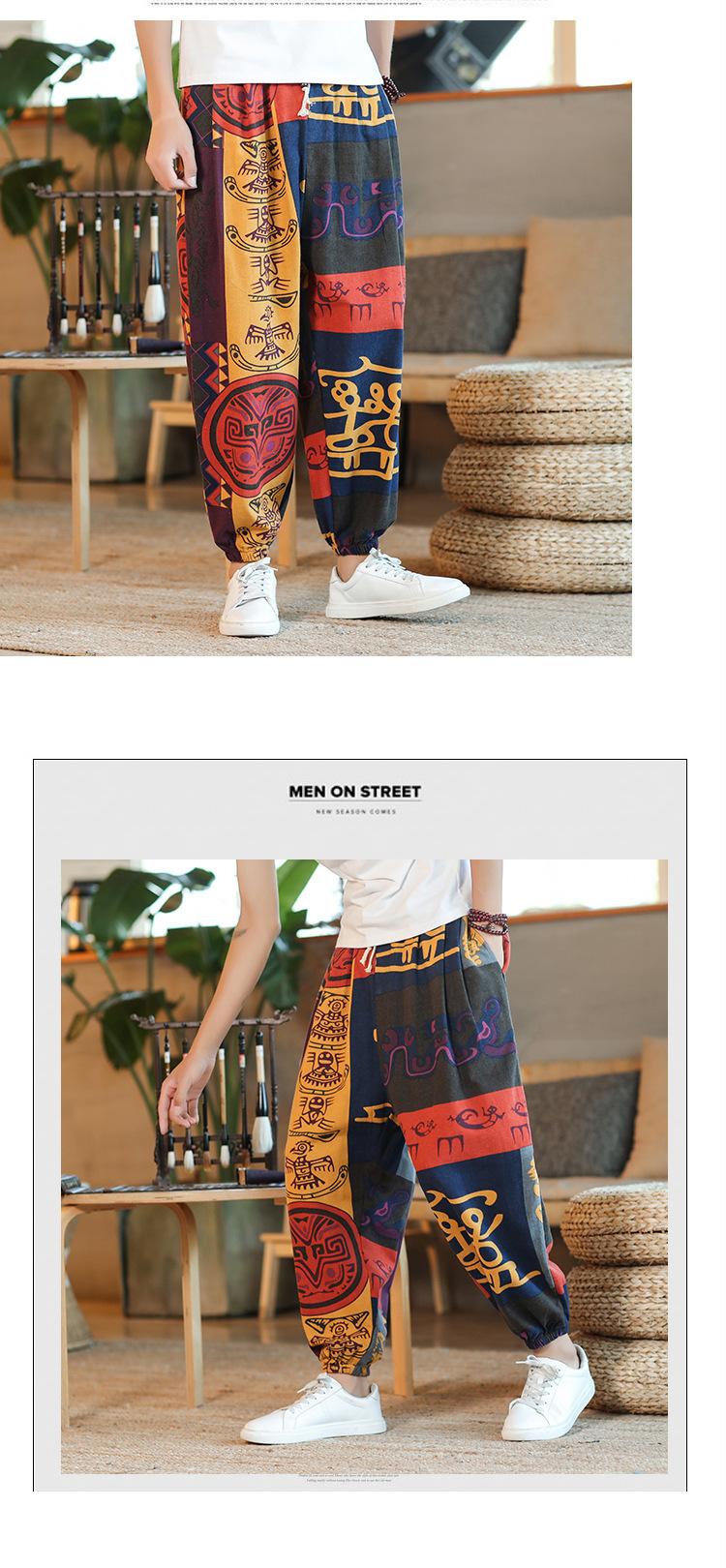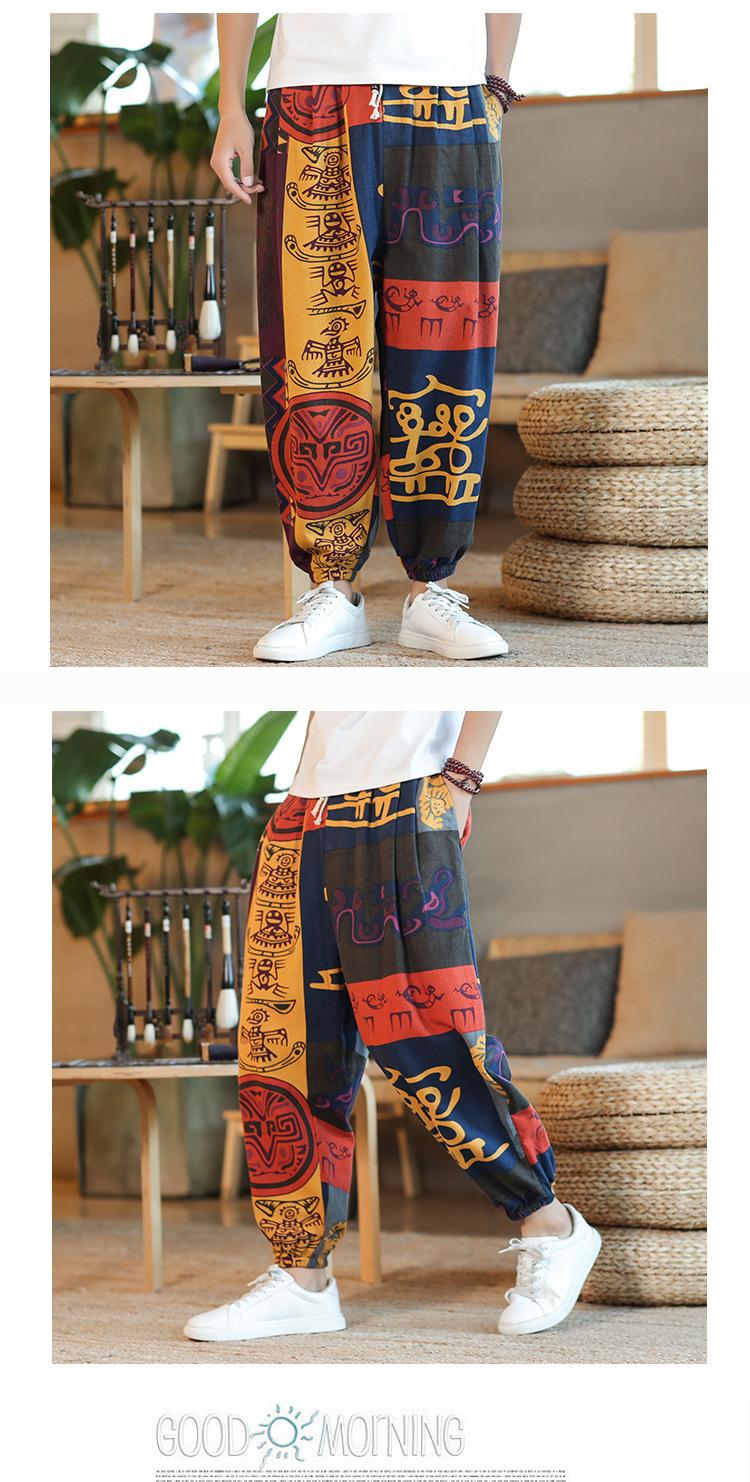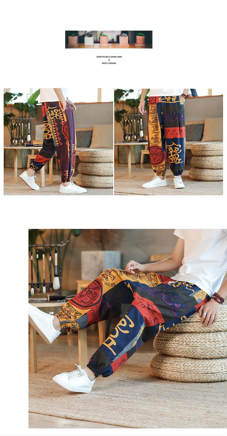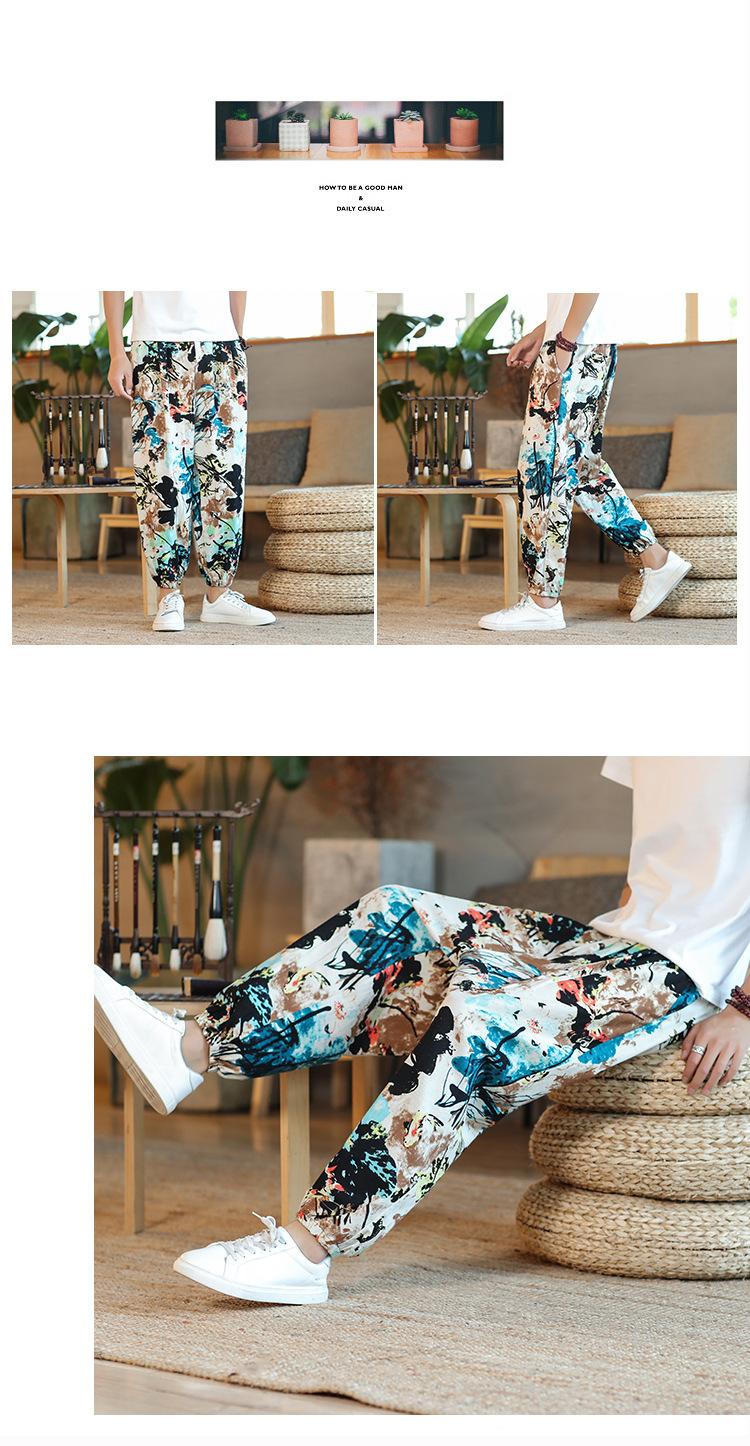 Verano 2025 Nuevo Pantalón Casual Retro de Moda para Hombre Estilo Chino Talla Grande Suelto Algodón y Lino Harem Pantalón Capri