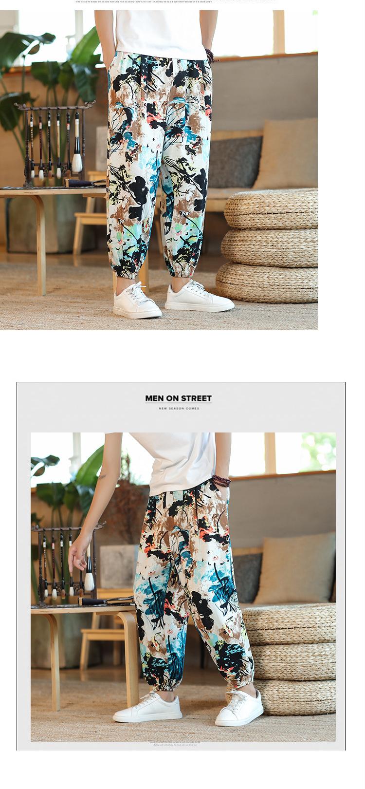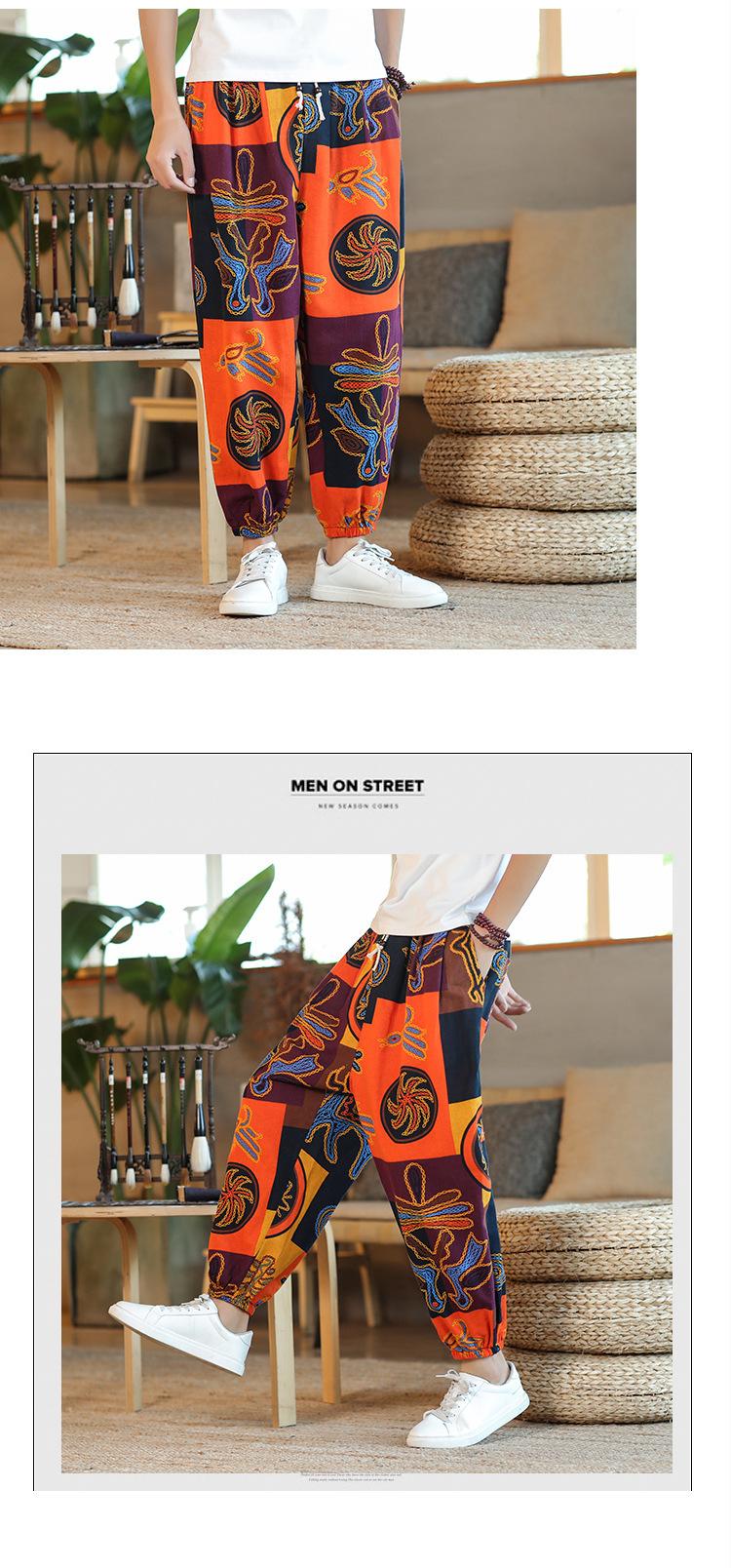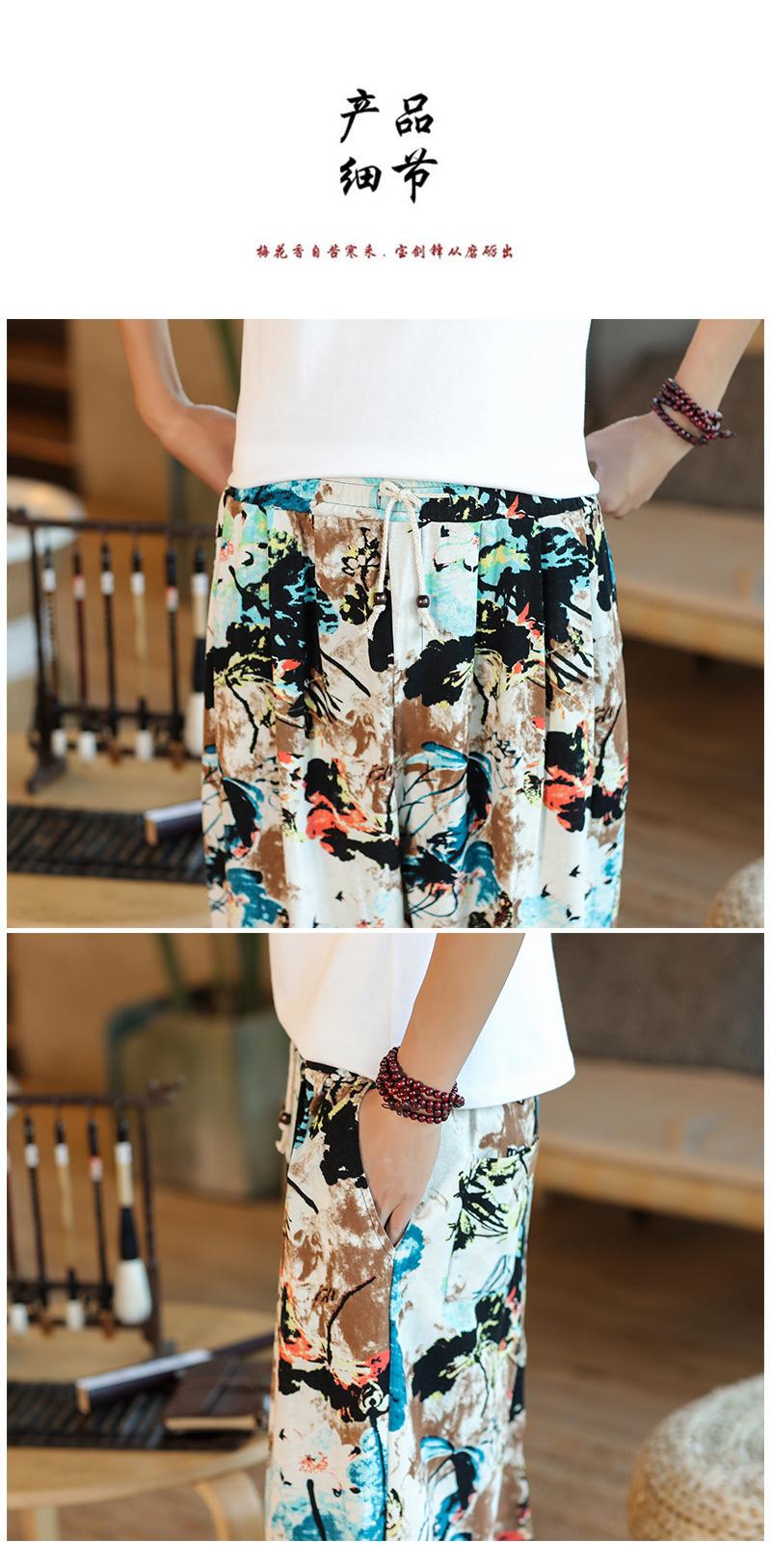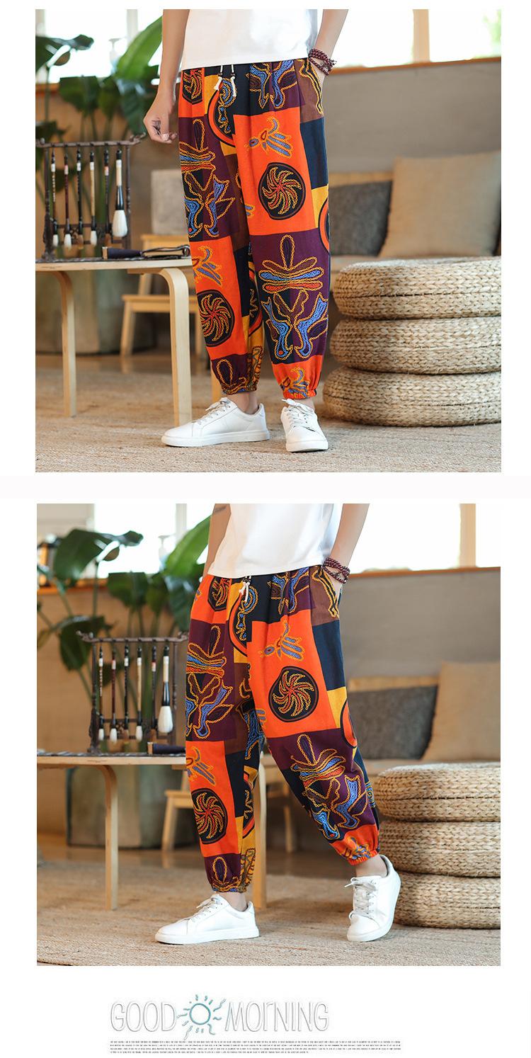 Verano 2025 Nuevo Pantalón Casual Retro de Moda para Hombre Estilo Chino Talla Grande Suelto Algodón y Lino Harem Pantalón Capri