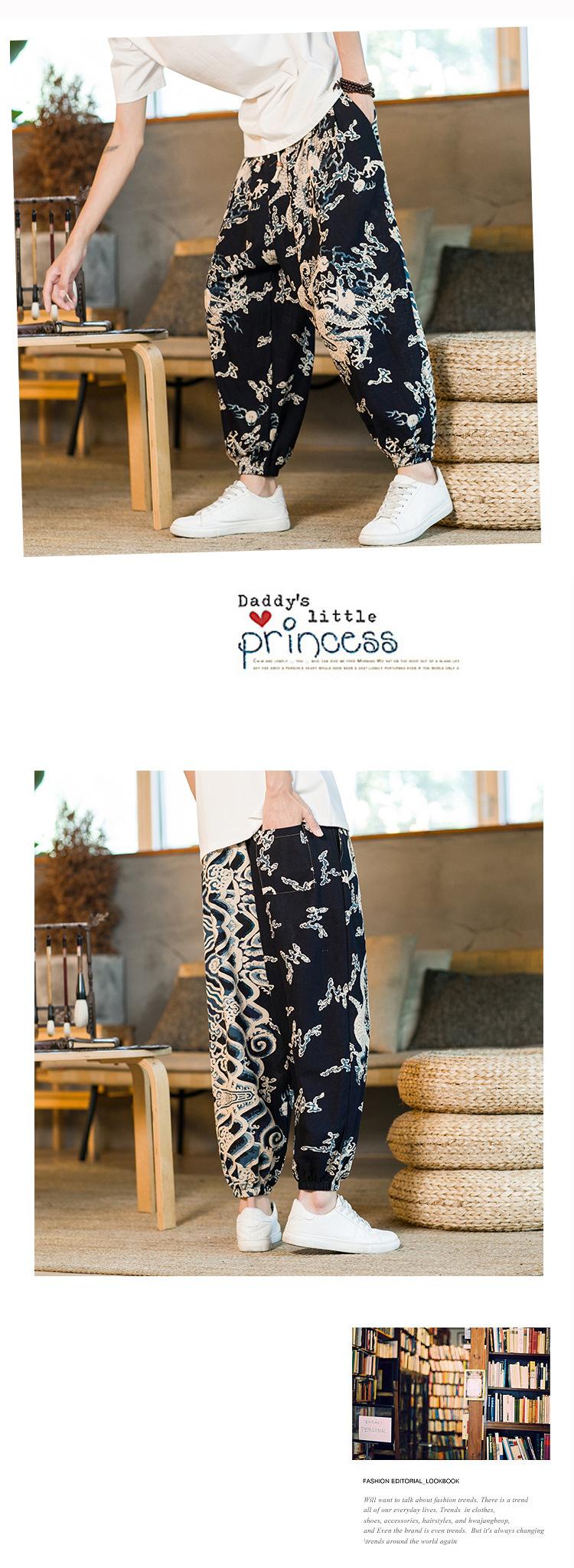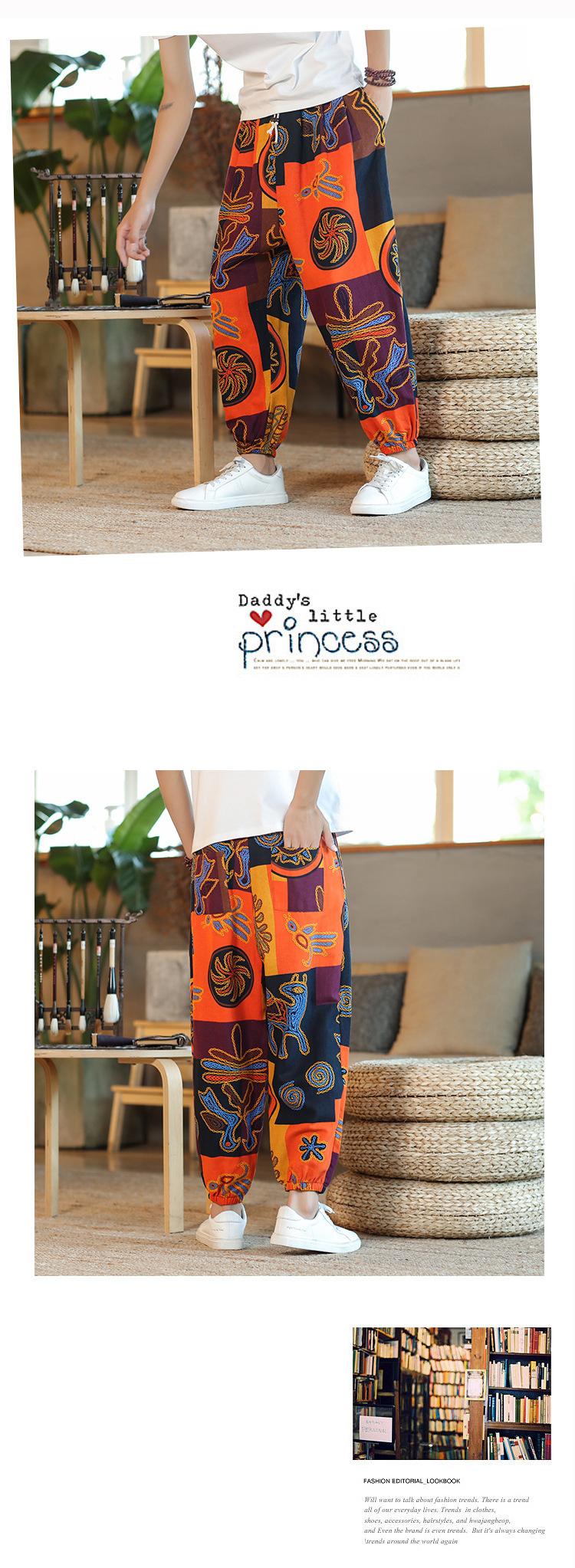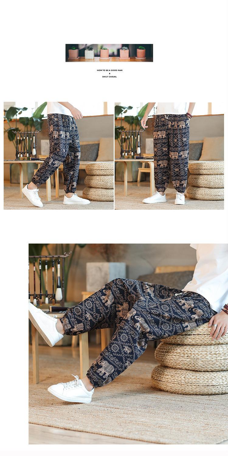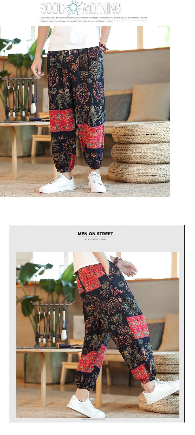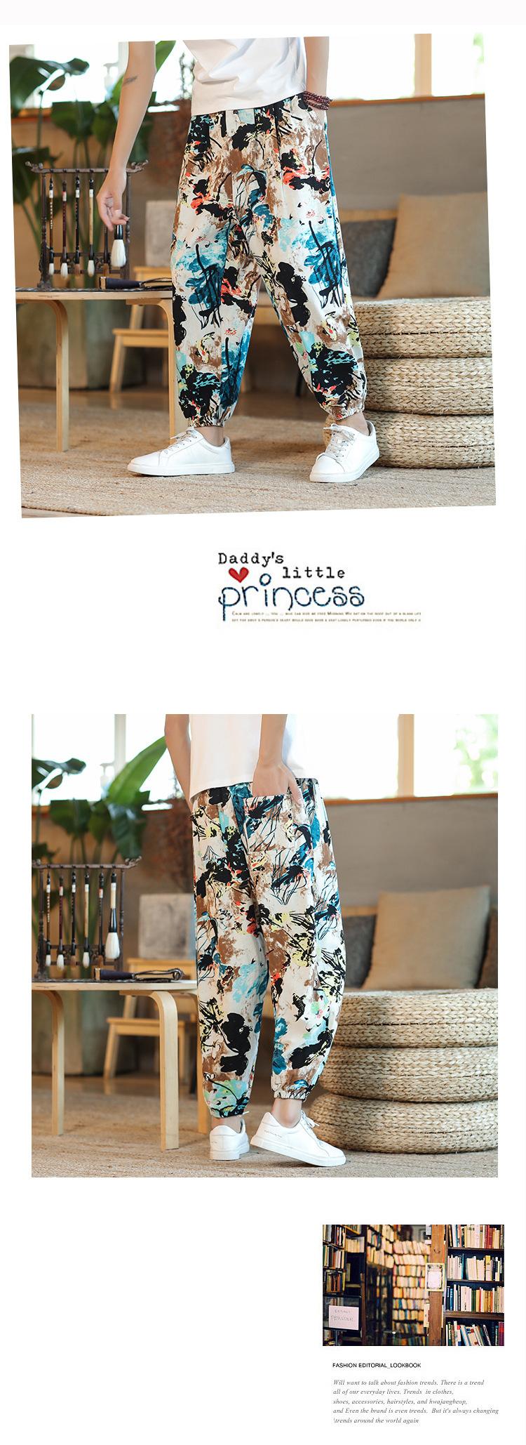 Verano 2025 Nuevo Pantalón Casual Retro de Moda para Hombre Estilo Chino Talla Grande Suelto Algodón y Lino Harem Pantalón Capri