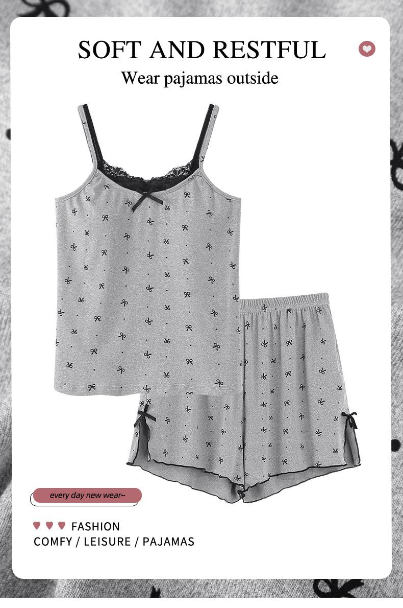 Pijama Camisola de Seda de Hielo para Mujer con Almohadilla en el Pecho, Set de Chaleco con Lazo de Verano, Shorts Florales de Talla Grande, Ropa de Dormir Acanalada