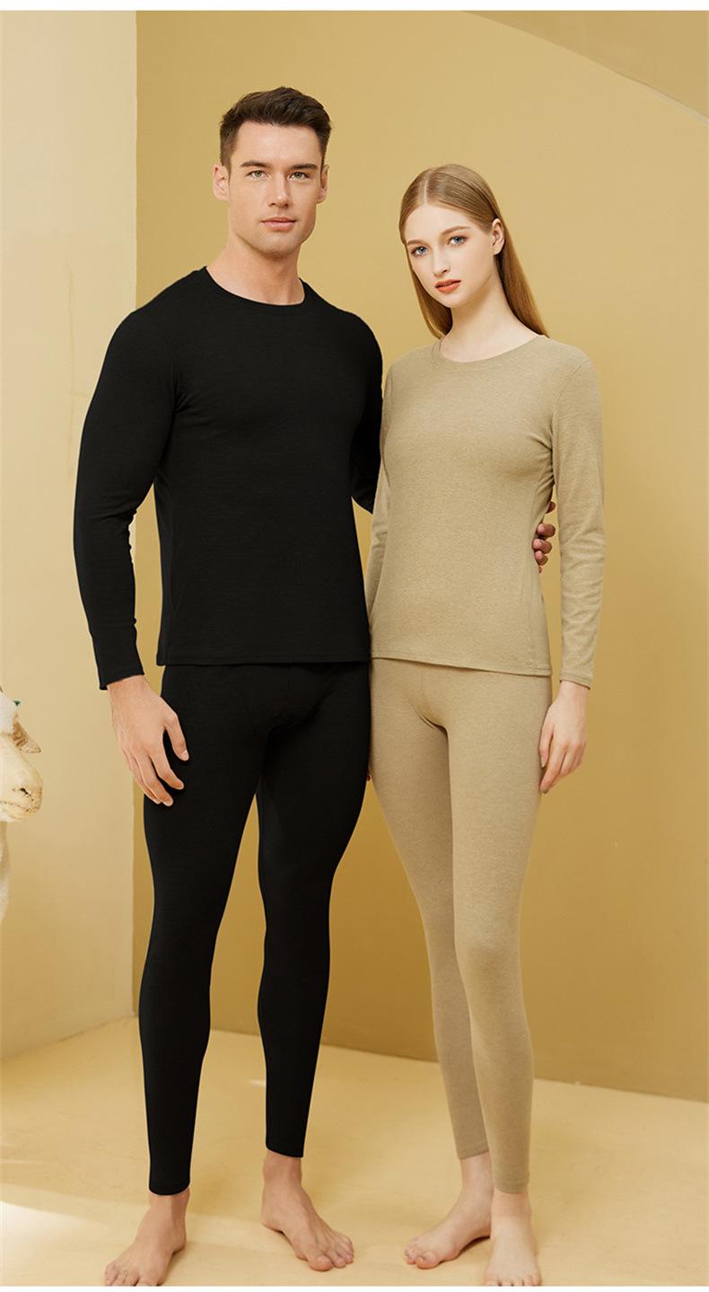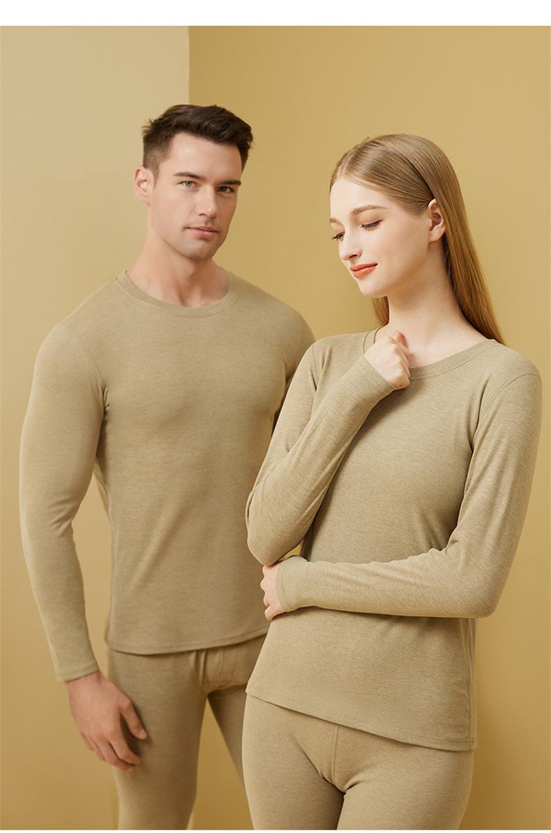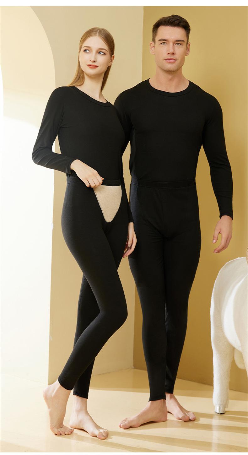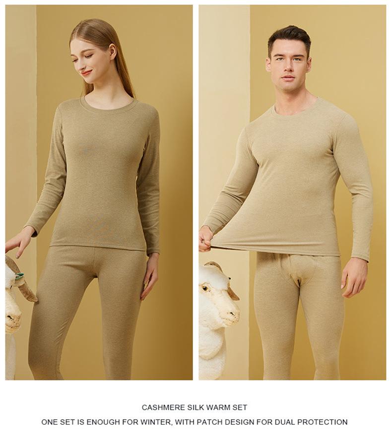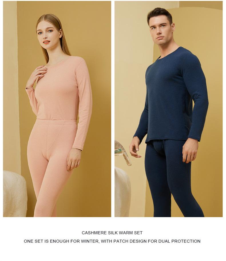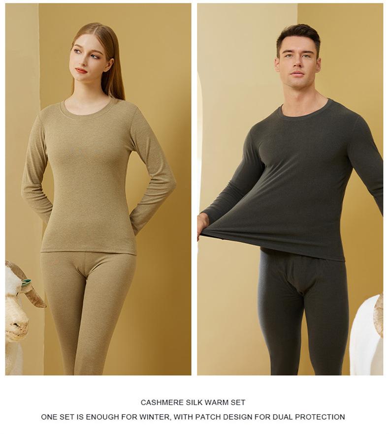Set de Ropa Interior para Hombre con Parche de Cachemira y Seda, Tops y Pantalones Térmicos de Invierno de Cuello Redondo para Mujer, Set Cálido para Pareja con Forro Polar