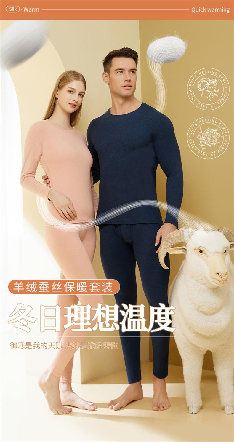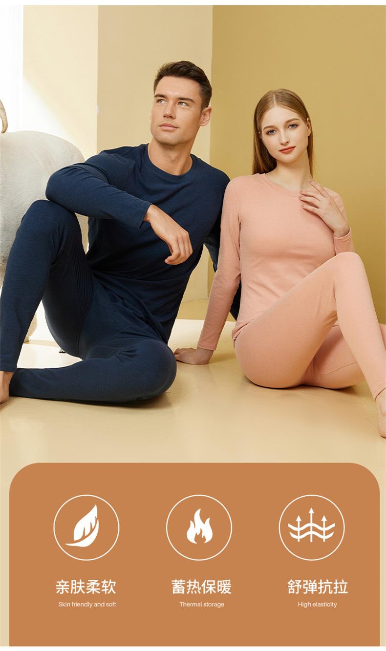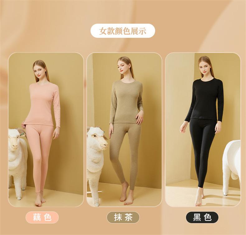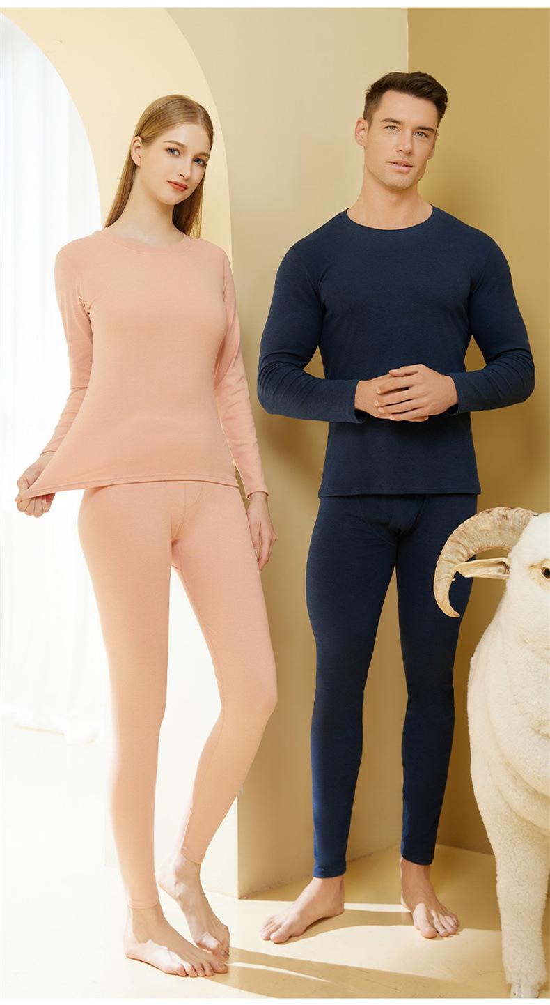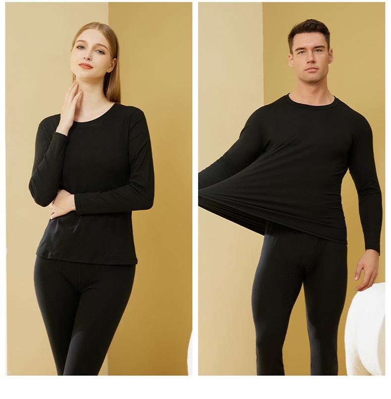 Set de Ropa Interior para Hombre con Parche de Cachemira y Seda, Tops y Pantalones Térmicos de Invierno de Cuello Redondo para Mujer, Set Cálido para Pareja con Forro Polar