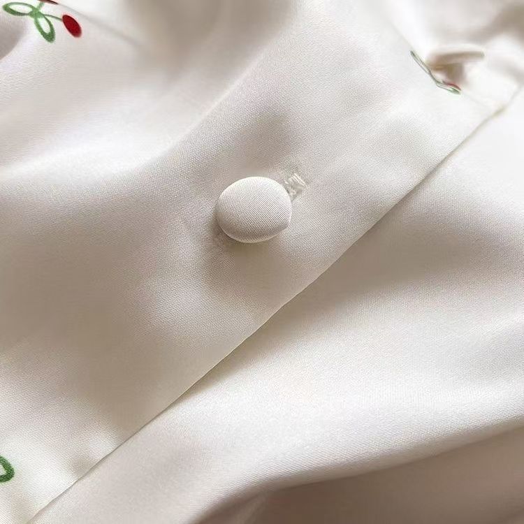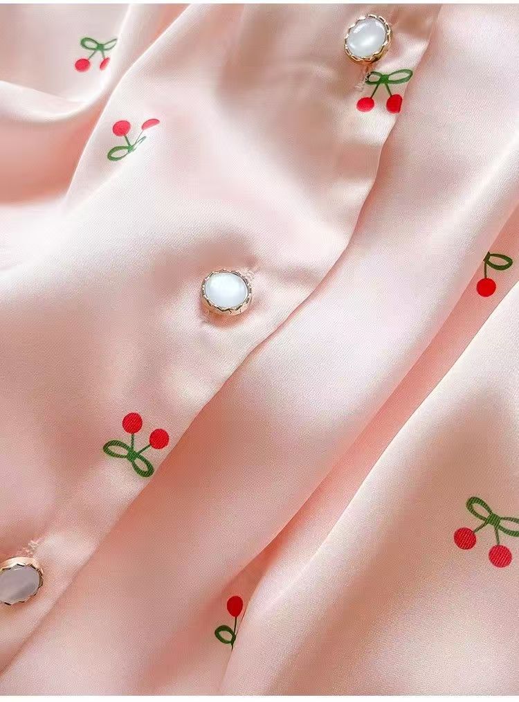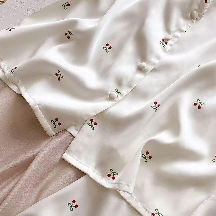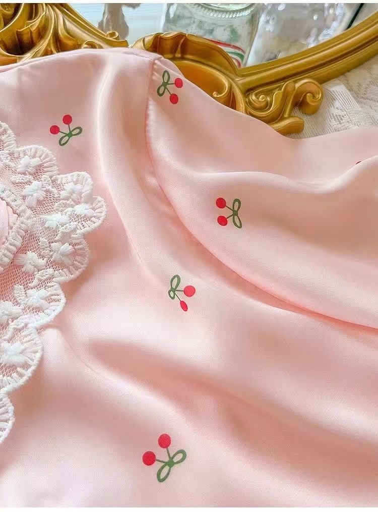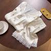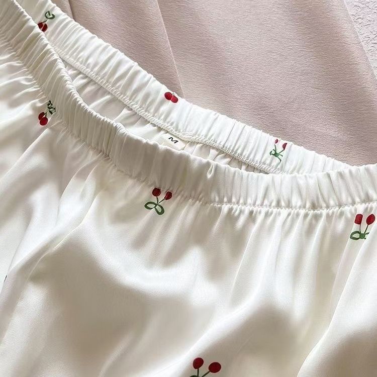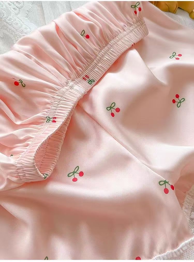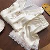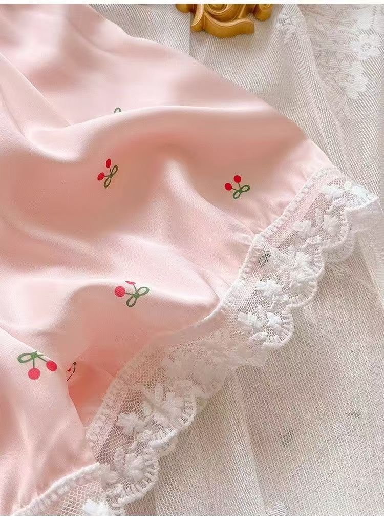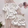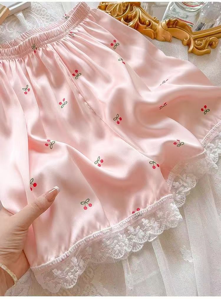Pijama de Seda de Hielo y Nieve de Verano para Mujer, Cárdigan de Encaje, Shorts de Manga Corta, Dulce Princesa, Conjunto de Ropa para Estar en Casa que se Puede Usar en el Exterior