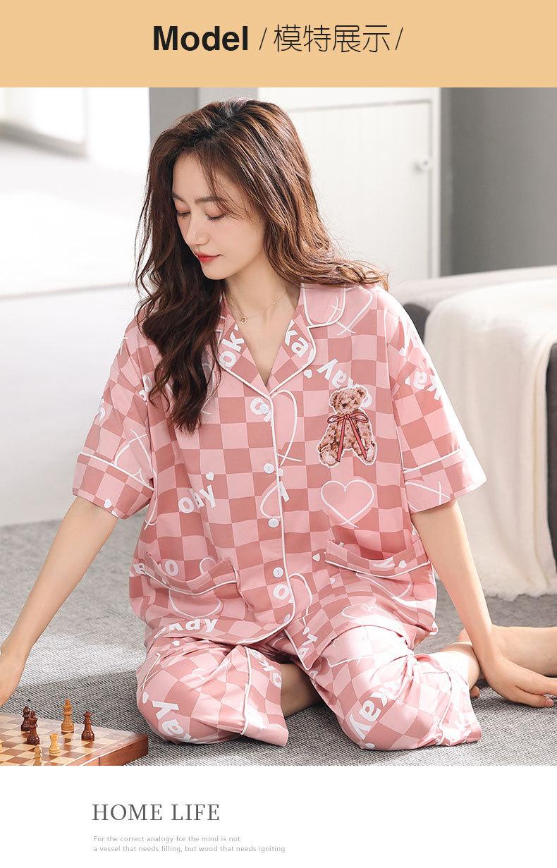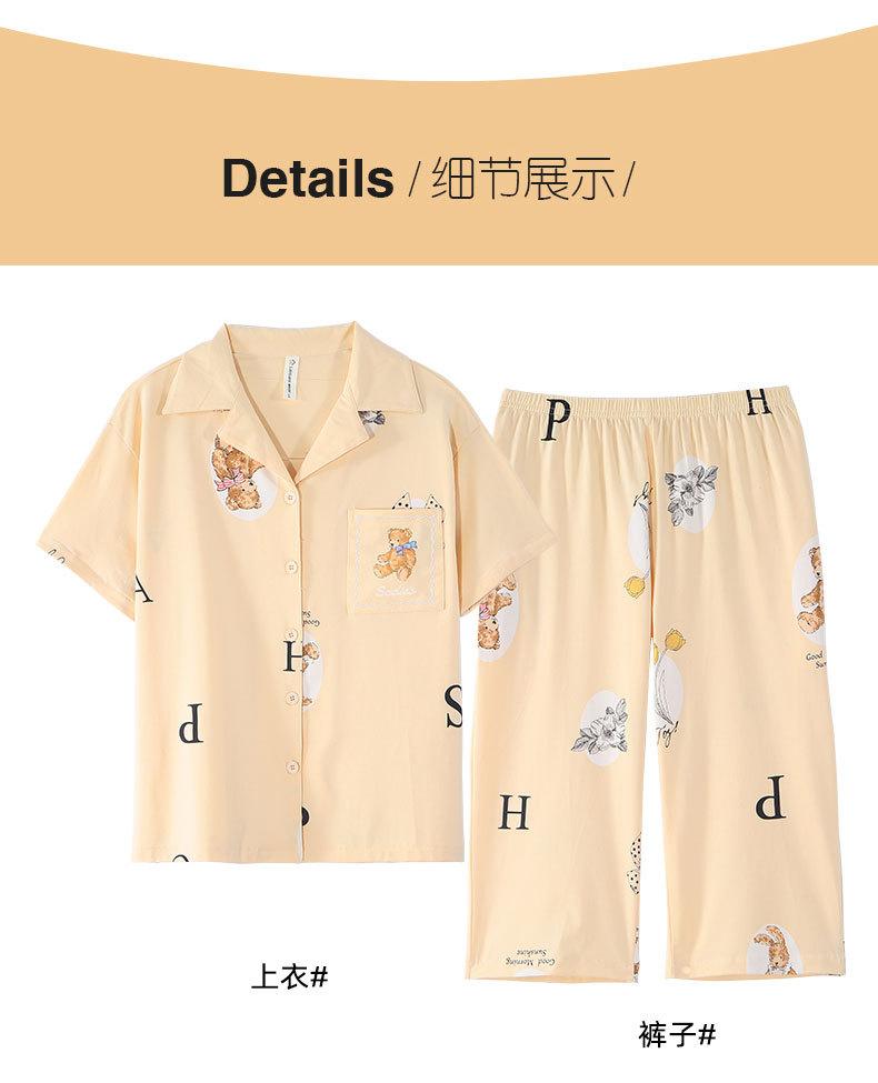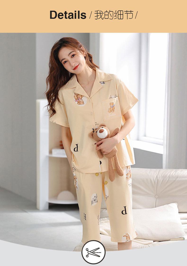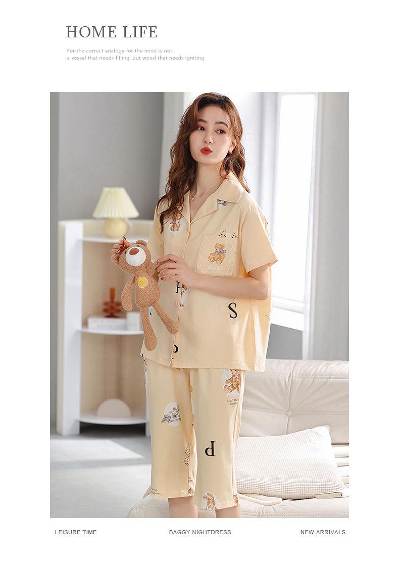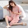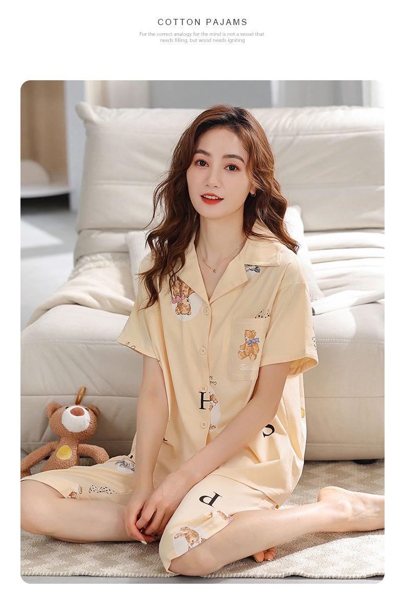 Pijama de Verano para Mujer, Pantalones Cortos de Manga Corta de Gama Alta, Ropa de Casa Dulce y Femenina con Solapa, Se Puede Usar Afuera, Traje de Algodón para Ponerse