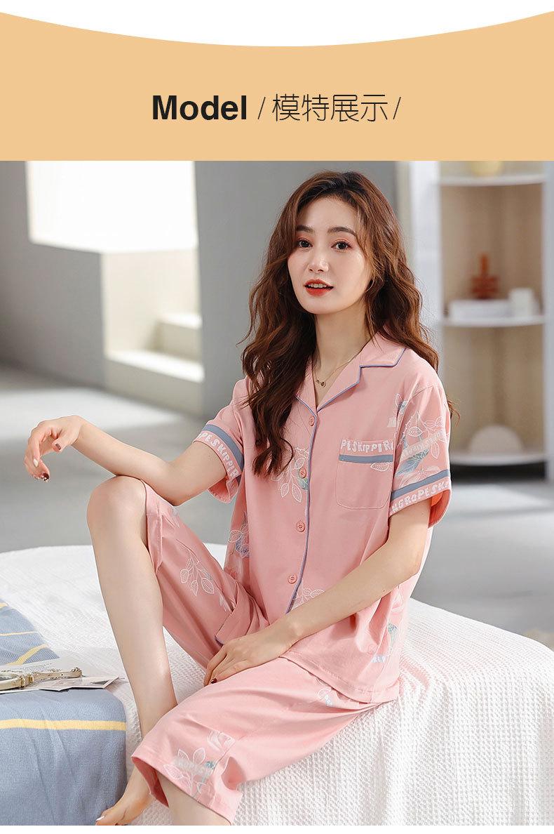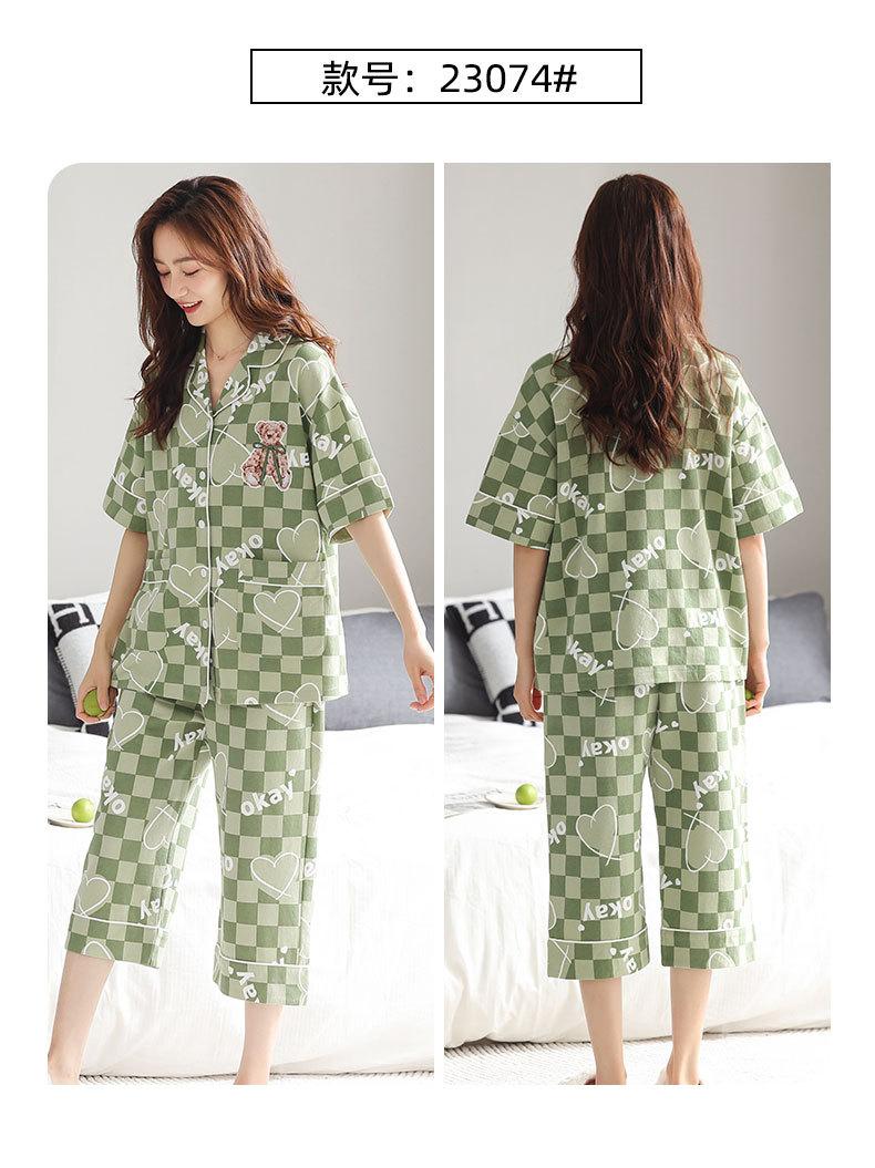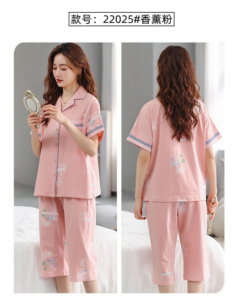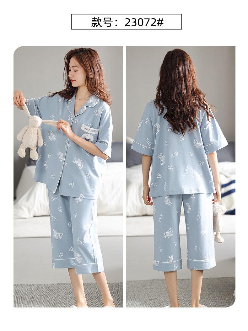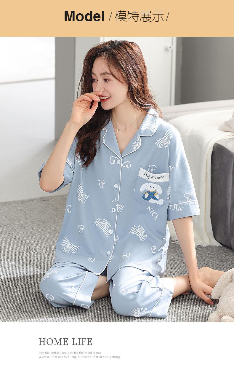 Pijama de Verano para Mujer, Pantalones Cortos de Manga Corta de Gama Alta, Ropa de Casa Dulce y Femenina con Solapa, Se Puede Usar Afuera, Traje de Algodón para Ponerse