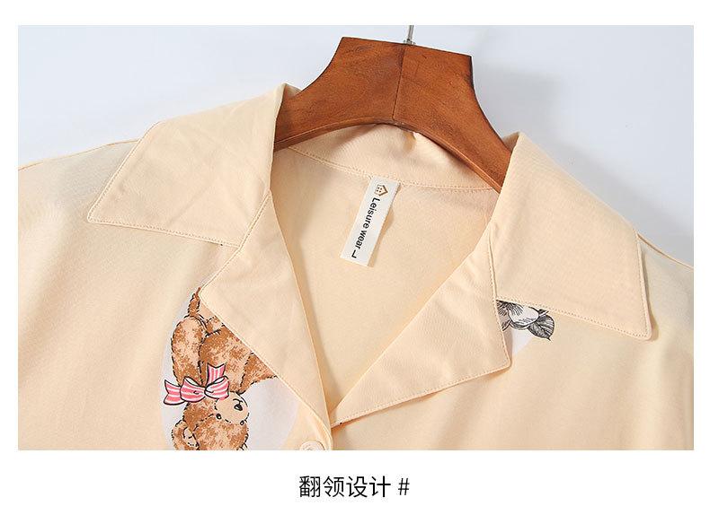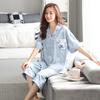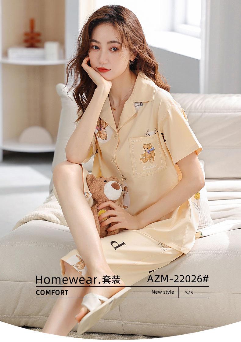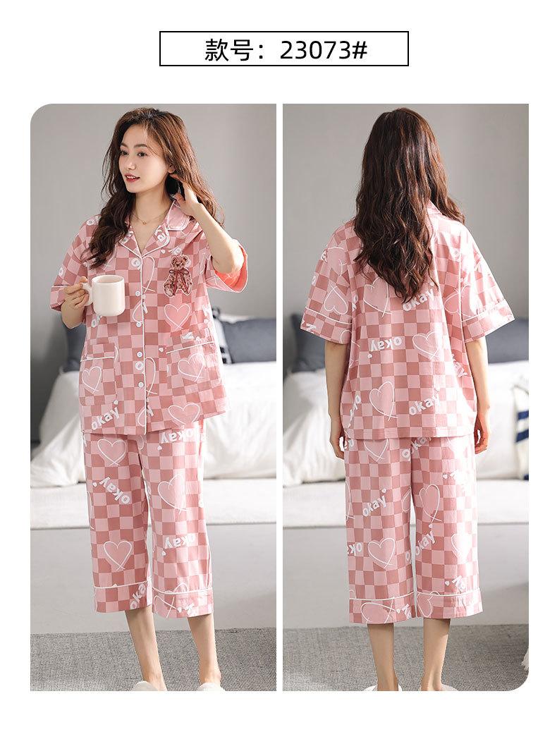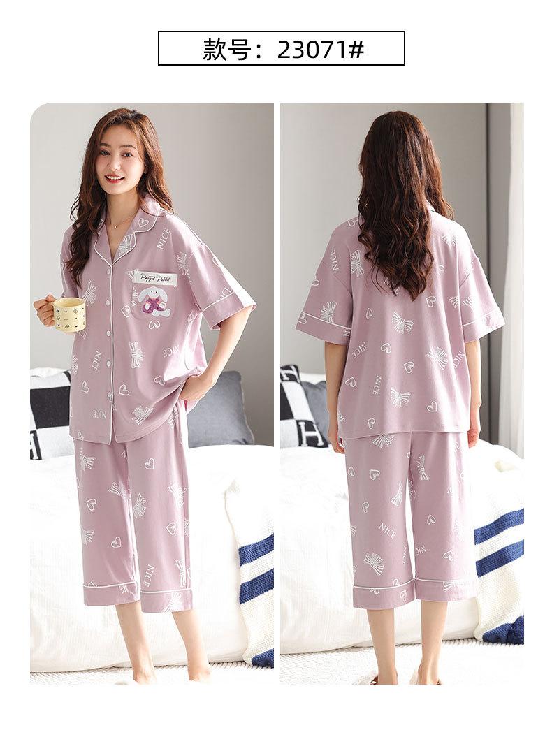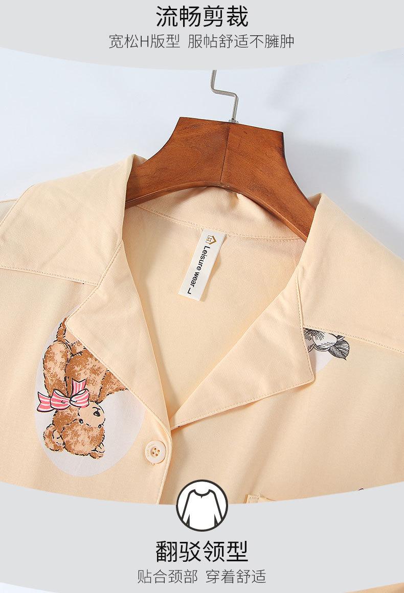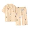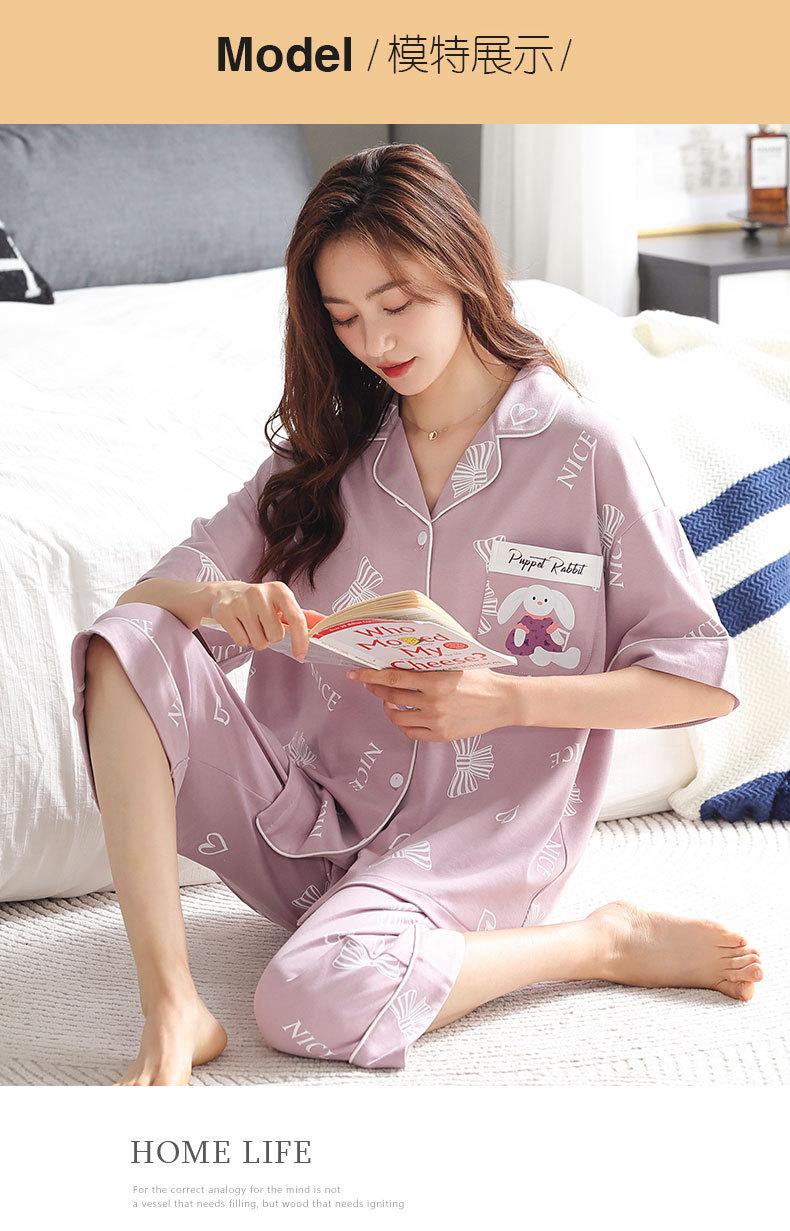 Pijama de Verano para Mujer, Pantalones Cortos de Manga Corta de Gama Alta, Ropa de Casa Dulce y Femenina con Solapa, Se Puede Usar Afuera, Traje de Algodón para Ponerse