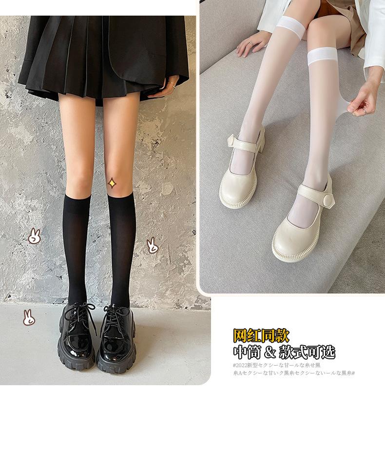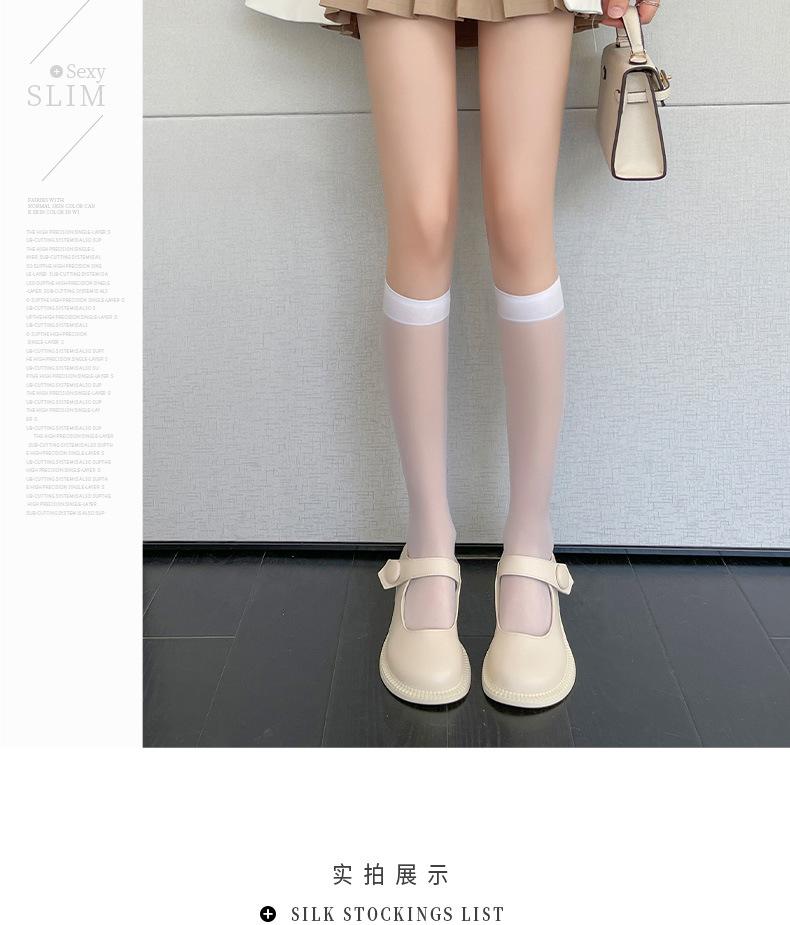 Compra Calcetines de verano para mujer Calcetines hasta la pantorrilla J Medias finas japonesas K blanco y negro tubo alto verano no se caen calcetines hasta la rodilla al por mayor en Joom.pro
