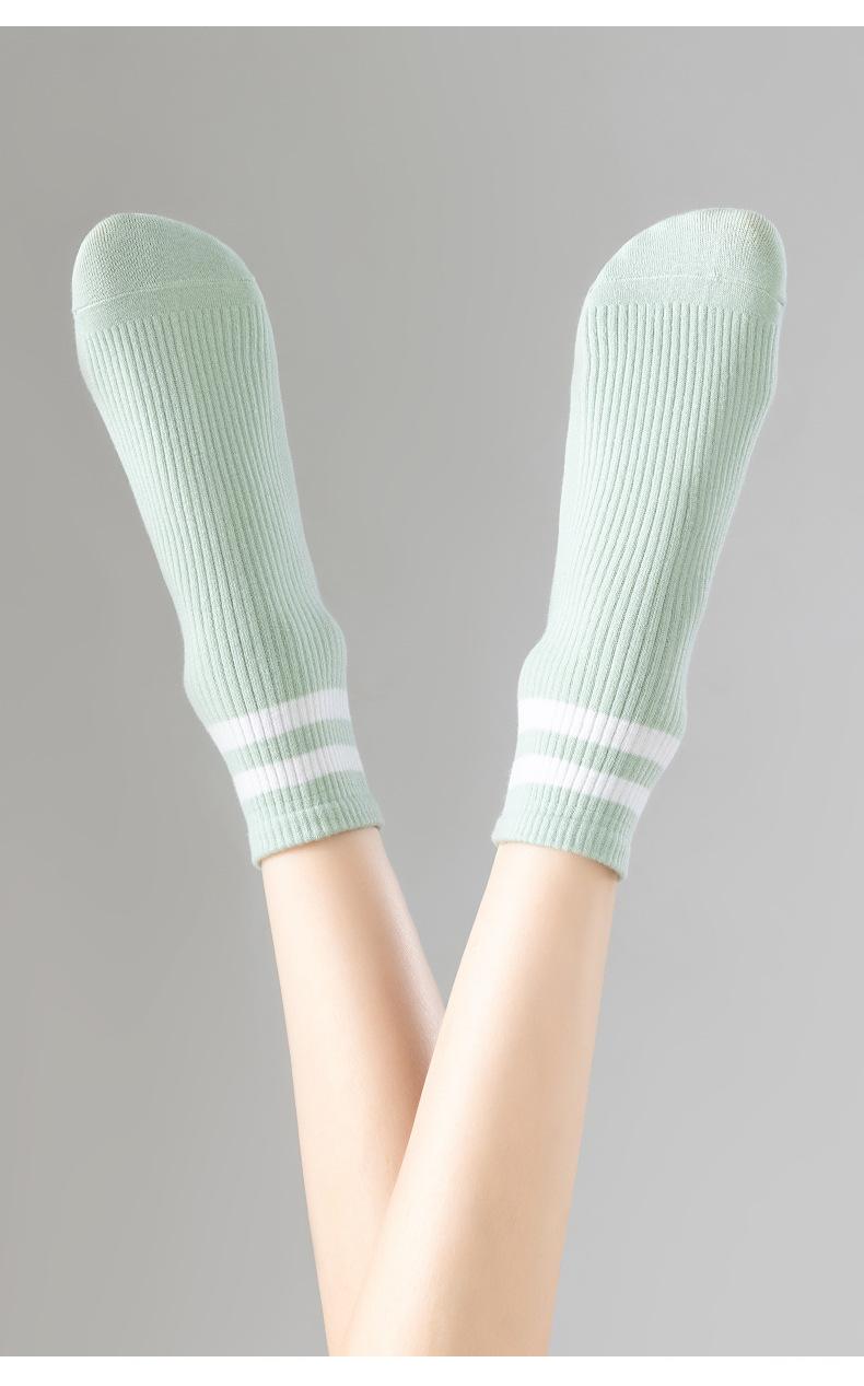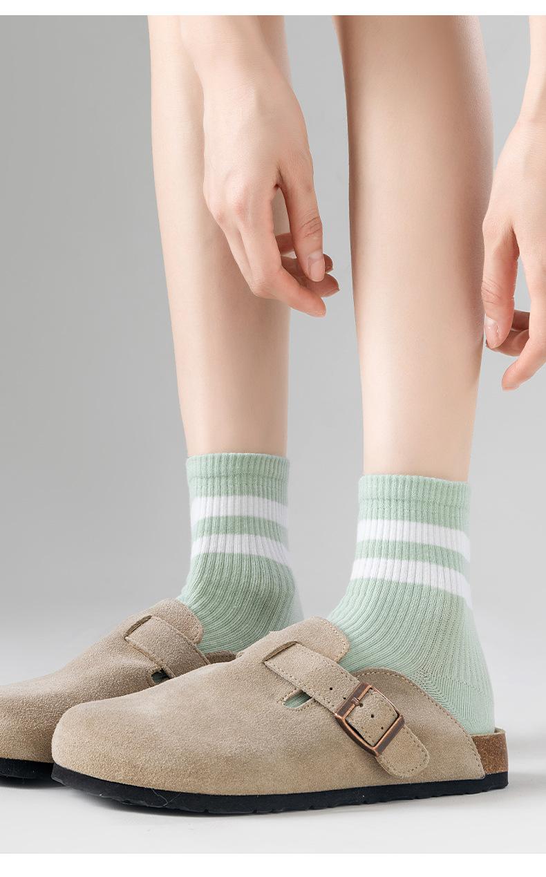Calcetines de Algodón de Color Sólido para Mujer hasta Media Pantorrilla Transpirables Antibacterianos Desodorantes Rayados Versátiles Ins Estilo Japonés Calcetines Deportivos