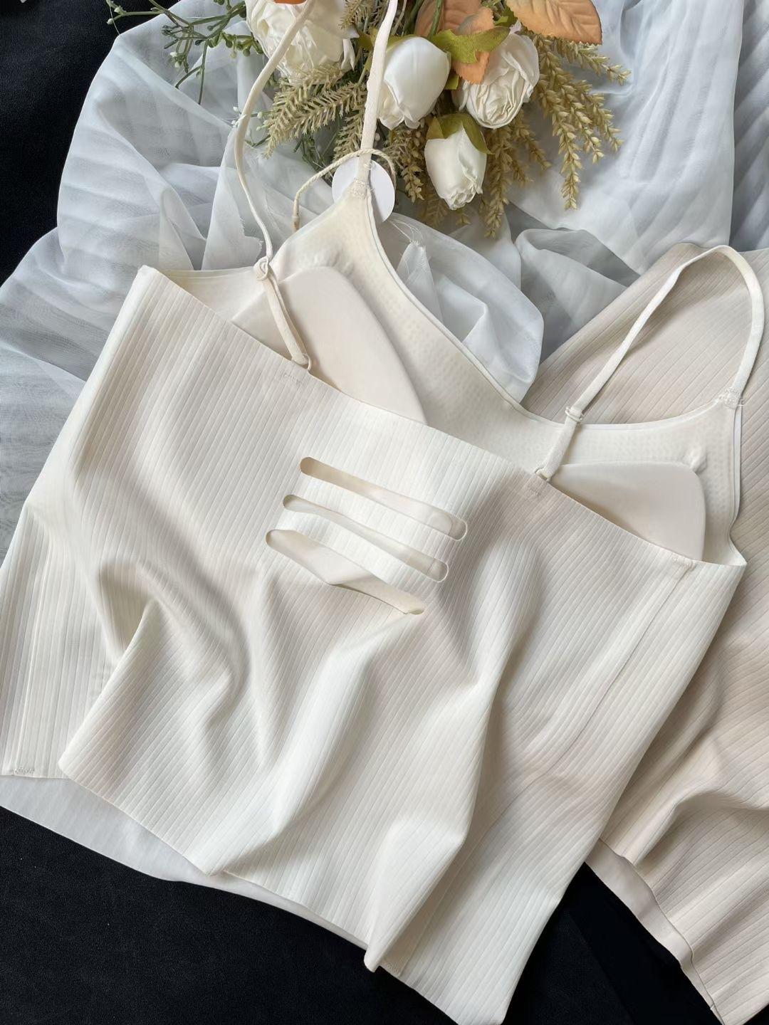 Cloud Sense Seamless Beauty Back Copa de Látex Copa Fija Tirantes Camiseta Básica de Verano para Mujer Sexy Hueca Interior