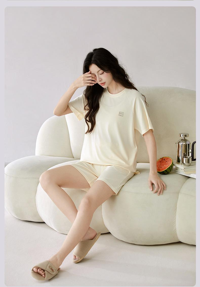 Pijama de Algodón Modal Clase a para Mujer Verano Set de Pantalones Cortos de Manga Corta Verano Delgada Pijama de Mujer Ropa para el Hogar Se Puede Usar Afuera