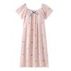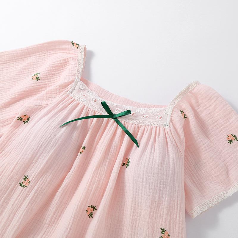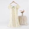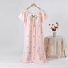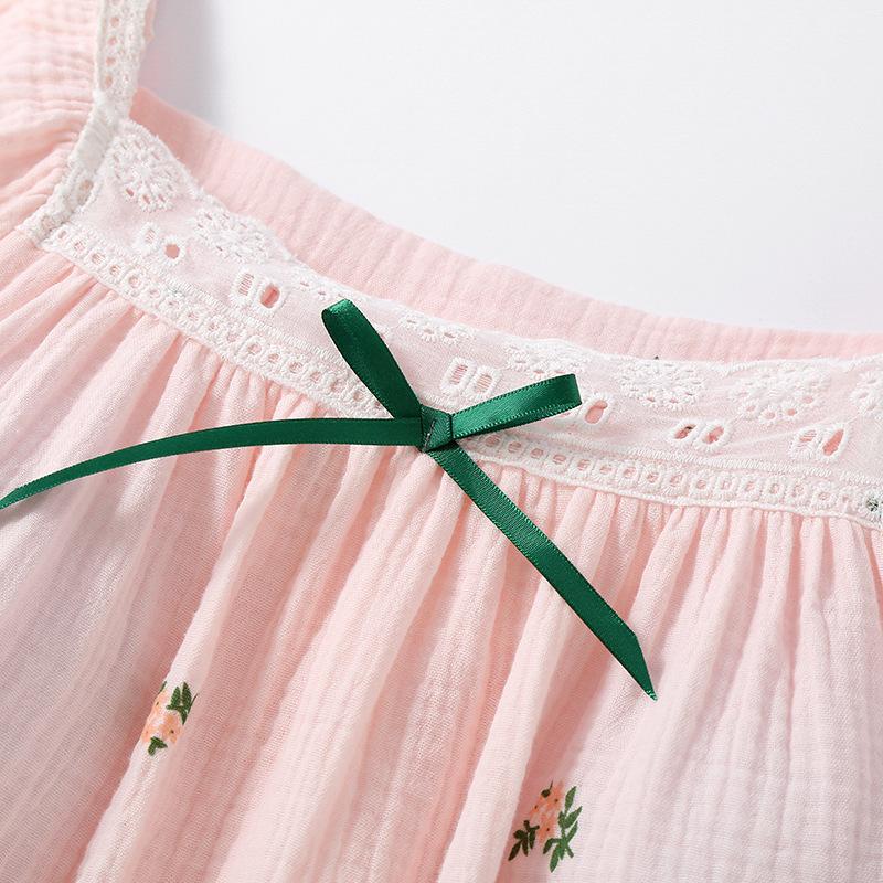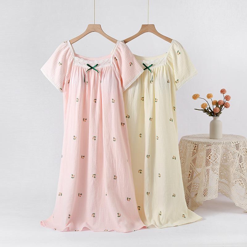 Camisón para Mujer Verano Estilo Coreano Floral Algodón Puro Simple Encaje Manga Corta Camisón con Almohadilla en el Pecho Antigolpes Hogar Falda Midi