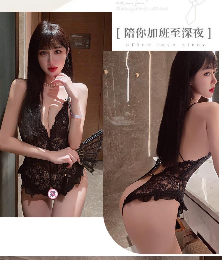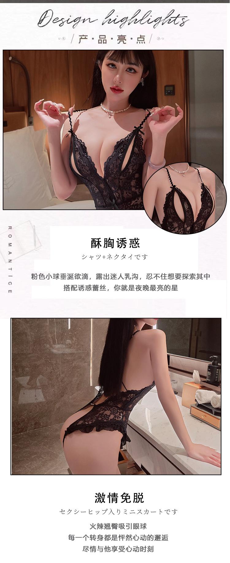 Lencería Sexy de Noche Larga Encaje Tentación Puro Sexy Mono Entrepierna Abierta Pijamas de Cama para Mujer 2036