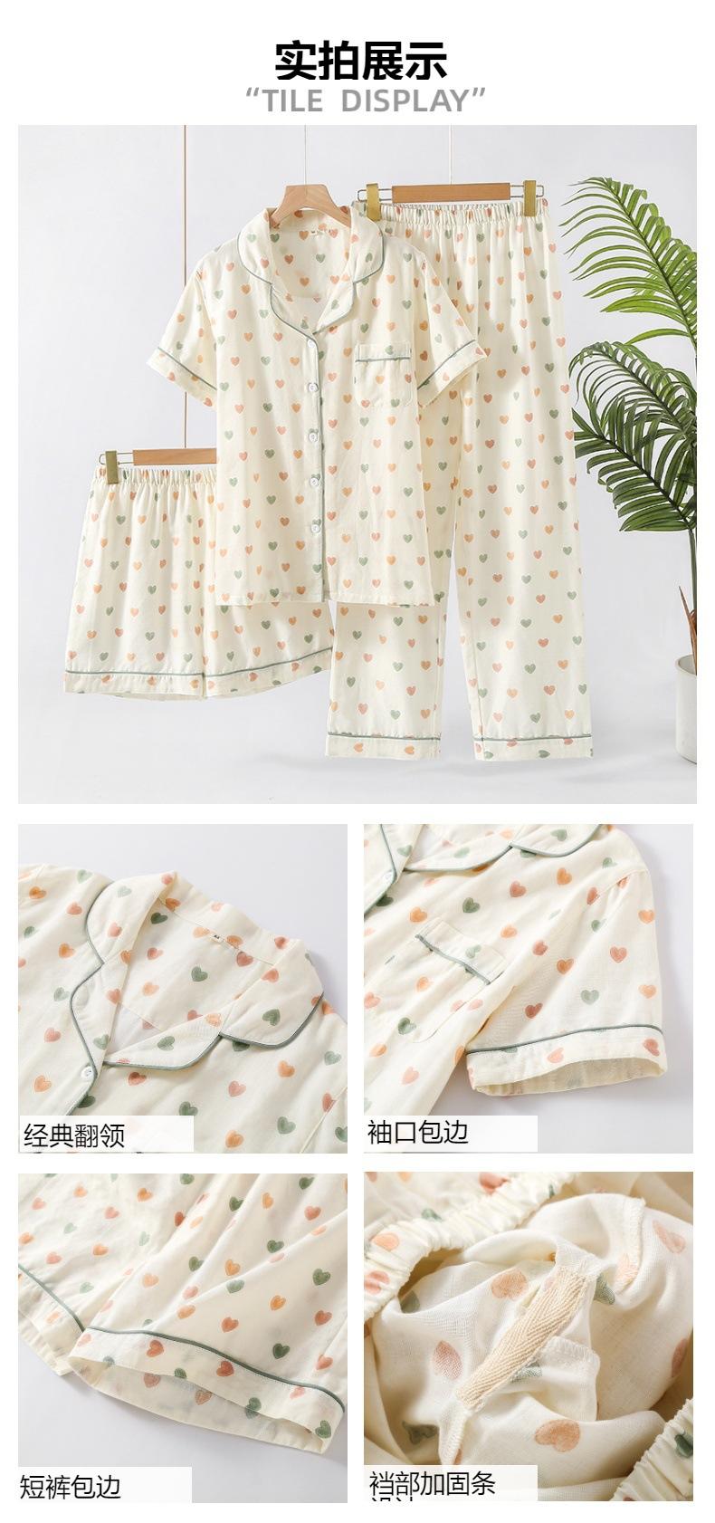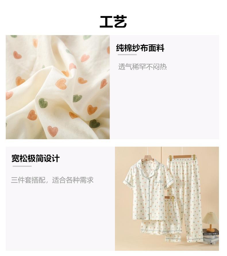 Compra Pijama Nuevo de Tres Piezas para Mujer Gasa de Algodón Manga Corta Shorts Pantalones Delgado Suave Verano Ropa de Casa Traje al por mayor en Joom.pro