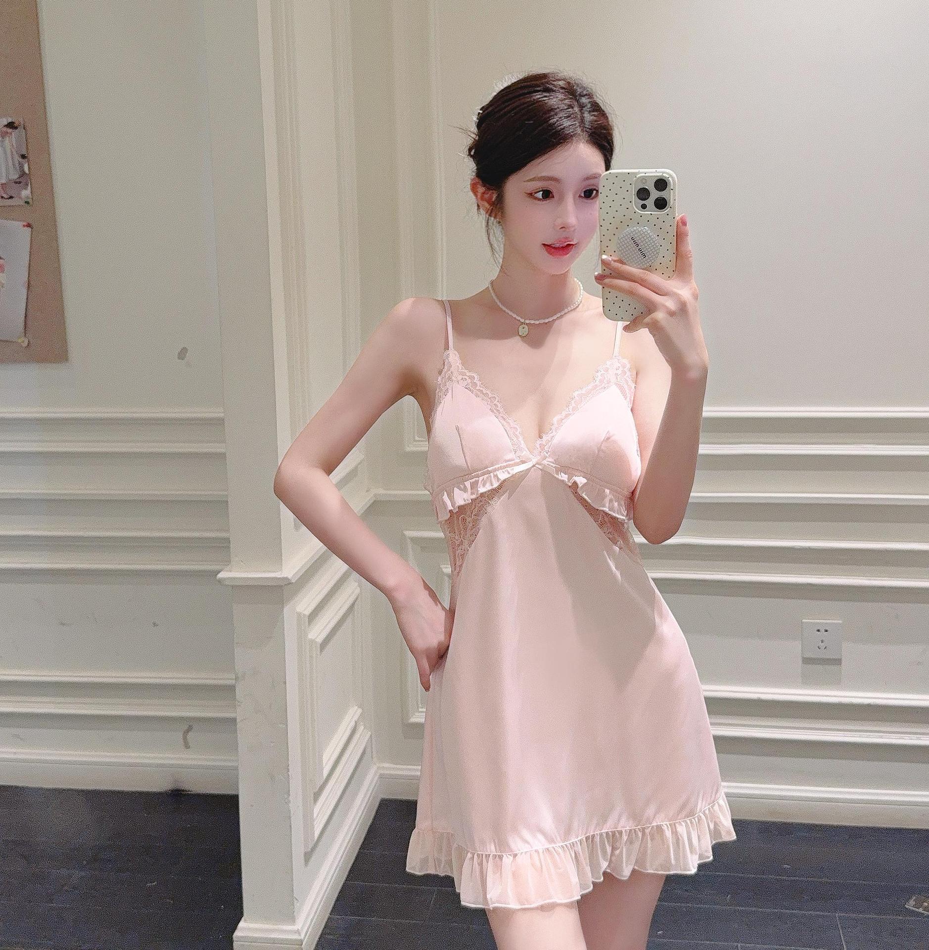 Pijama de Mujer Seda de Hielo Pijama de Seda de Hielo Pijama de Seda de Hielo para Mujer Pijama para Mujer Pijama de Gama Alta para Mujer Primavera y Otoño Pijama de Primavera y Otoño para Mujer