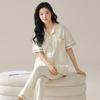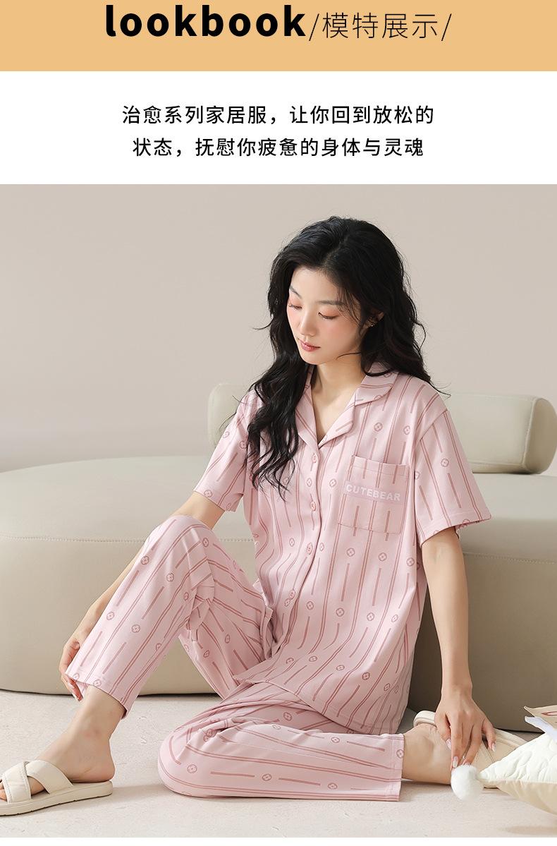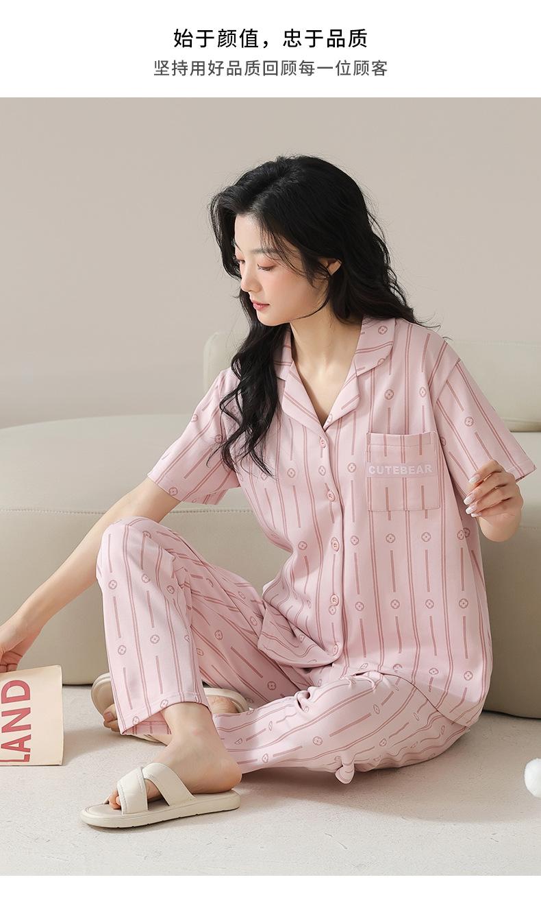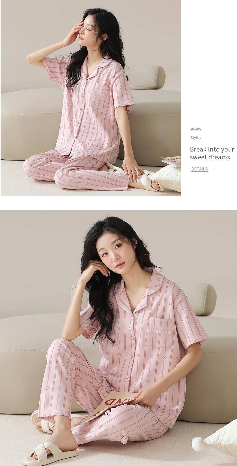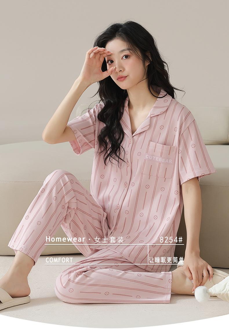 Pijama de Algodón Puro Fino de Verano 2025 para Mujer, Pantalón de Manga Corta, Cárdigan Suelto, Moderno y Cómodo, Conjunto de Ropa para el Hogar