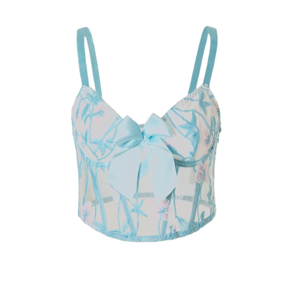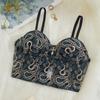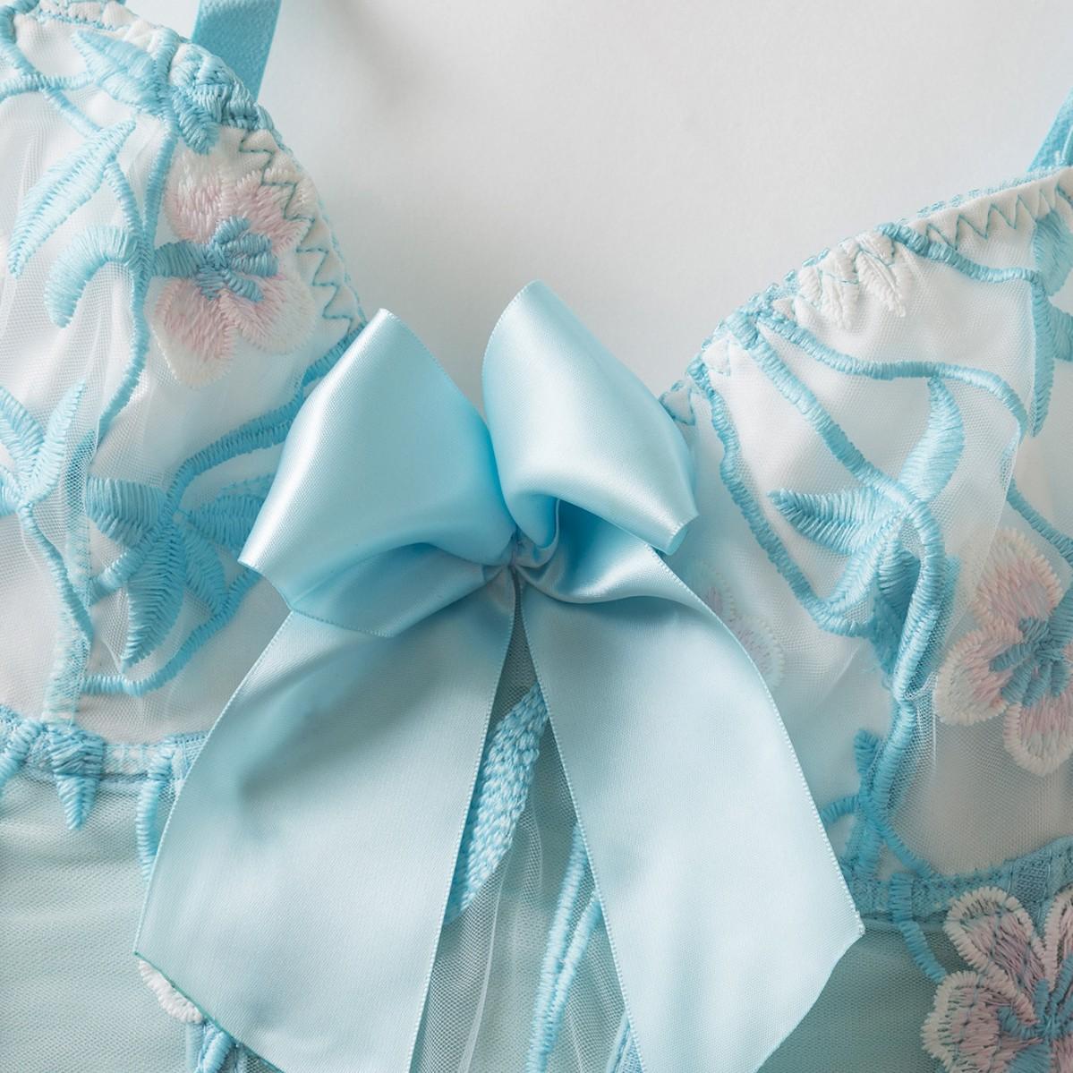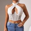 Camisola de Malla Bordada para Chica Hot Europea y Americana Transfronteriza Lujuria Pura Sexy Transparente con Varillas y Tirantes