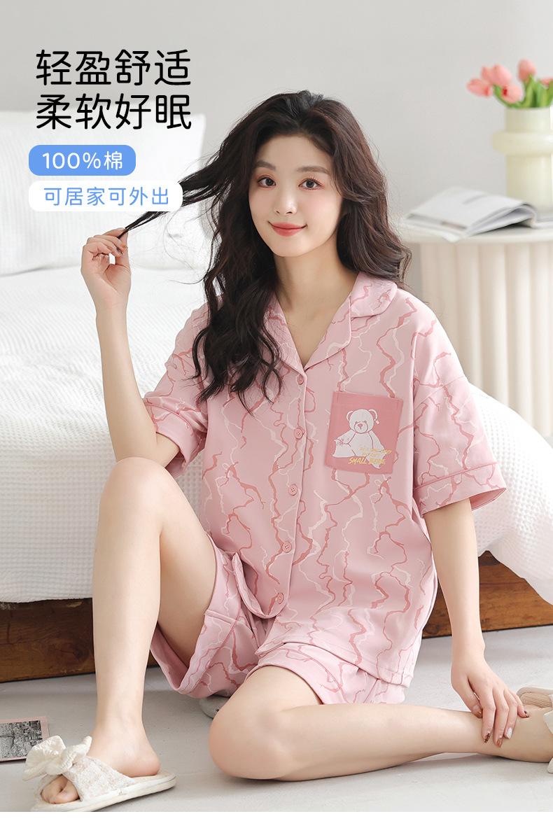 Pijamas de Algodón Puro para Mujer Verano 2025 Nuevo Pantalones Cortos de Manga Corta Cómodo Suelto Dulce y Lindo Conjunto de Ropa de Casa para Mujer