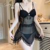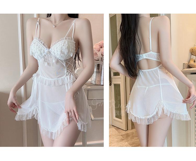 Lencería Sexy con Encaje de Malla Transparente, Atractiva y Seductora, con Almohadillas Adicionales en el Pecho, Vestido Camisola y Conjunto Uniforme 5277