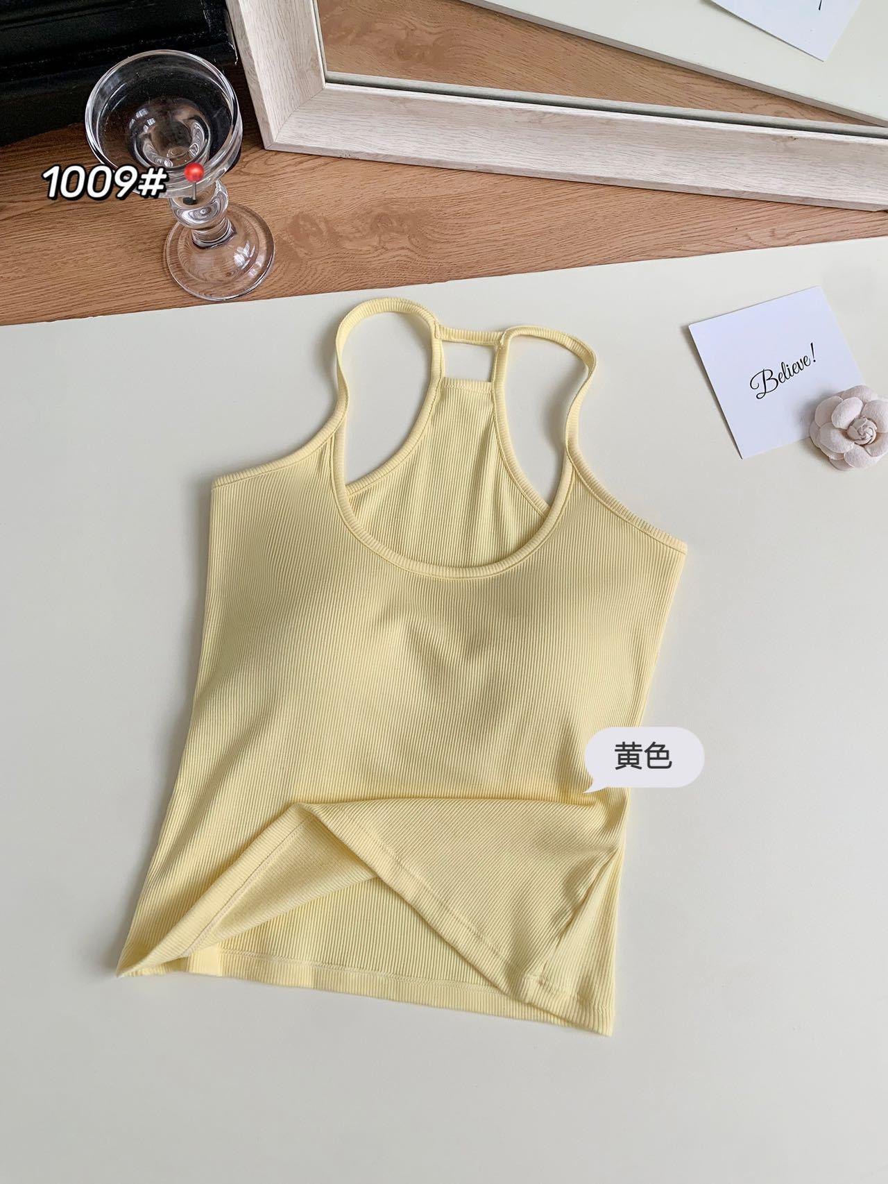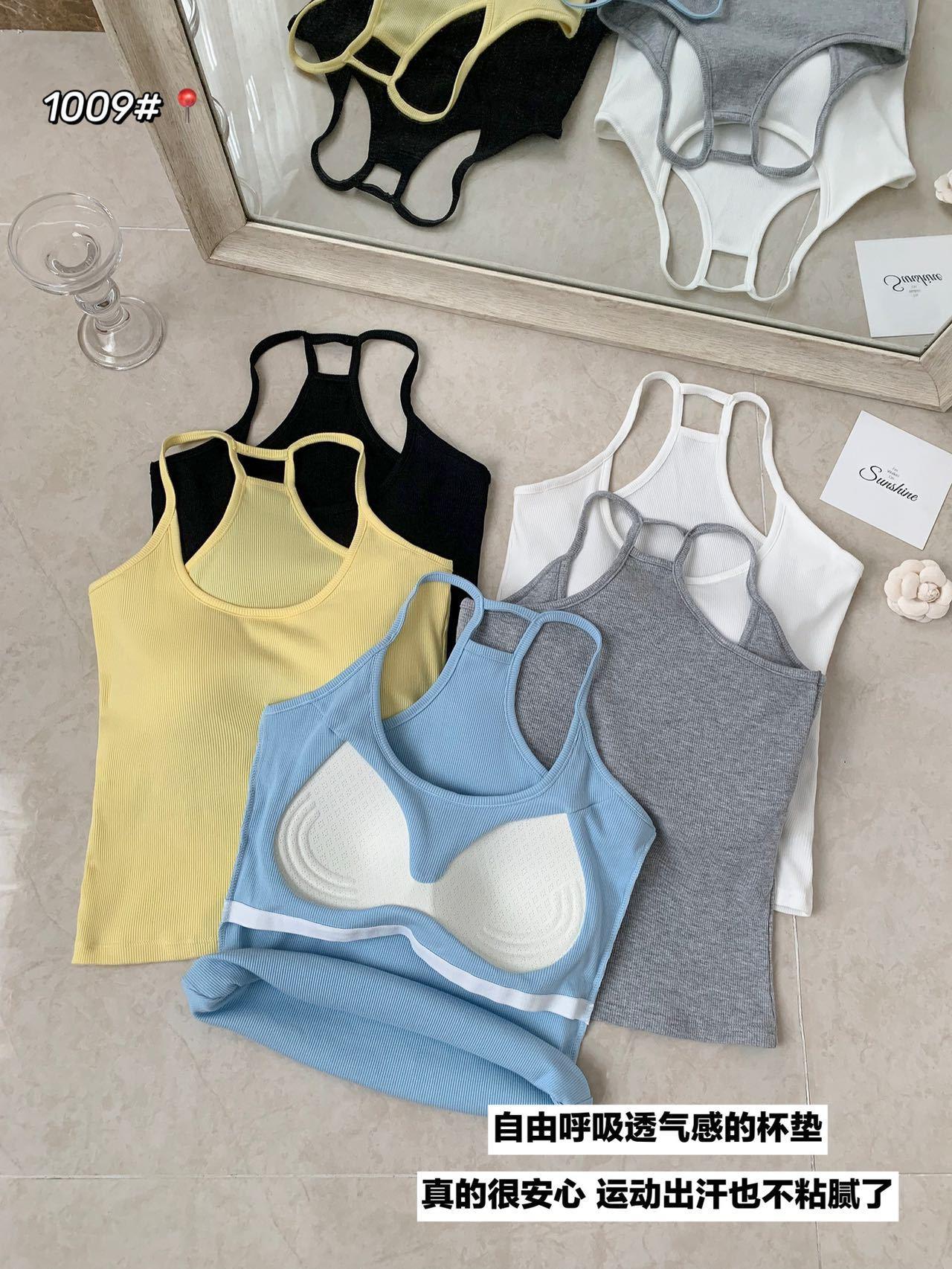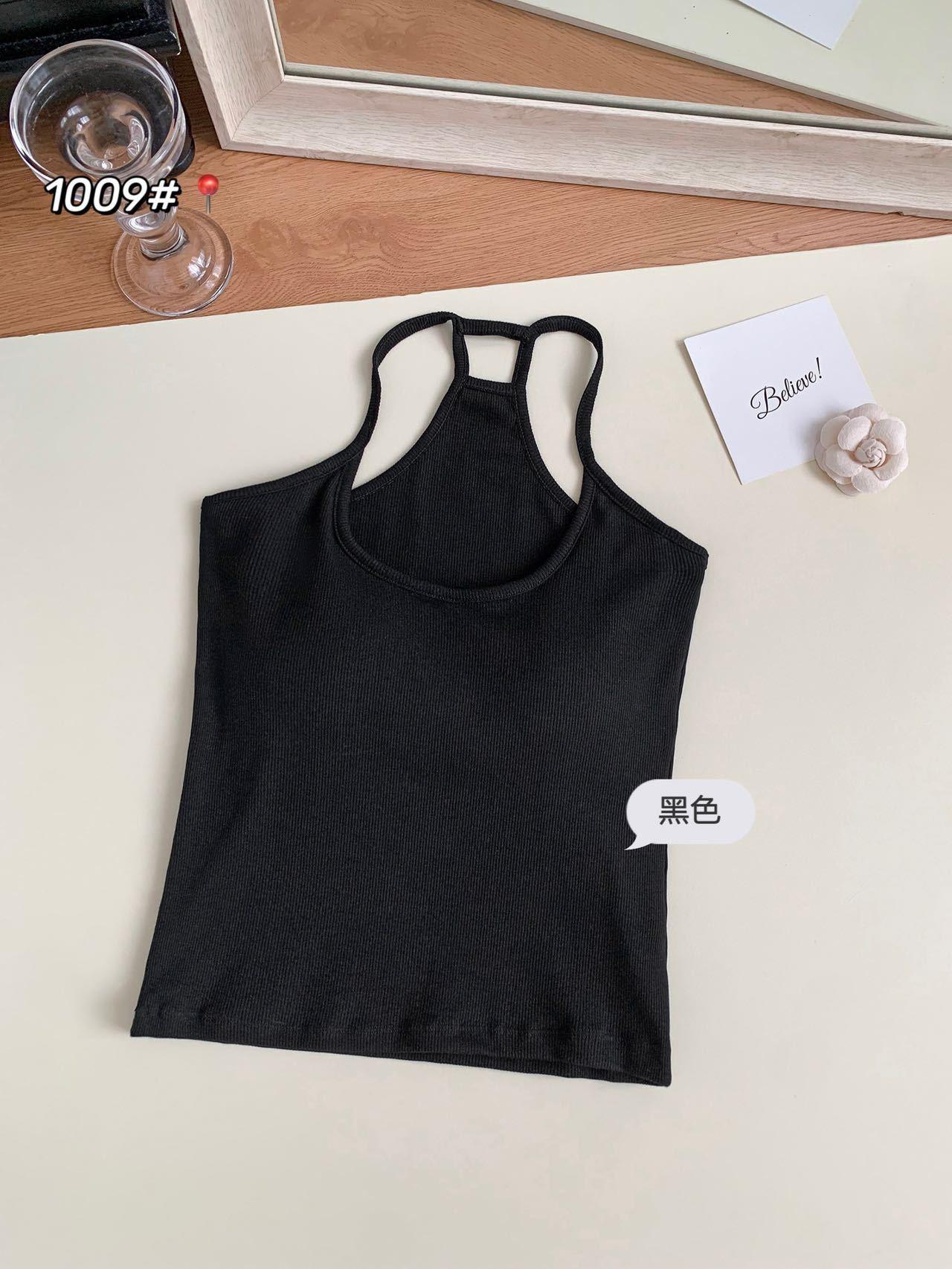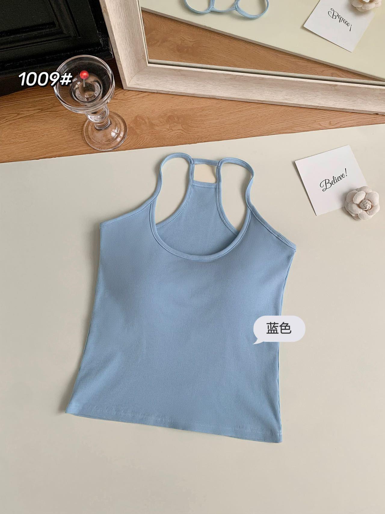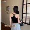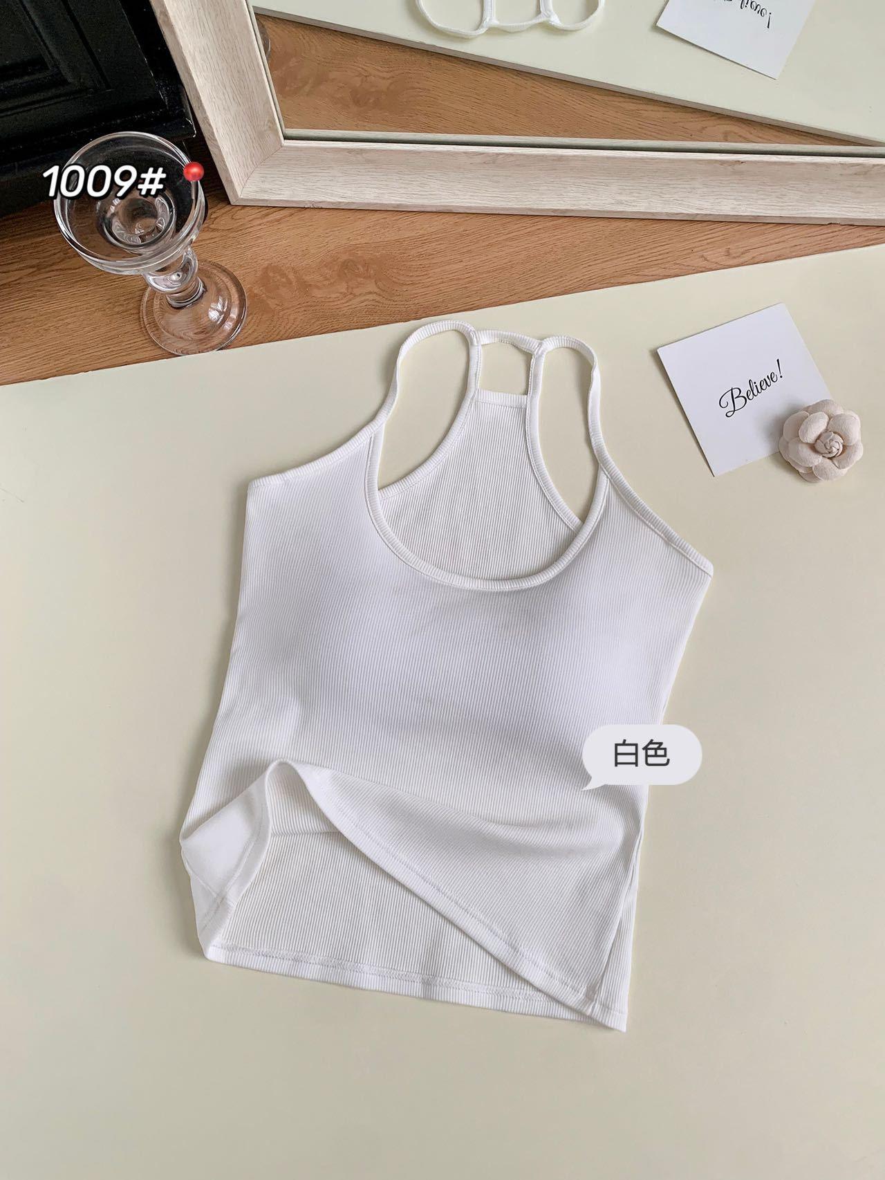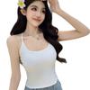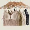 1009 Sexy Espalda Hueca Encaje Tirante Chaleco con Almohadilla en el Pecho, Top Delgado Integrado sin Sujetador