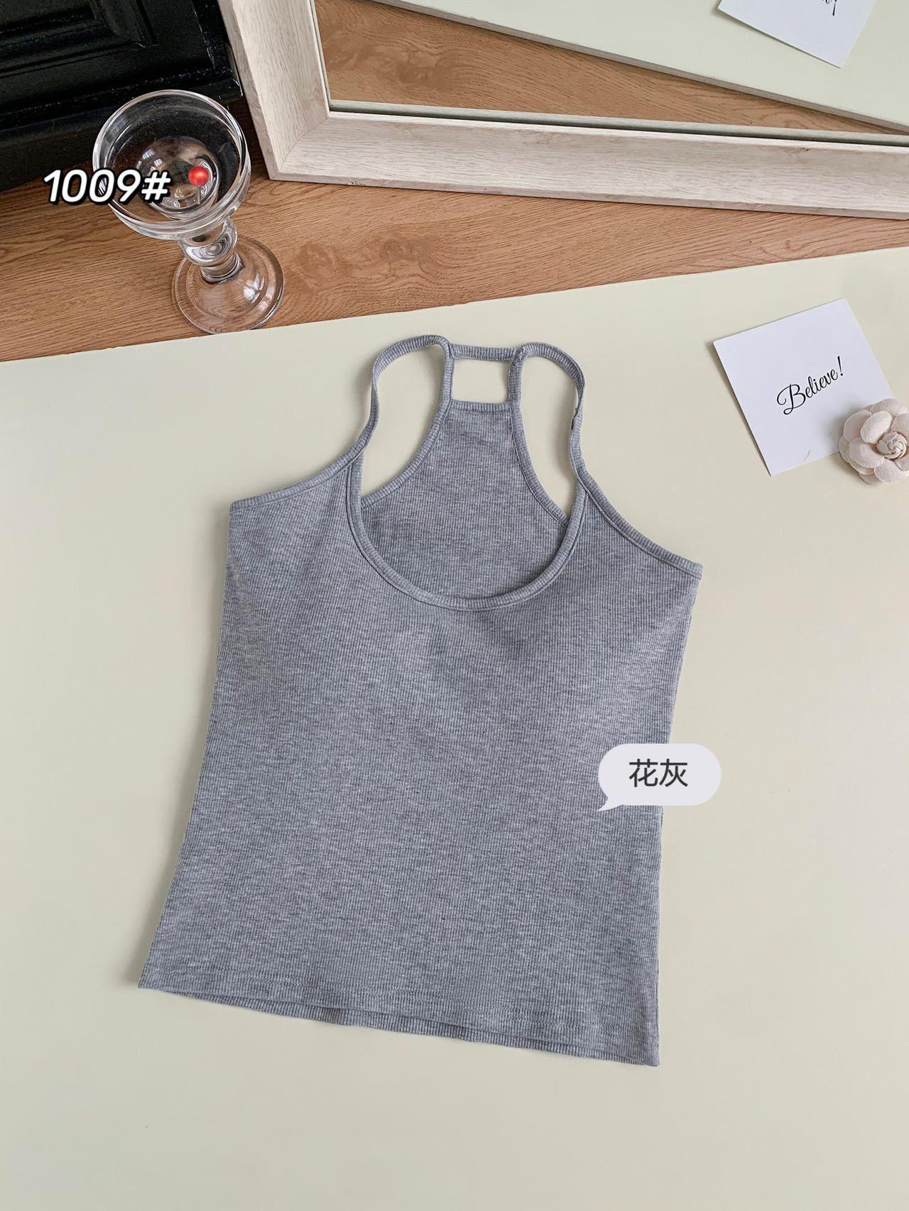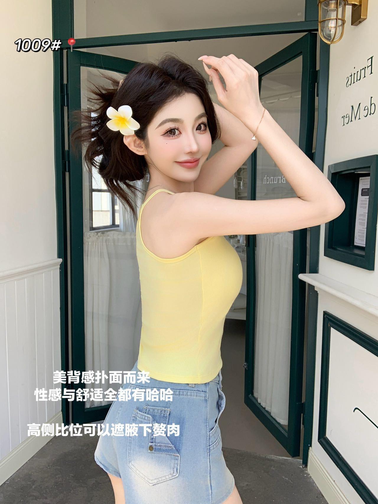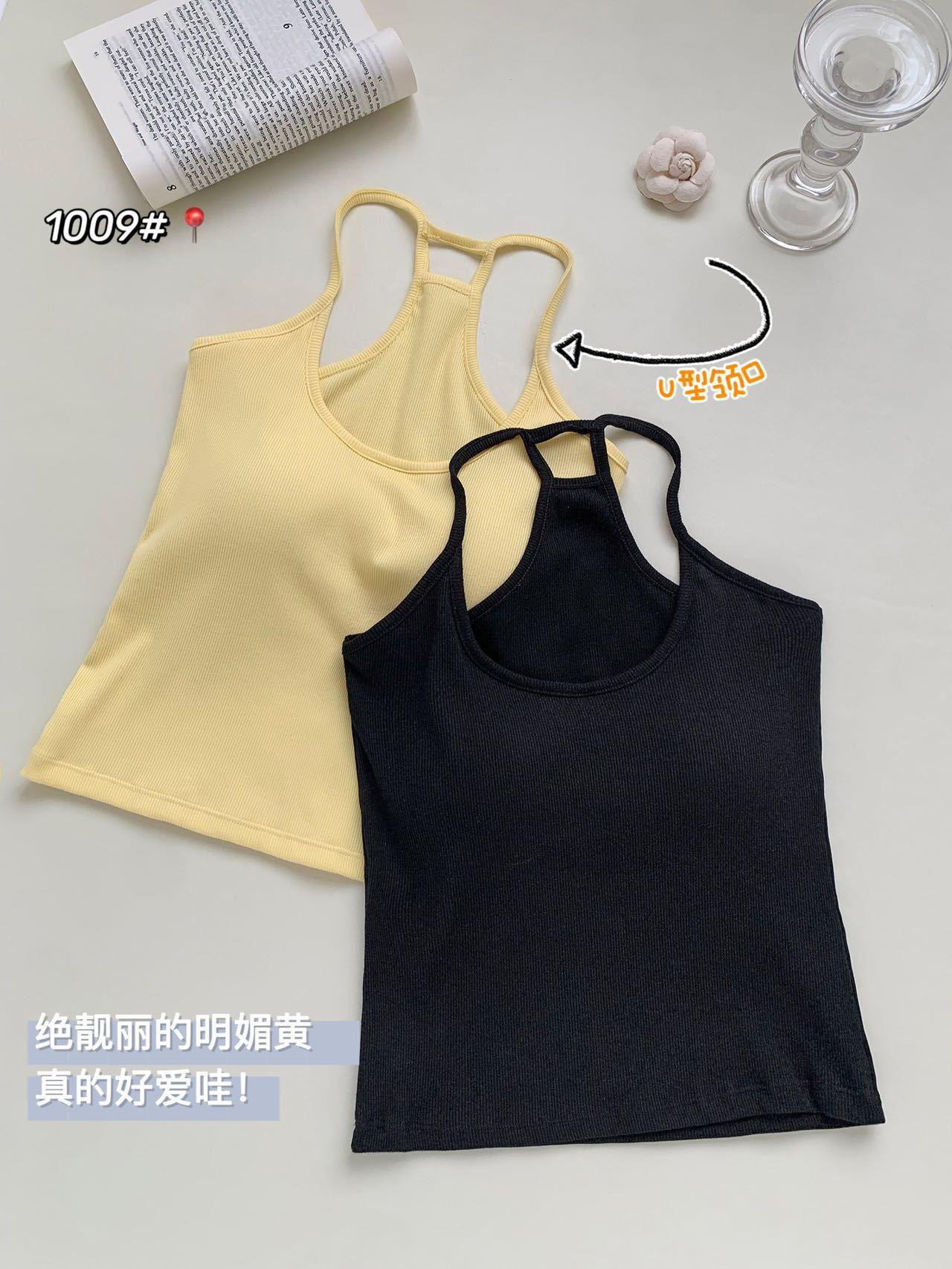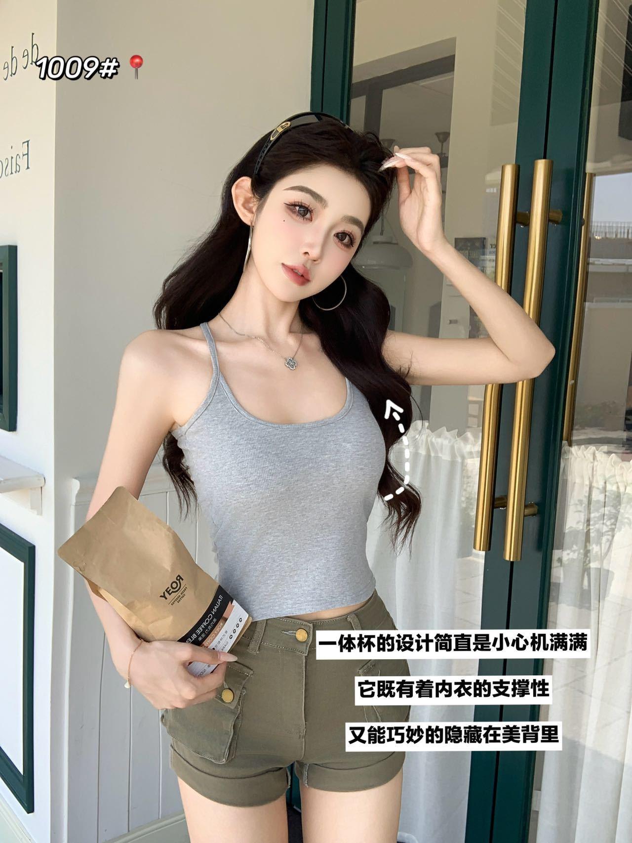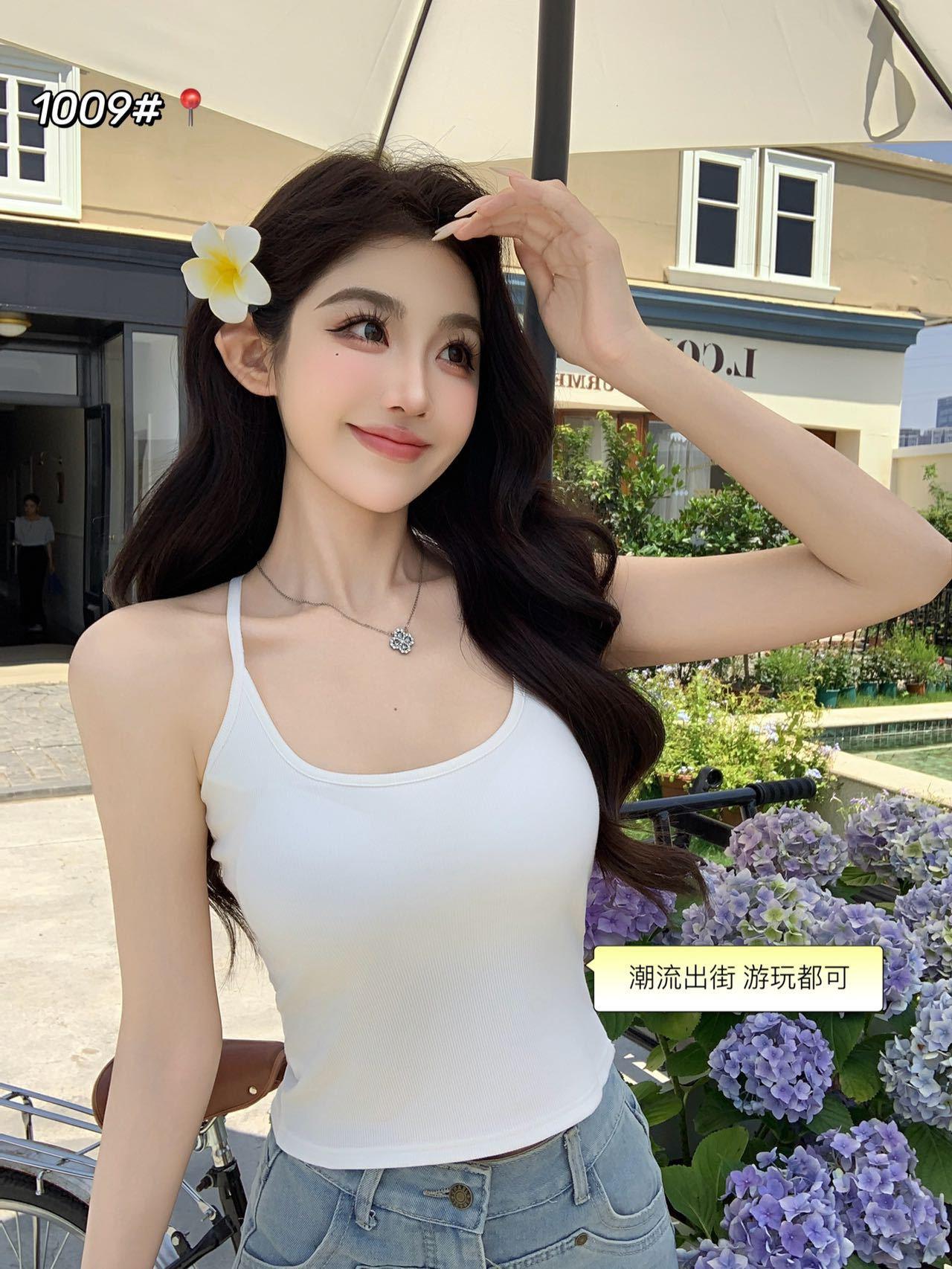 1009 Sexy Espalda Hueca Encaje Tirante Chaleco con Almohadilla en el Pecho, Top Delgado Integrado sin Sujetador