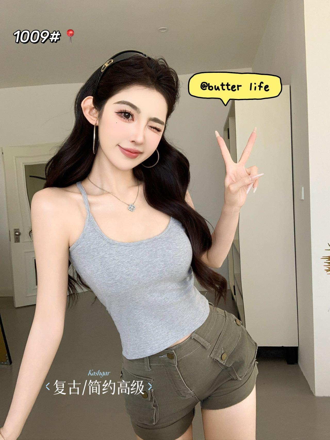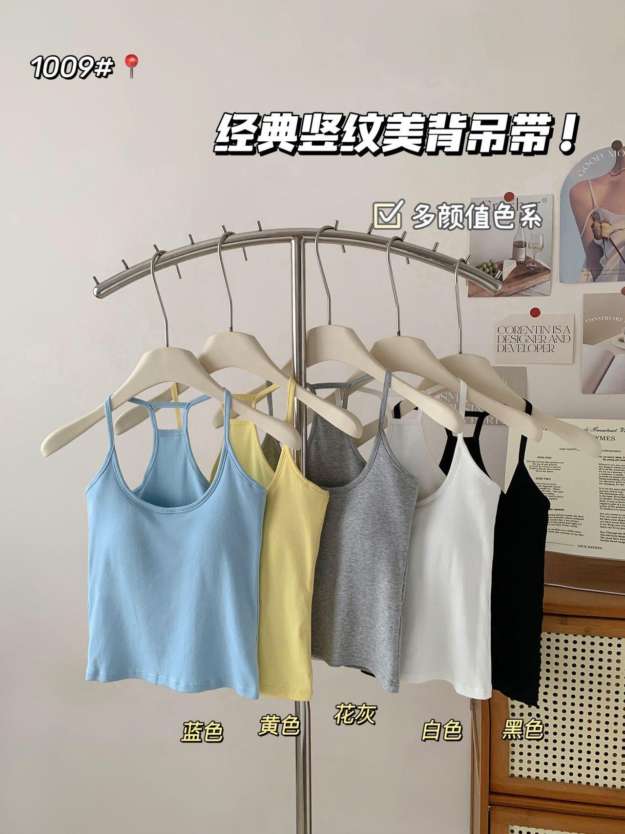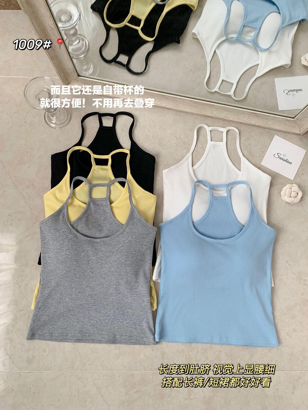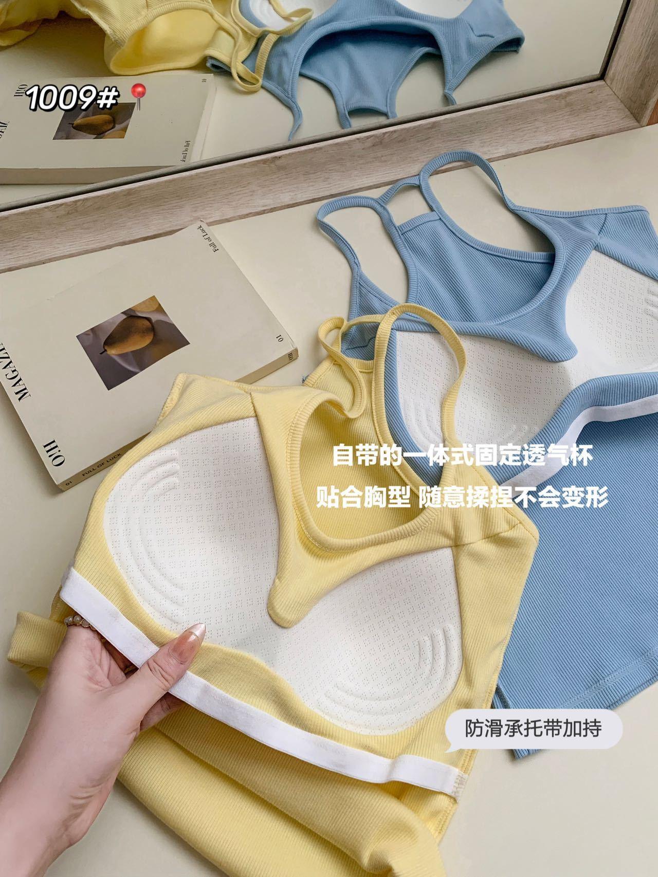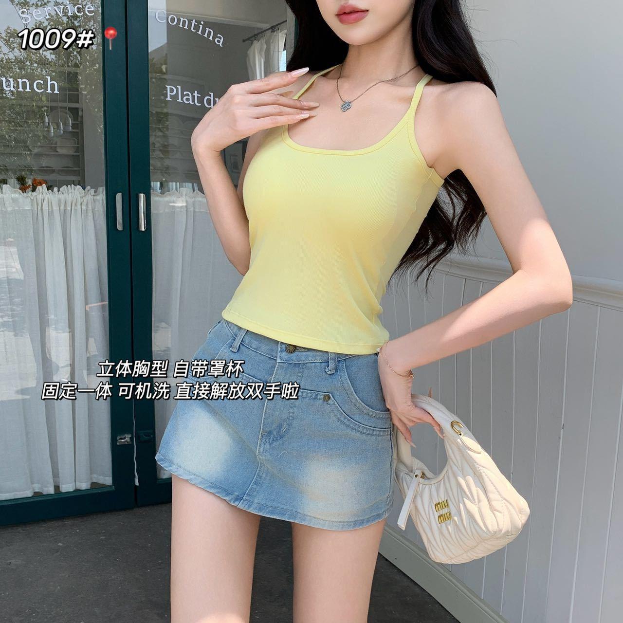 1009 Sexy Espalda Hueca Encaje Tirante Chaleco con Almohadilla en el Pecho, Top Delgado Integrado sin Sujetador