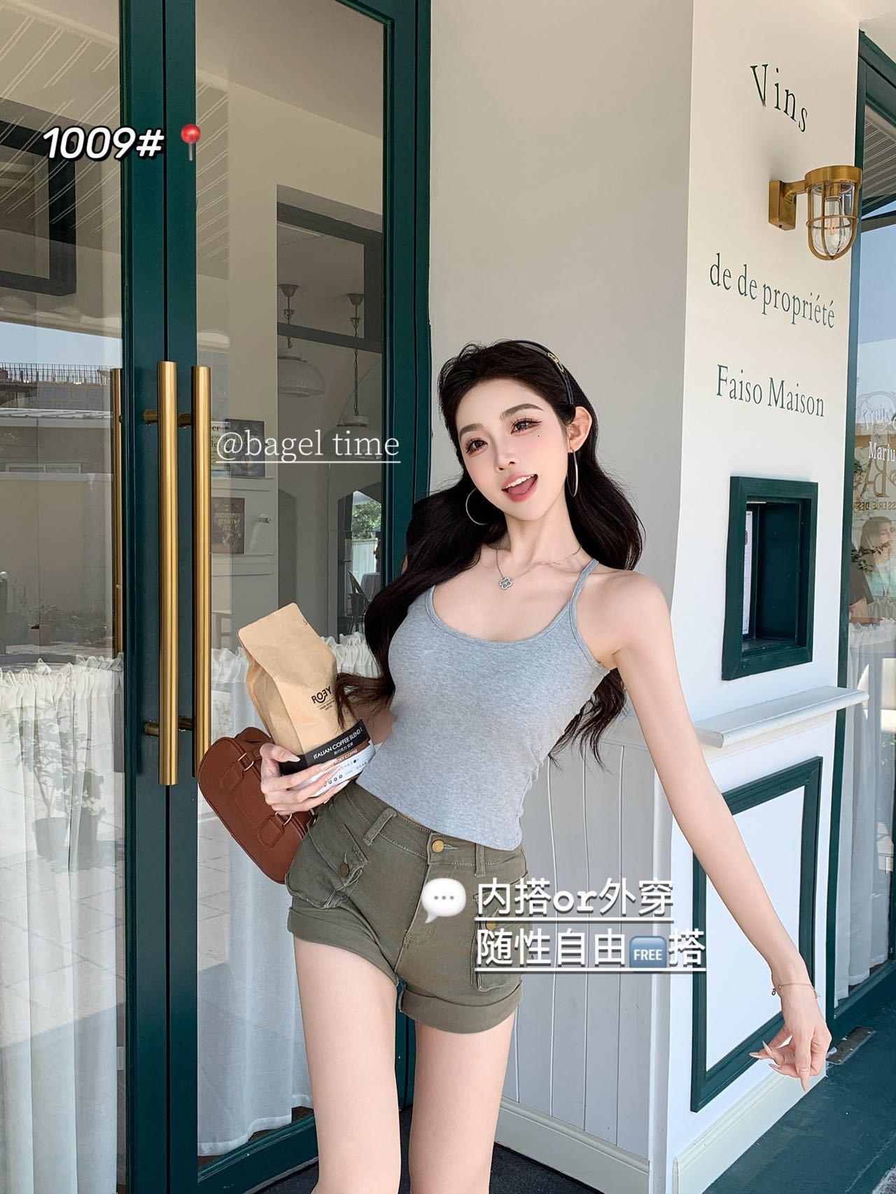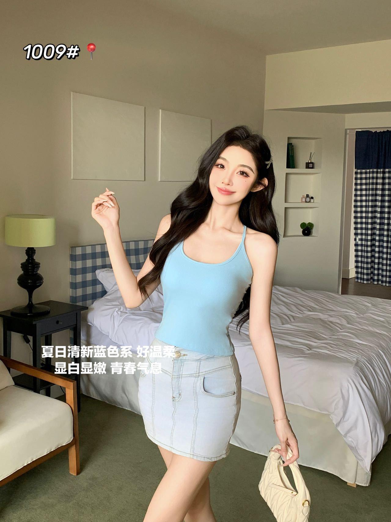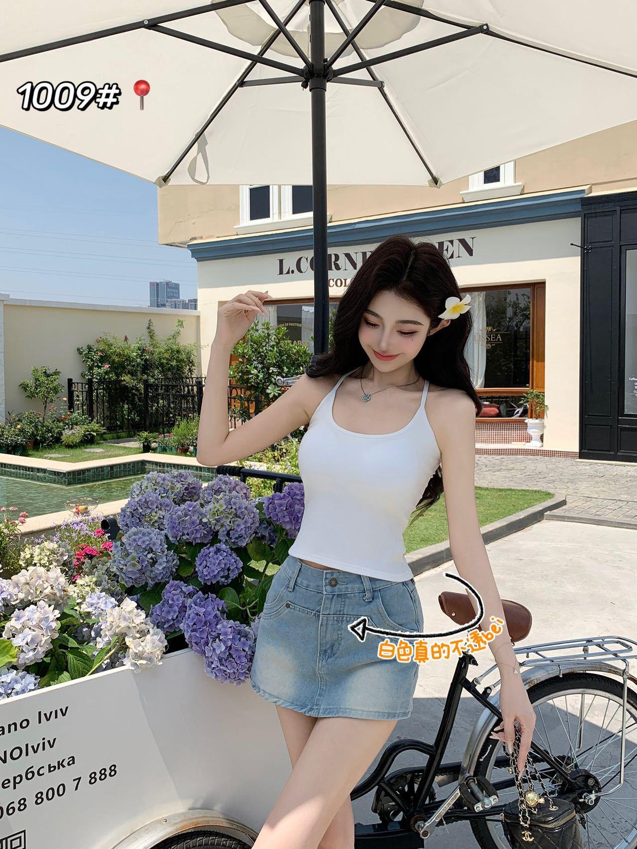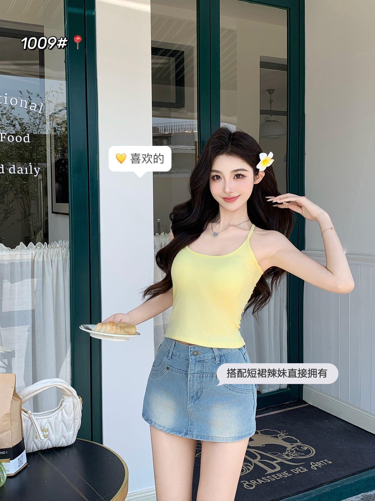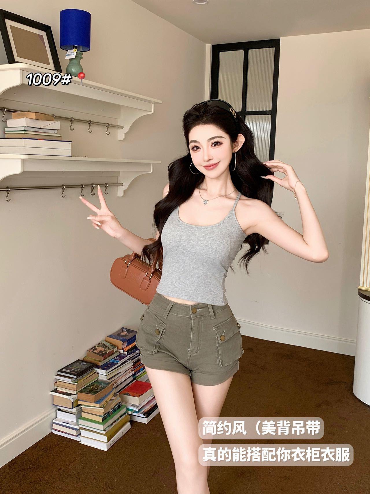 1009 Sexy Espalda Hueca Encaje Tirante Chaleco con Almohadilla en el Pecho, Top Delgado Integrado sin Sujetador