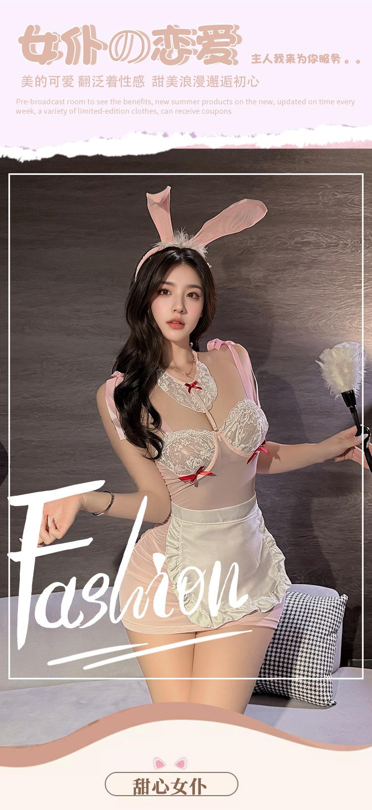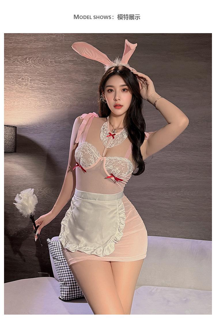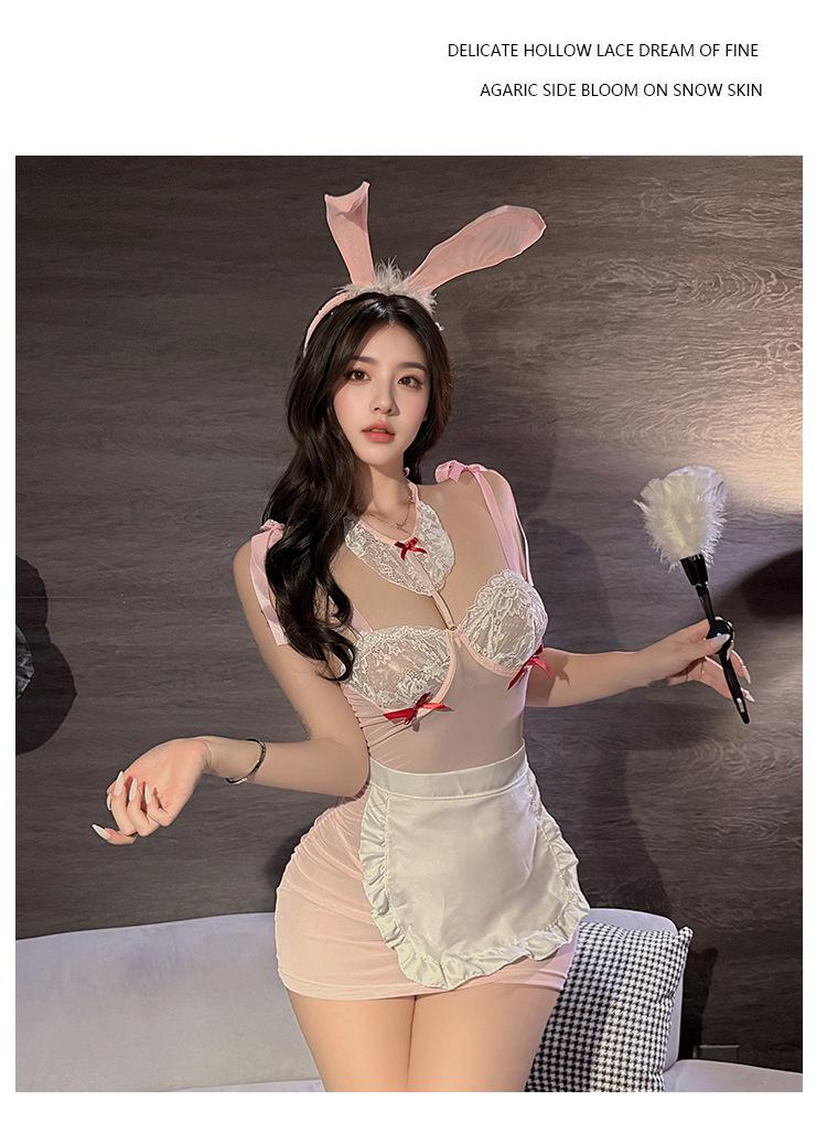 Lencería Sexy, Deseo Puro Sexy, Aro de Acero Transparente, Delantal de Conejita, Dulce Tentación, Traje de Uniforme para Juego de Roles