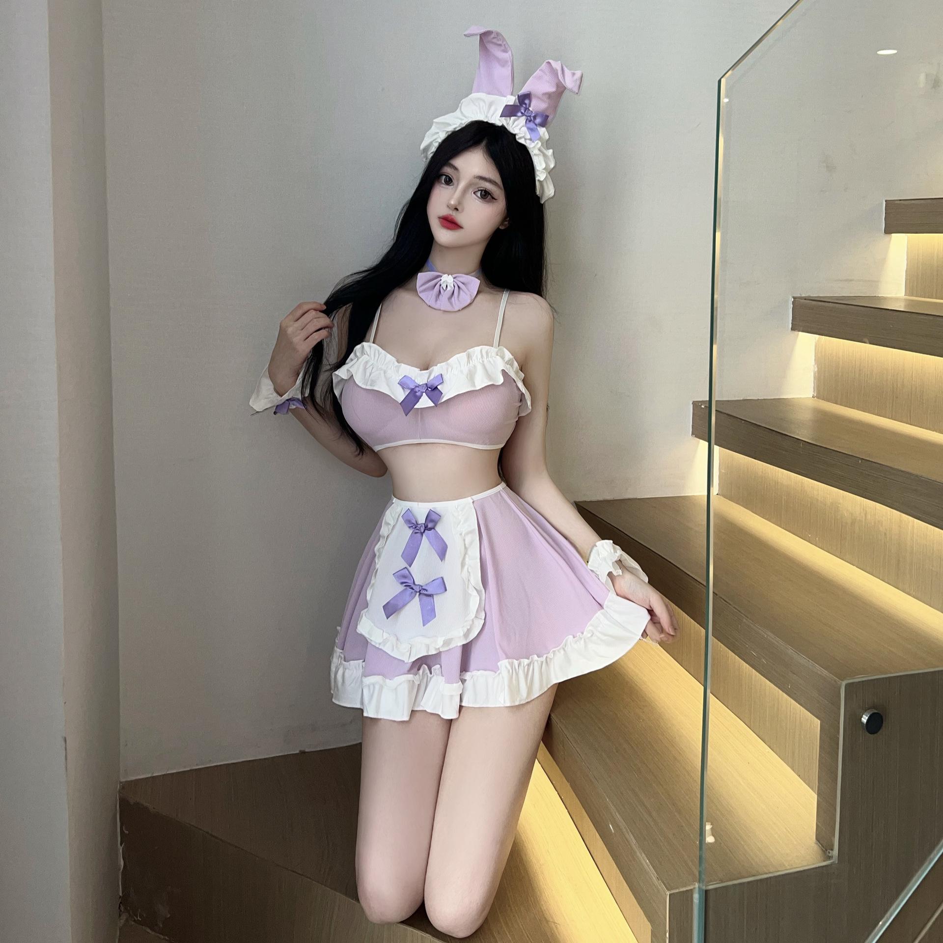 Tentación de Cereza Lencería Sexy Traje de Criada Sexy Lindo Deseo Puro Traje Uniforme de Criada con Abertura No Necesita Quitarse