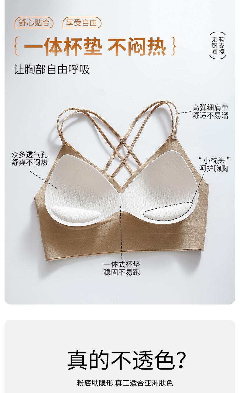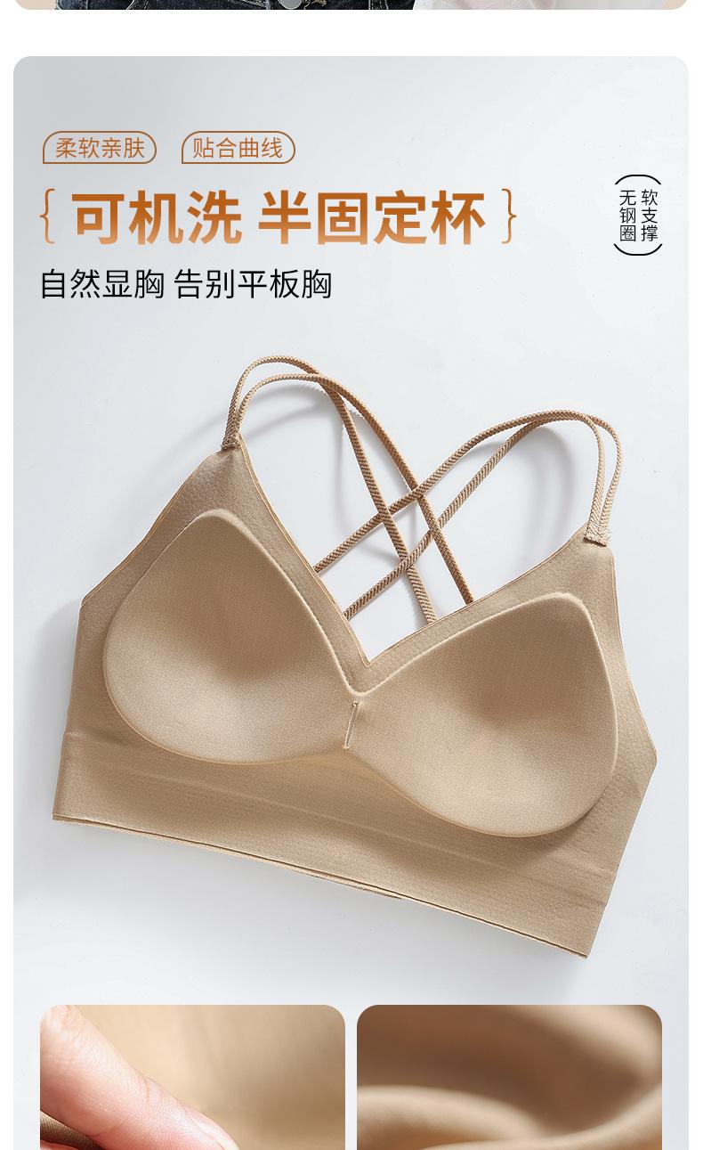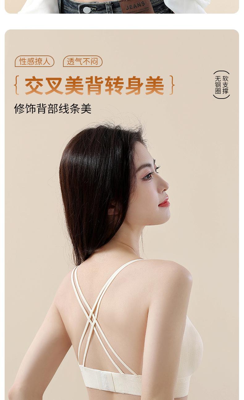 Verano Tirante Cruzado Espalda Hermosa Ropa Interior Base Líquida para Mujer Pecho Pequeño Push-up Sin Costuras Sin Aros de Acero Pull-up Anticaída Sujetador