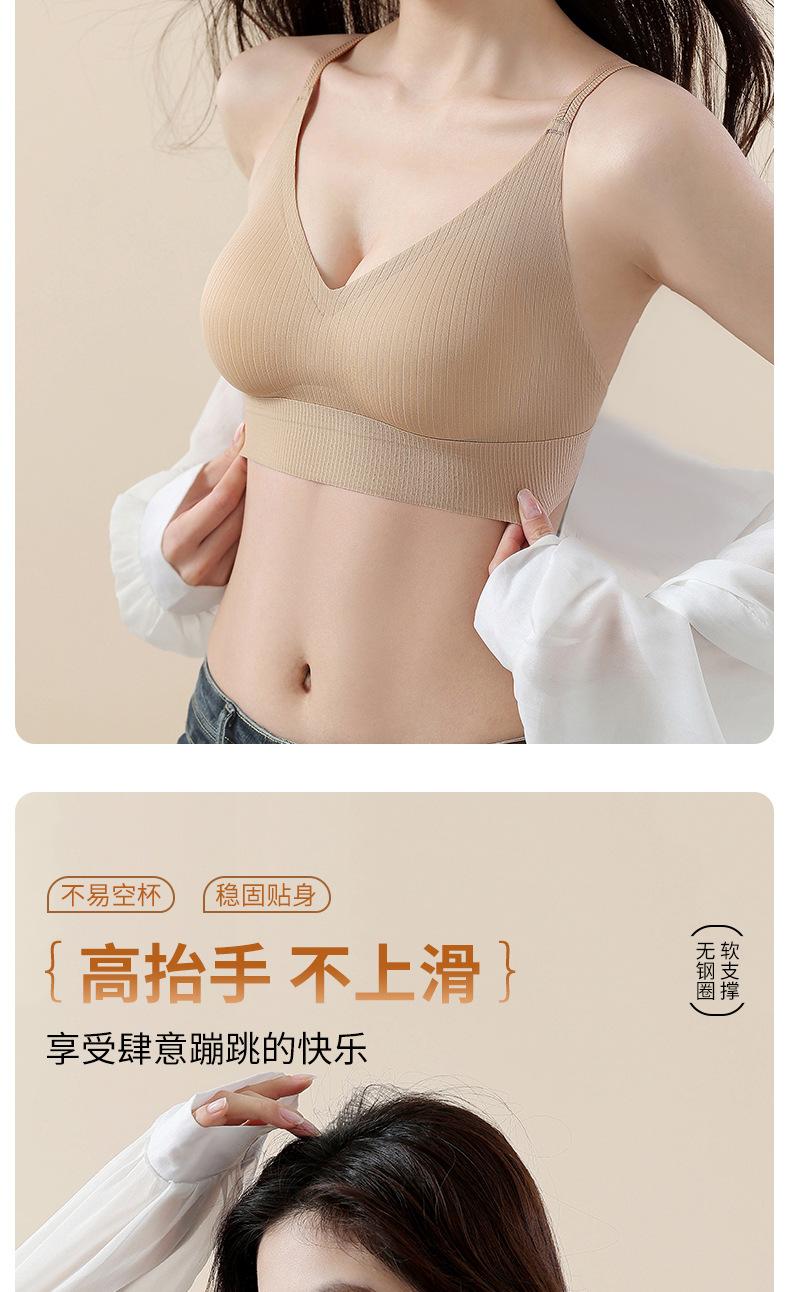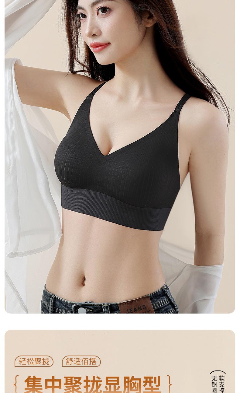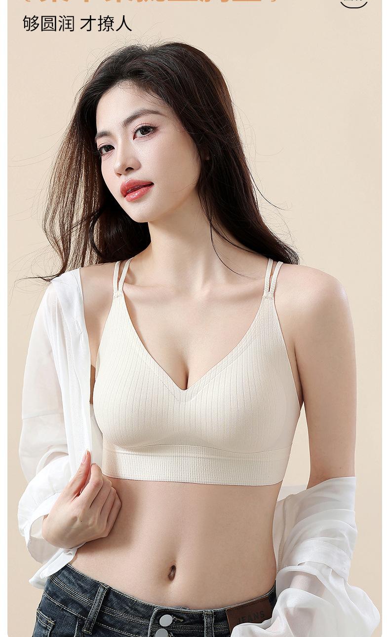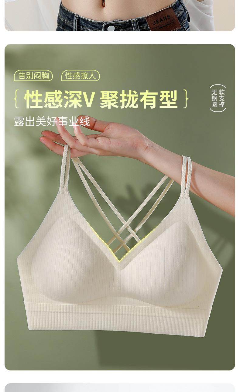 Verano Tirante Cruzado Espalda Hermosa Ropa Interior Base Líquida para Mujer Pecho Pequeño Push-up Sin Costuras Sin Aros de Acero Pull-up Anticaída Sujetador