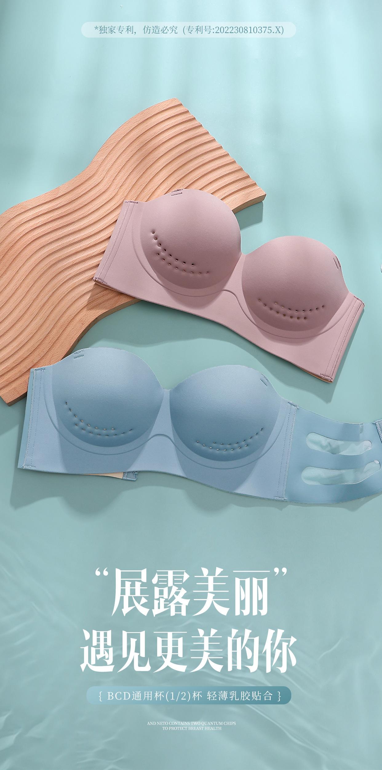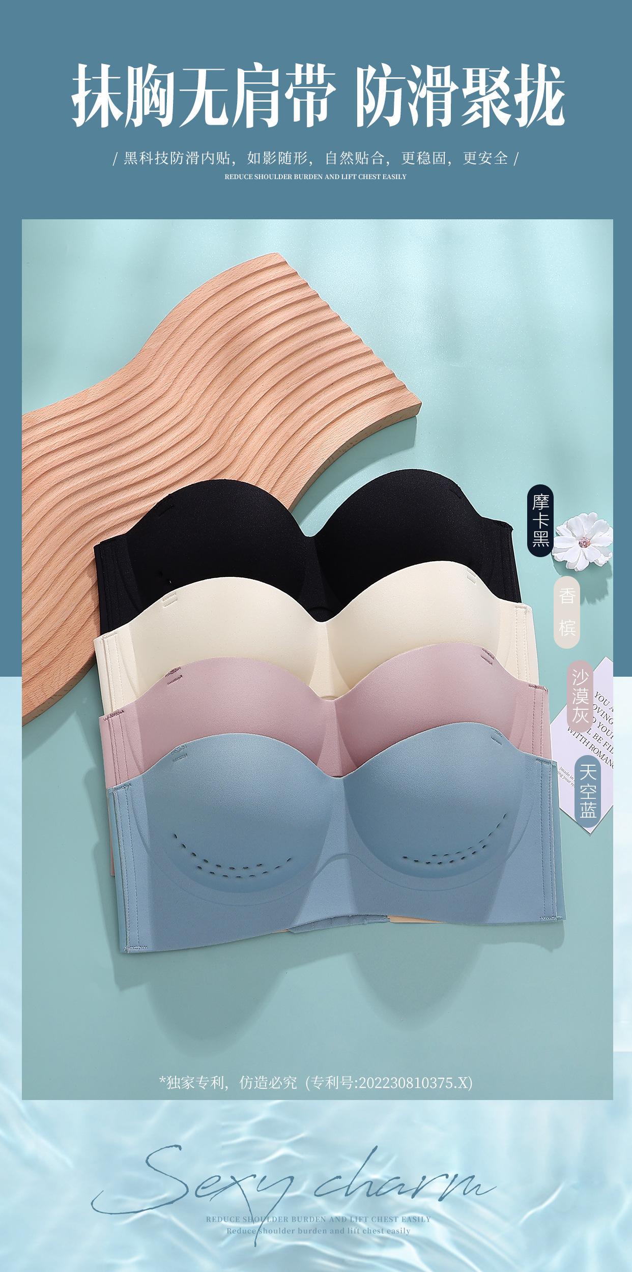 Ropa interior sin tirantes antideslizante push up para busto pequeño, brasier delgado inalámbrico con soporte para el busto sin costuras para mujer
